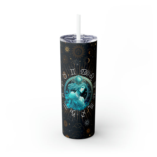 Aquarius Zodiac Skinny Tumbler with Straw Astrology Insulated Mug Bridesmaids Gift Bachelorette Party Favor Birthday Gift