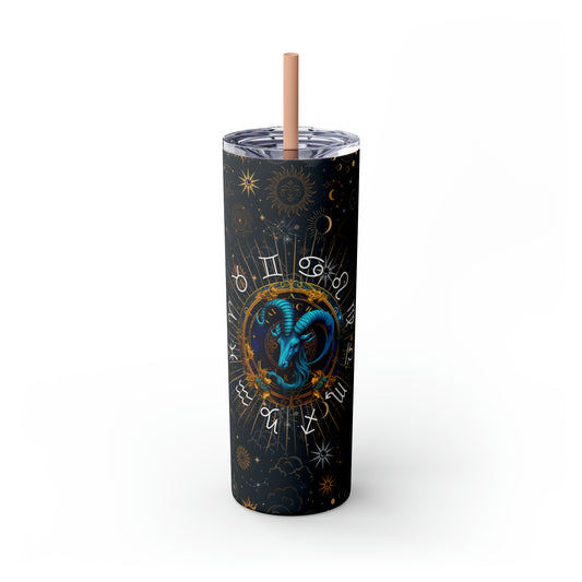 Capricorn Zodiac Skinny Tumbler with Straw Astrology Insulated Mug Bridesmaids Gift Bachelorette Party Favor Birthday Gift
