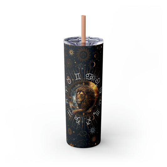 Leo Zodiac Skinny Tumbler with Straw Astrology Insulated Mug Bridesmaids Gift Bachelorette Party Favor Birthday Gift