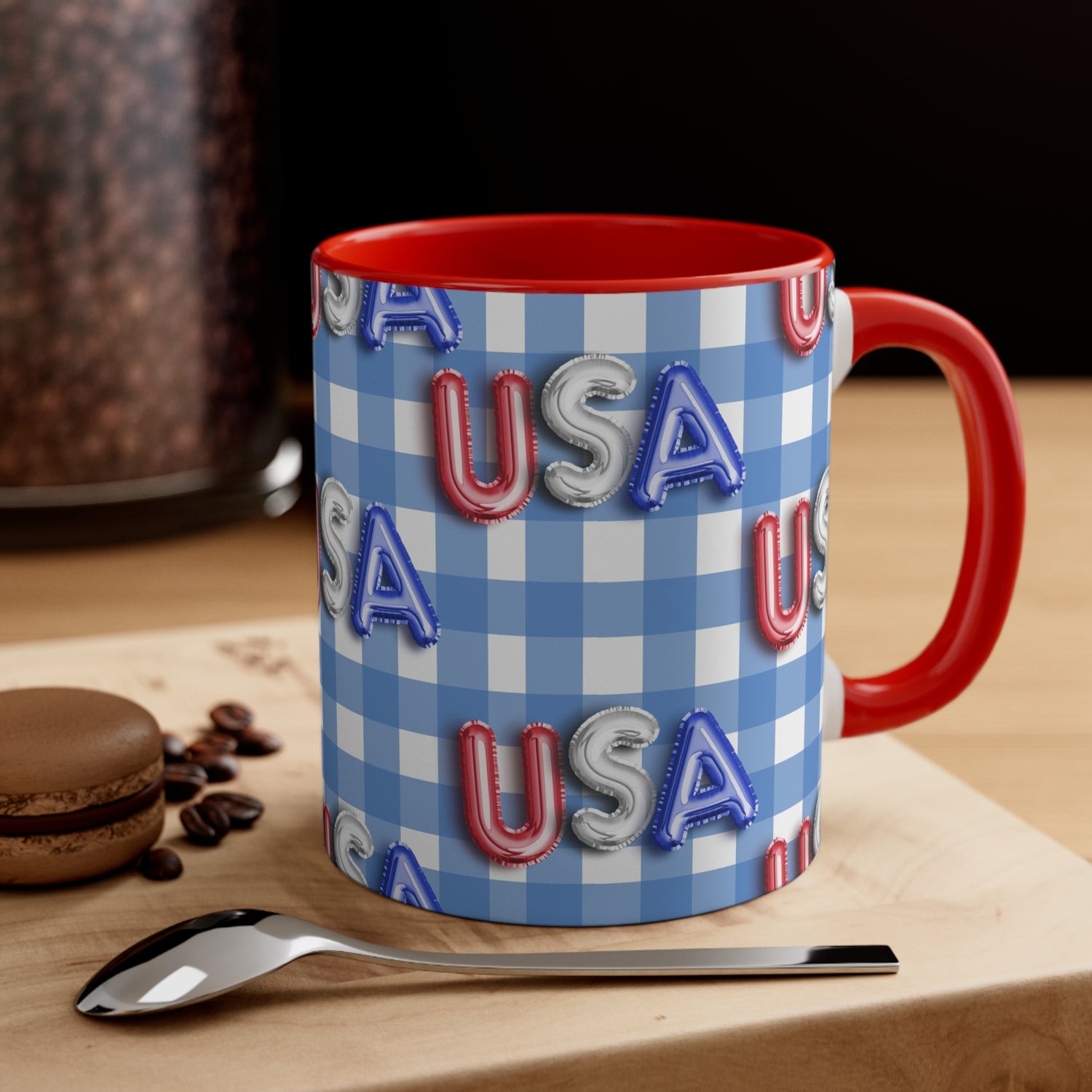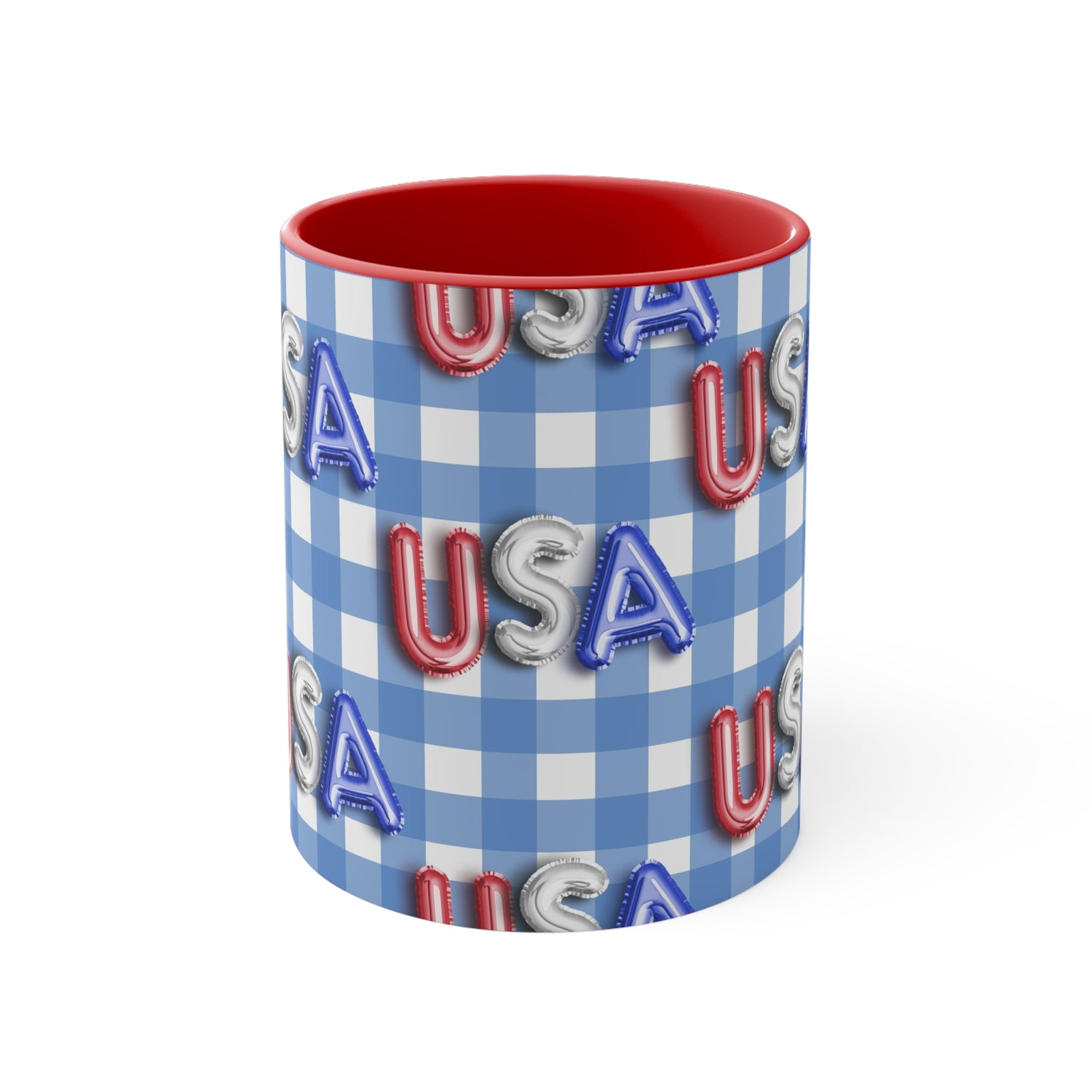 American Flag USA Balloon Themed Accent Coffee Mug, 11oz