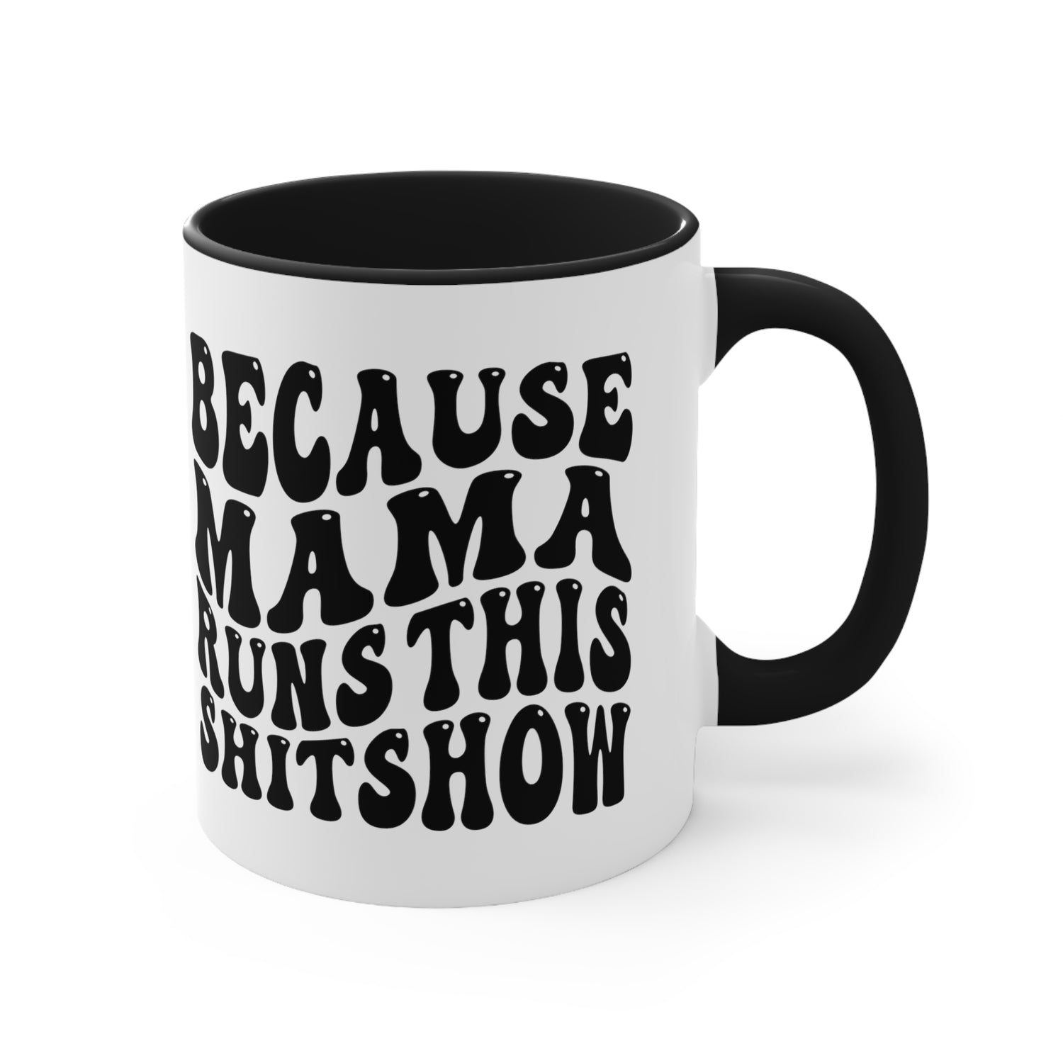 Because Mama Runs This Shitshow Accent Coffee Mug, 11oz