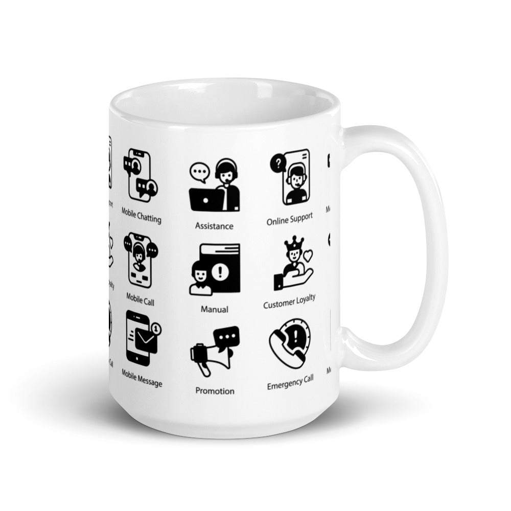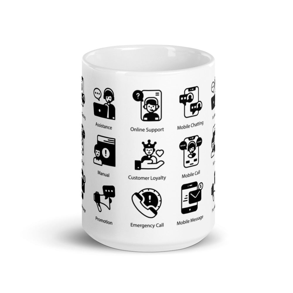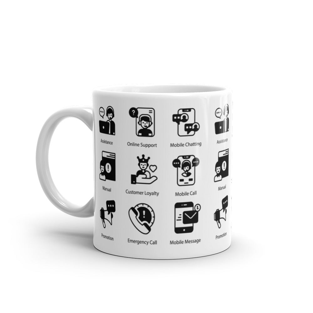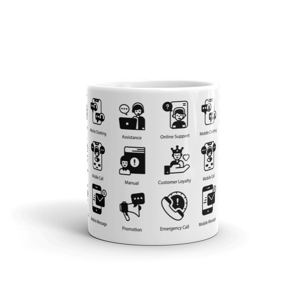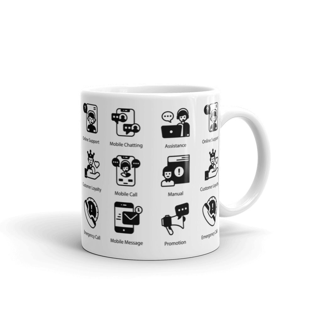 Customer Support Icons in Black - White glossy mug - Get to Know your Customer Day