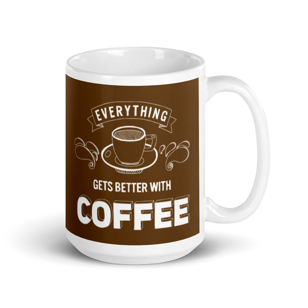 Everything Gets Better with Coffee (Brown) White glossy mug