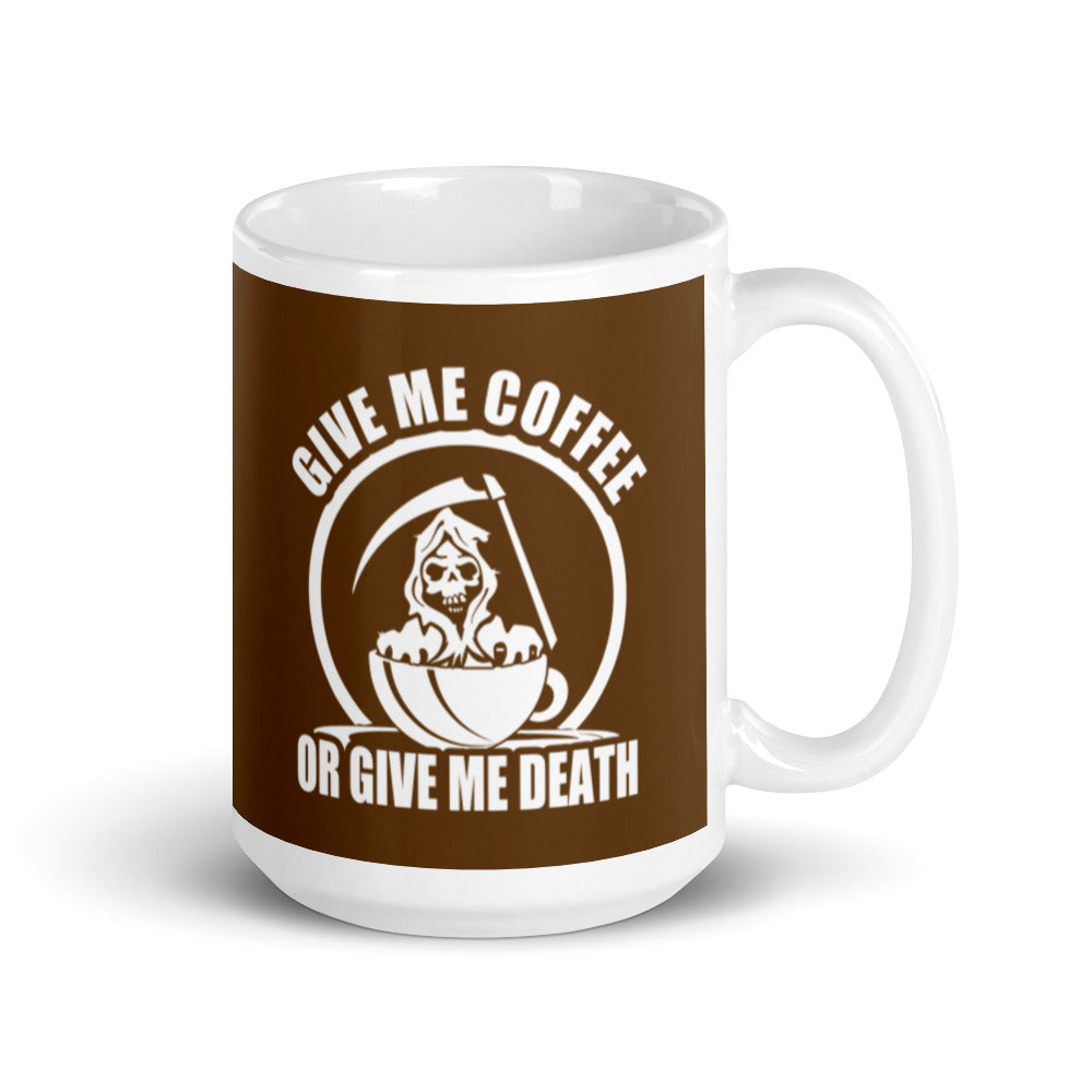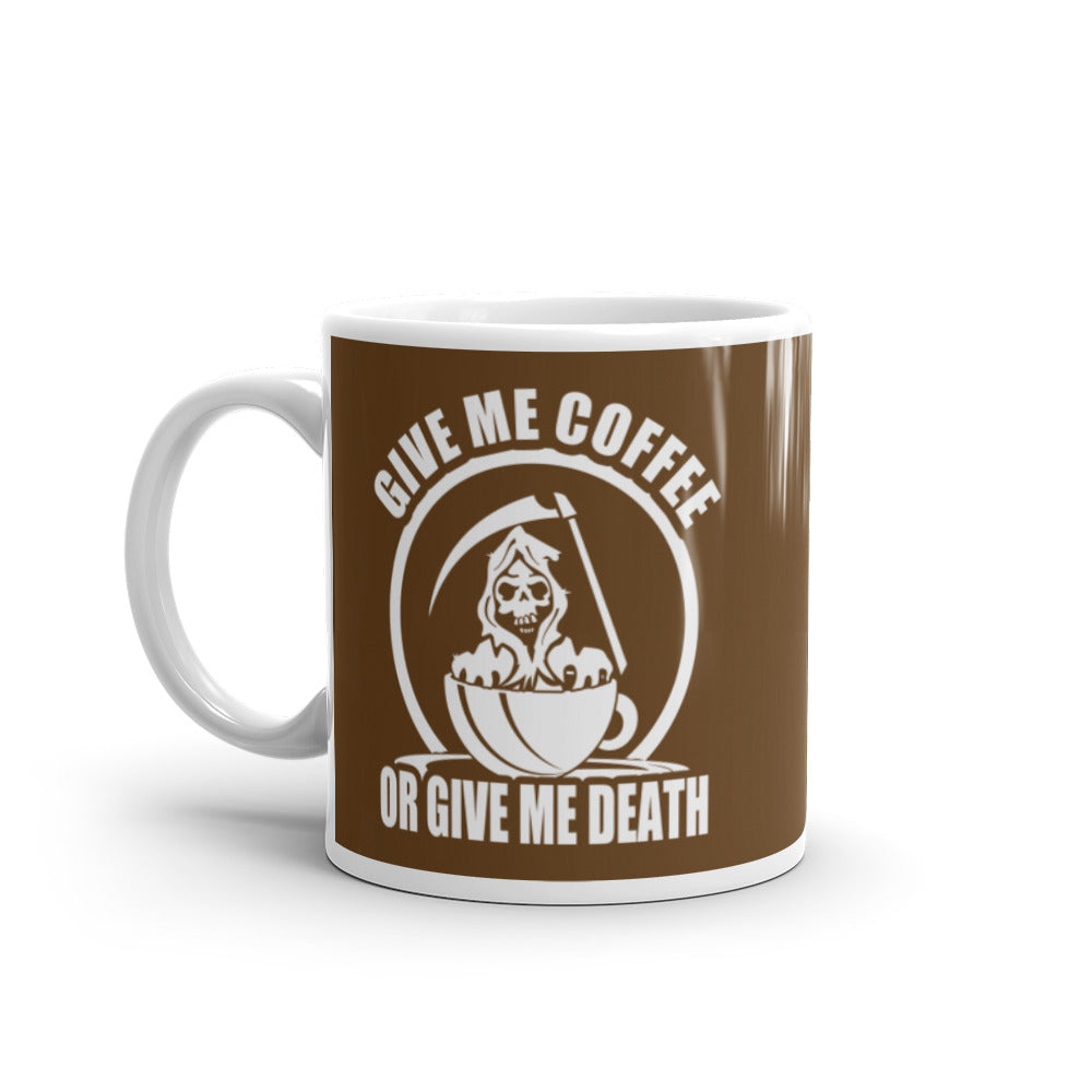 Give Me Coffee of Give Me Death (Brown) - White Glossy Mug