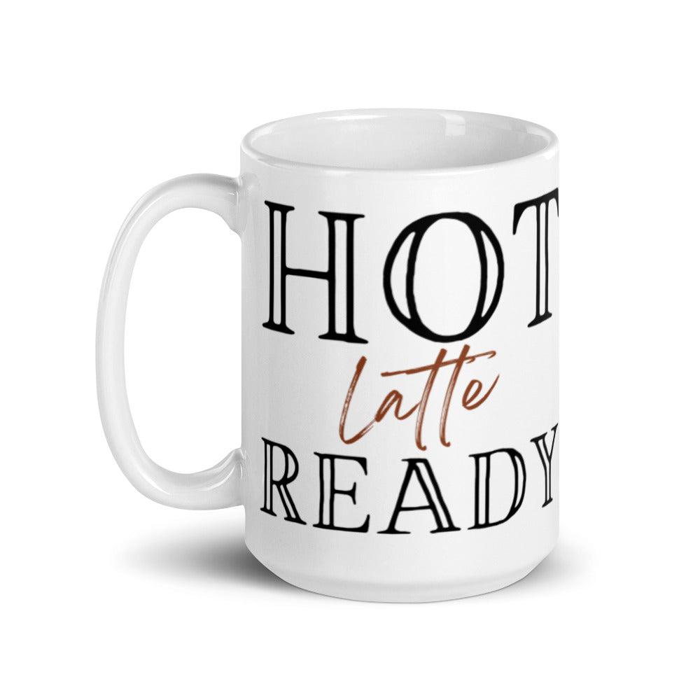 Hot Latte Ready - White glossy mug that let's you know what hot drink you are having at any time.