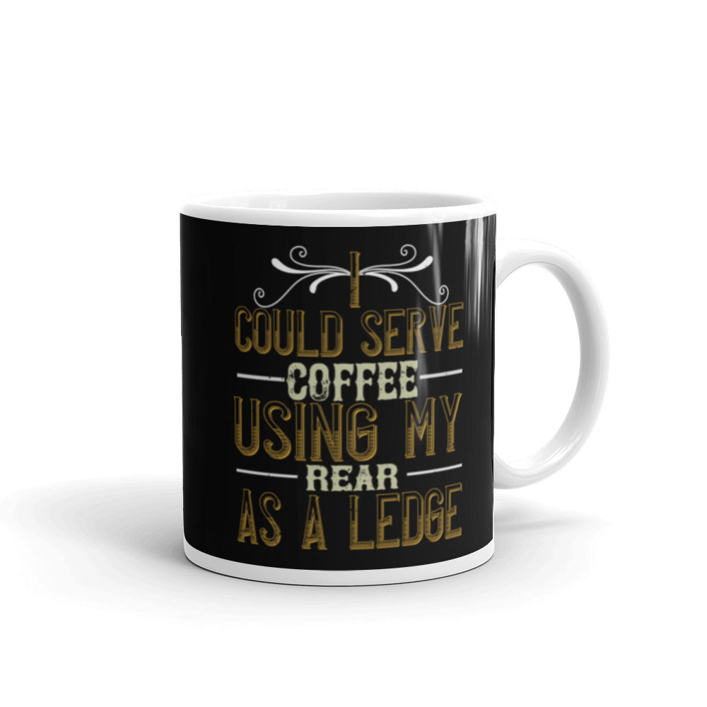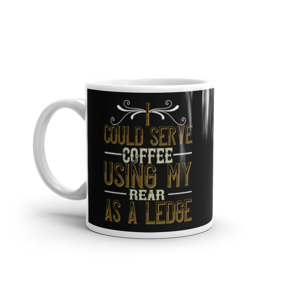 I Could Serve Coffee Using My Rear as a Ledge (Black) - White glossy mug