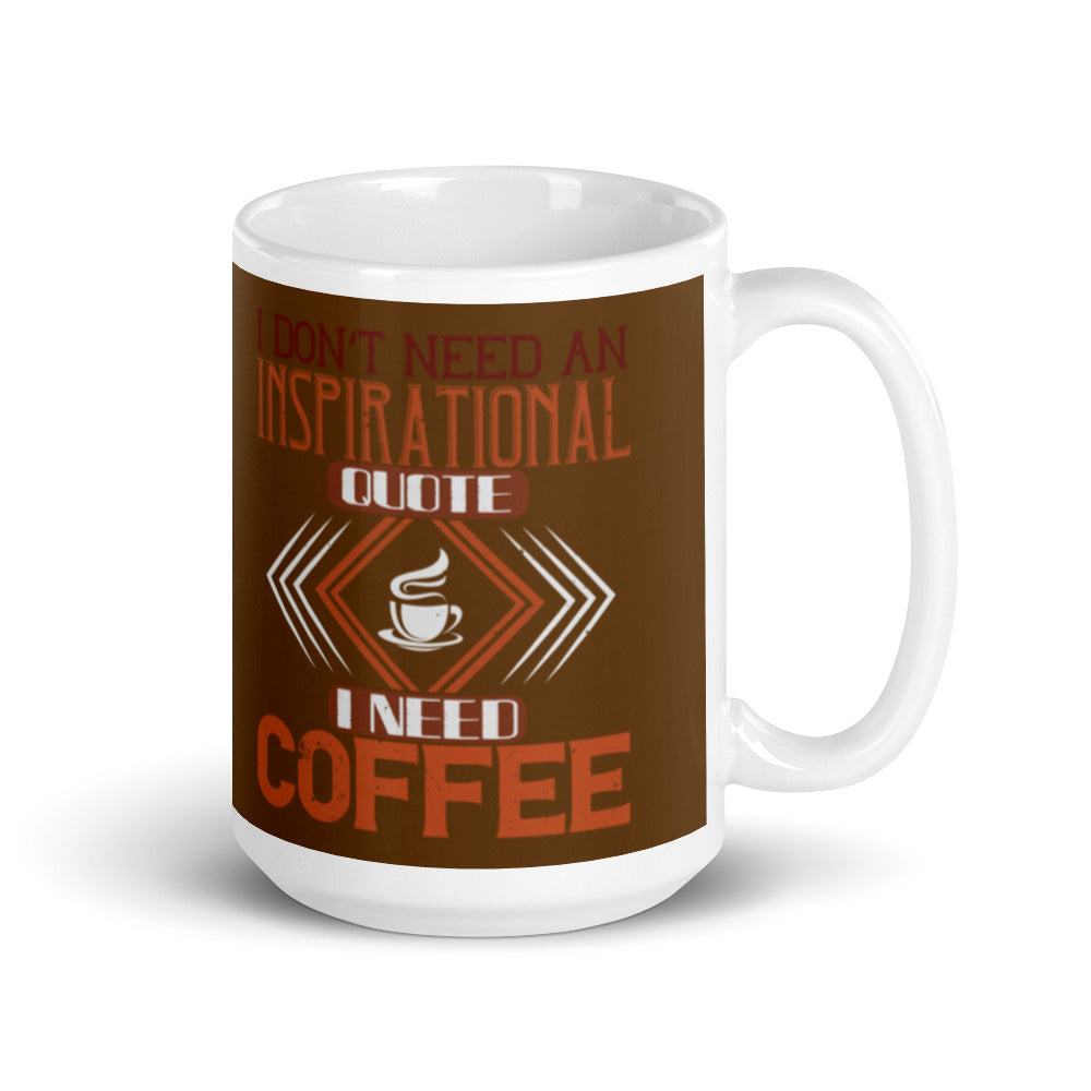 I Don't need an Inspirational Quote I need Coffee (Brown) White glossy mug