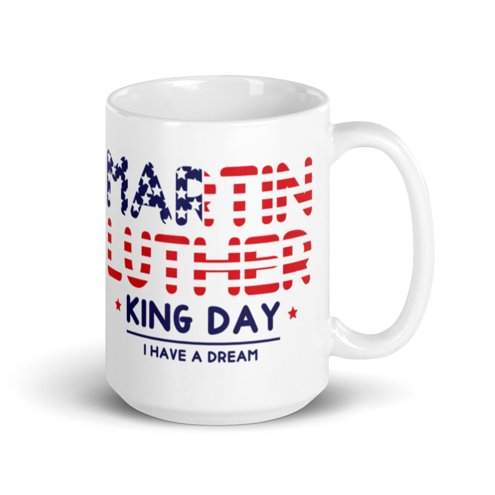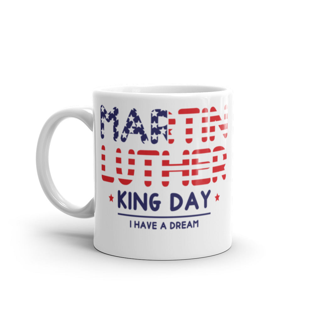 Martin Luther King Day - MLK in Flag -White glossy mug