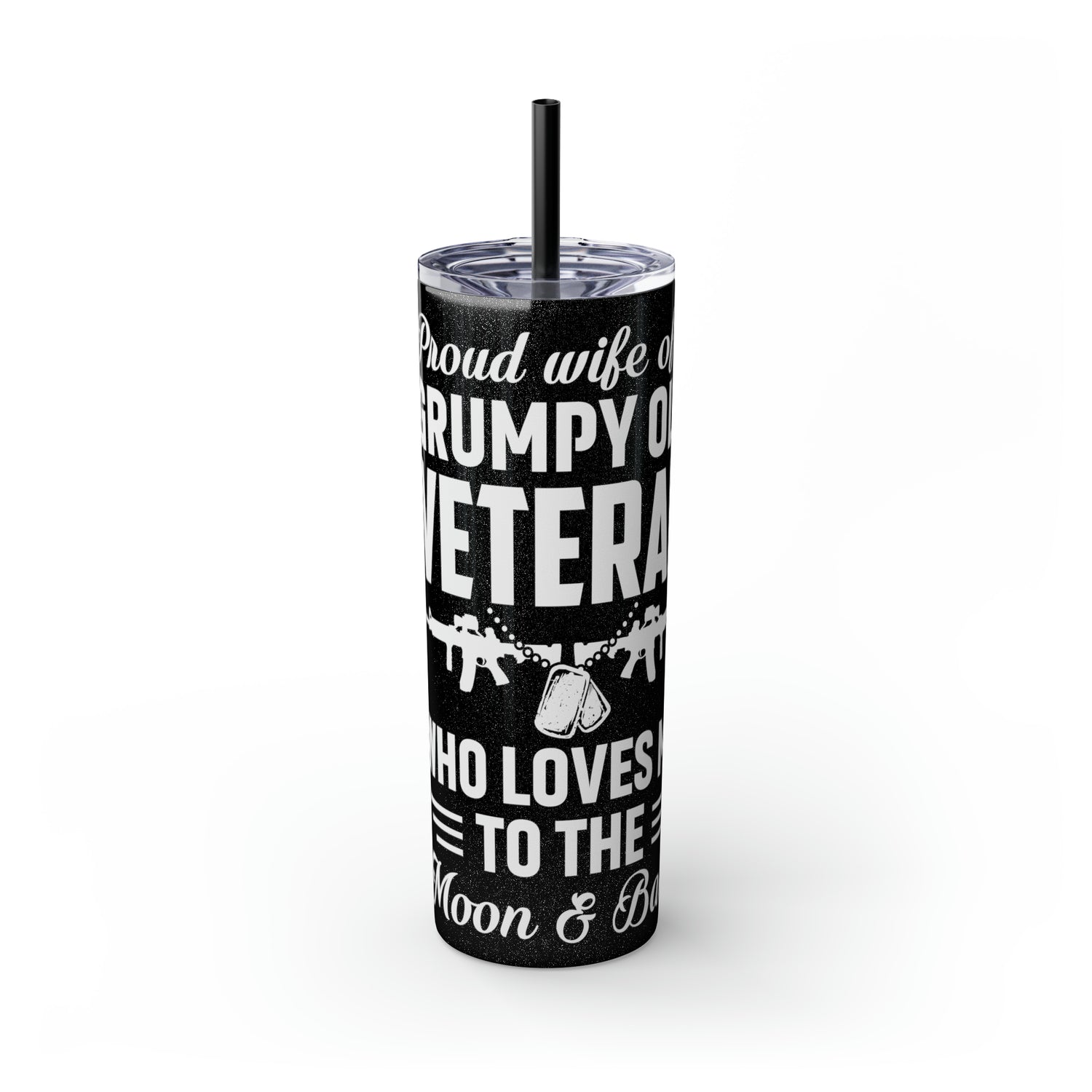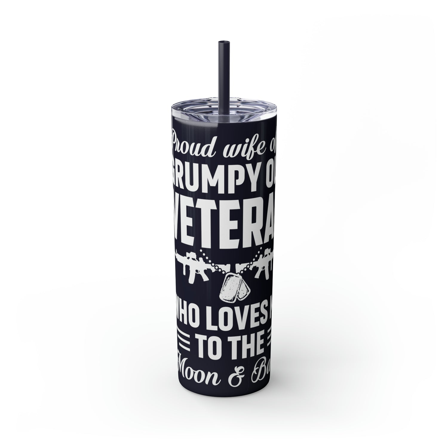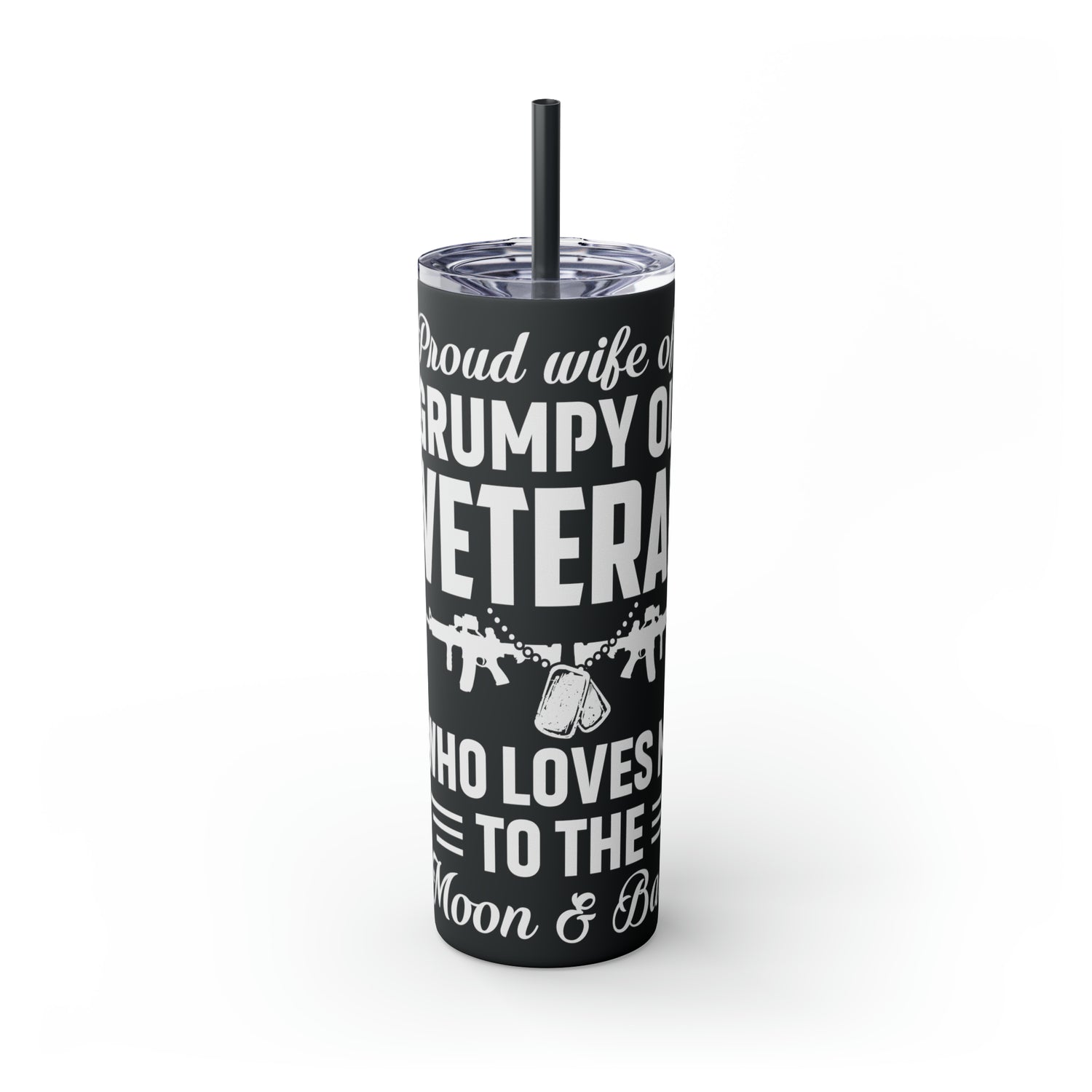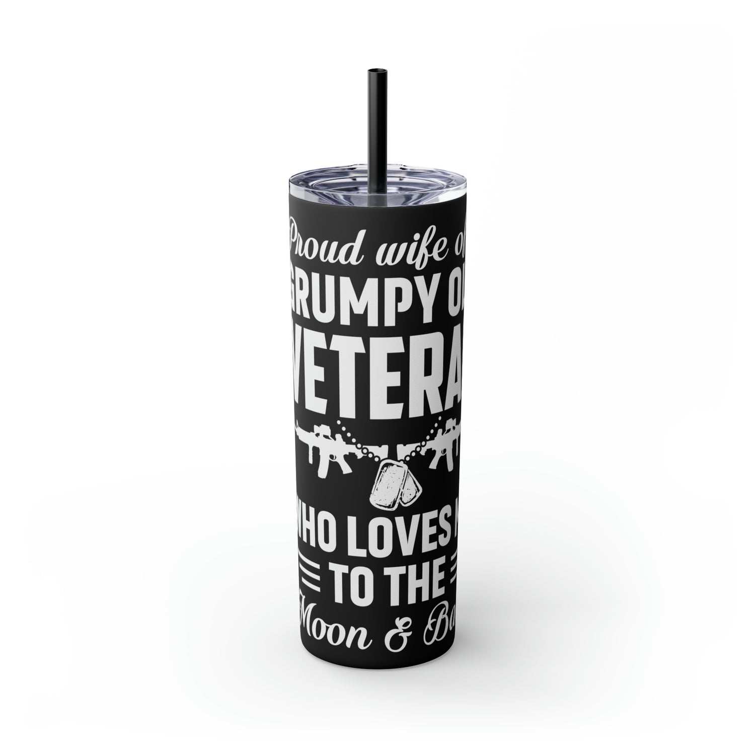 Proud Wife of a Grumpy Old Veteran Skinny Tumbler with Straw, 20oz