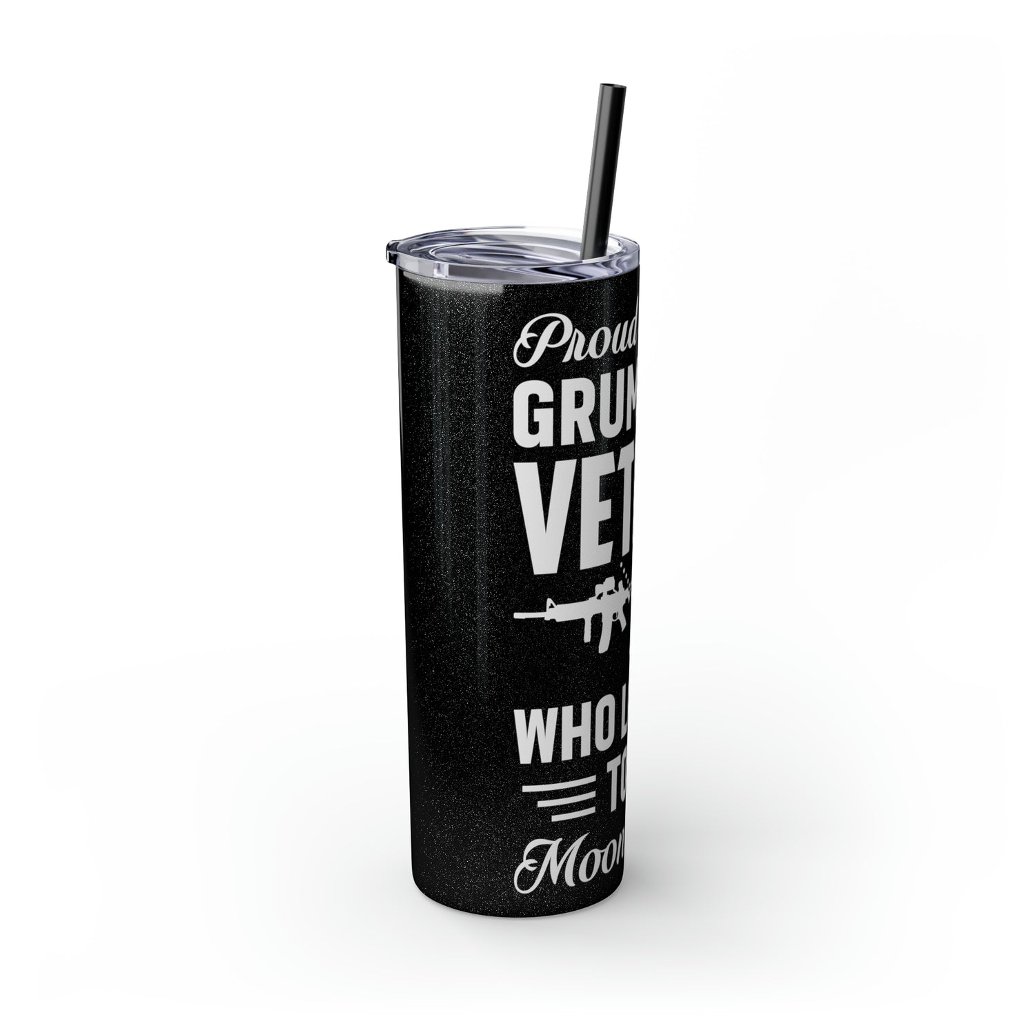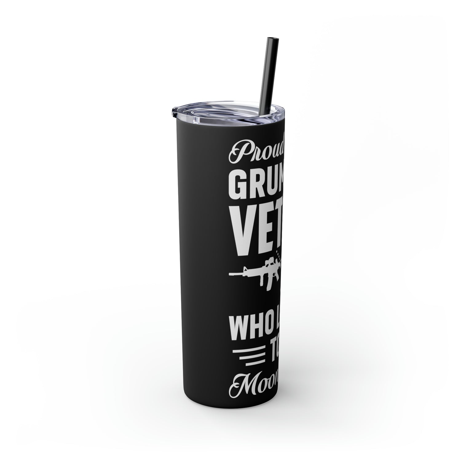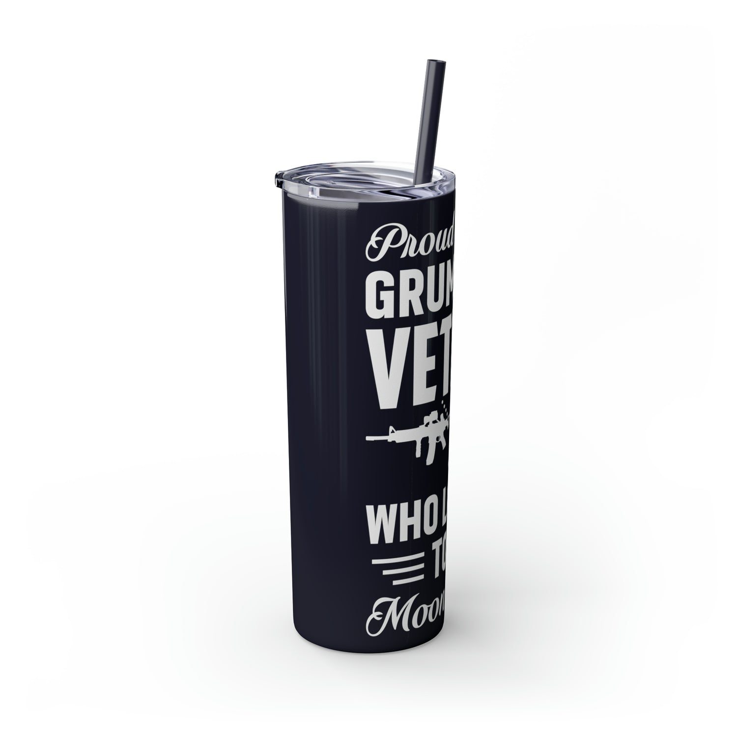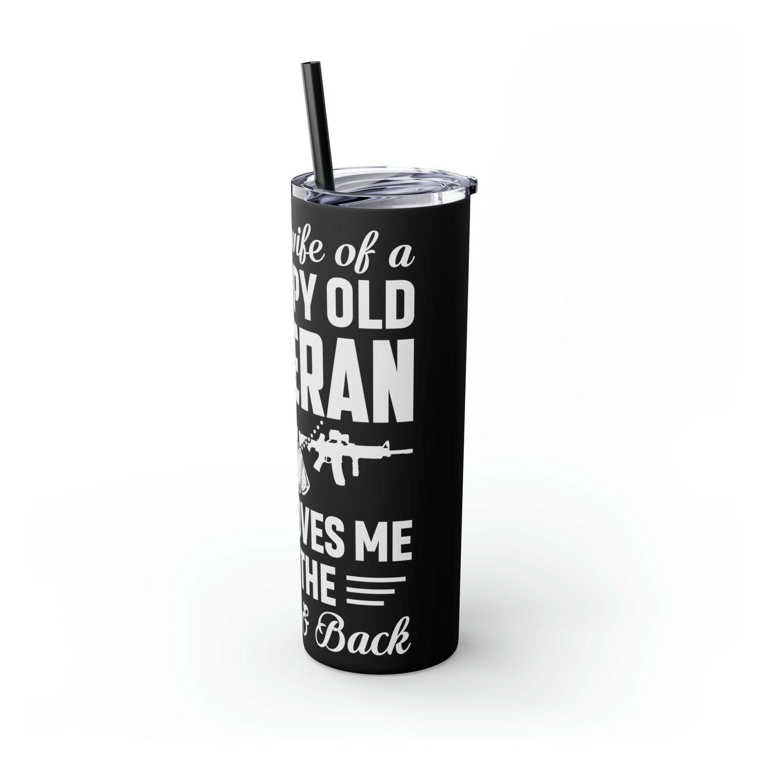 Proud Wife of a Grumpy Old Veteran Skinny Tumbler with Straw, 20oz