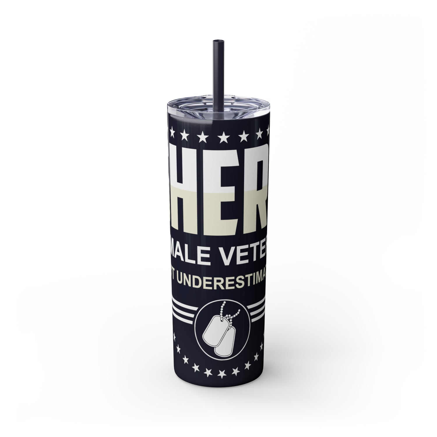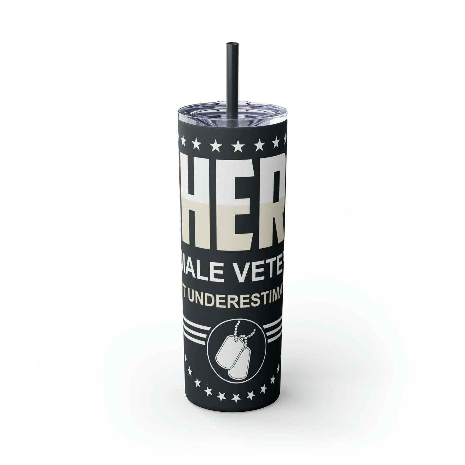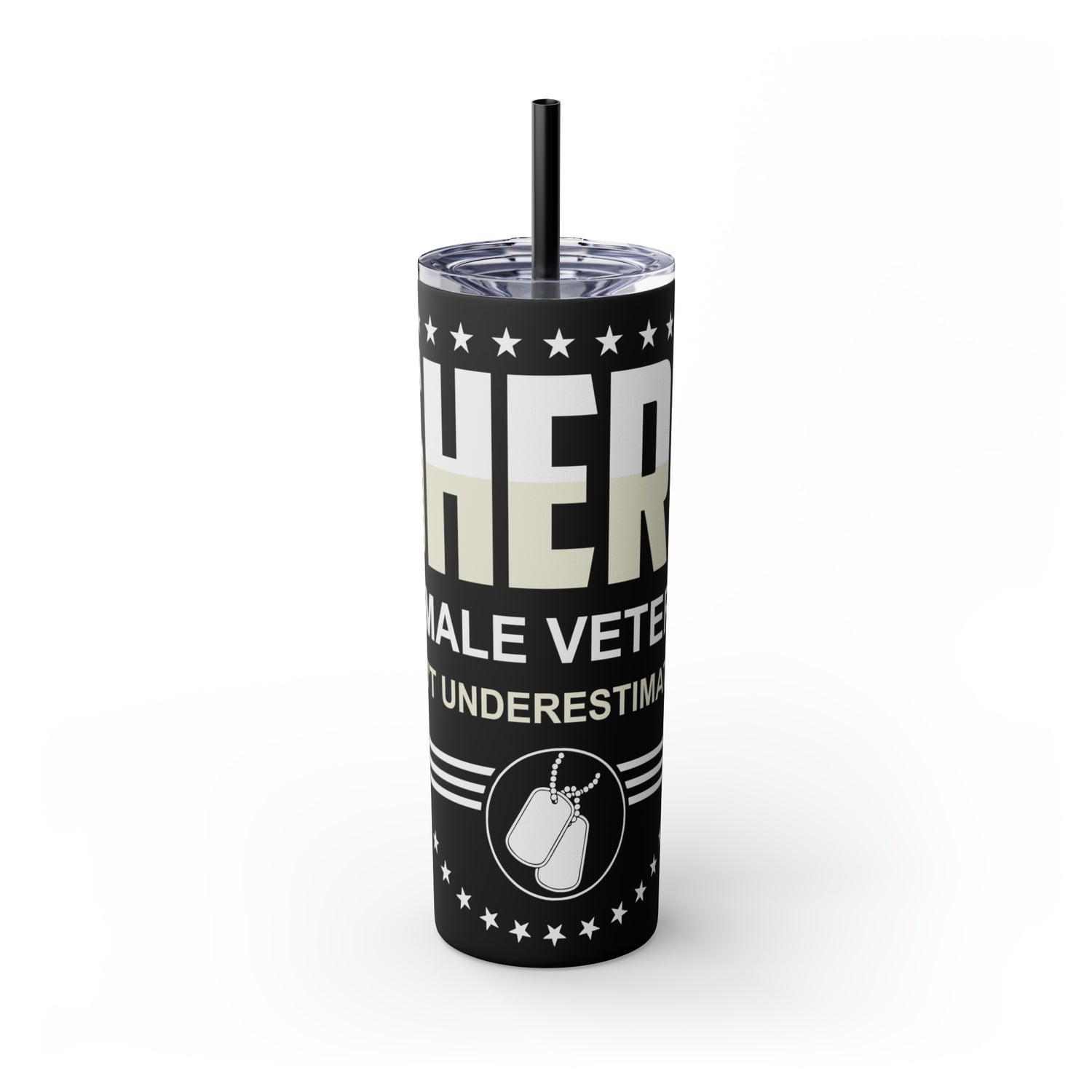 Shero Female Veteran Don't Underestimate Me Skinny Tumbler with Straw, 20oz