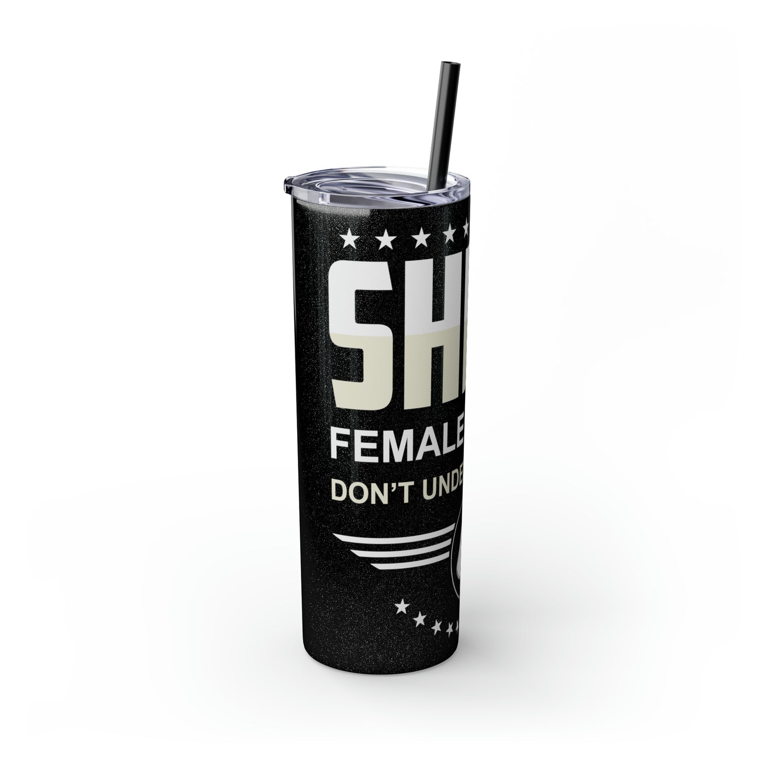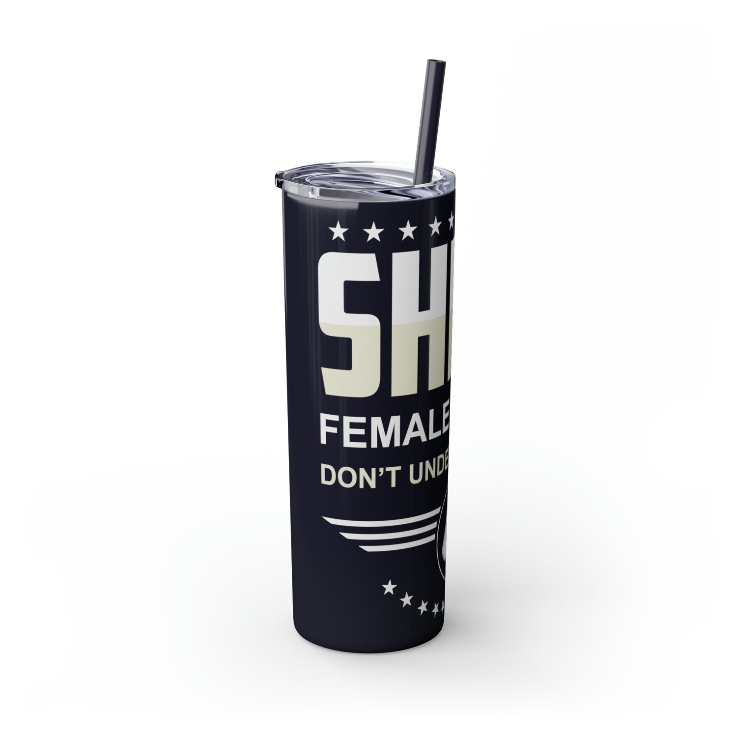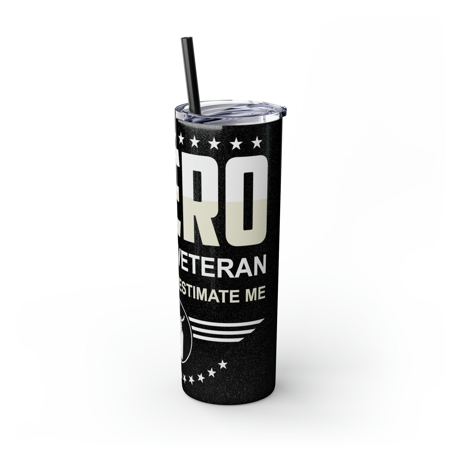 Shero Female Veteran Don't Underestimate Me Skinny Tumbler with Straw, 20oz