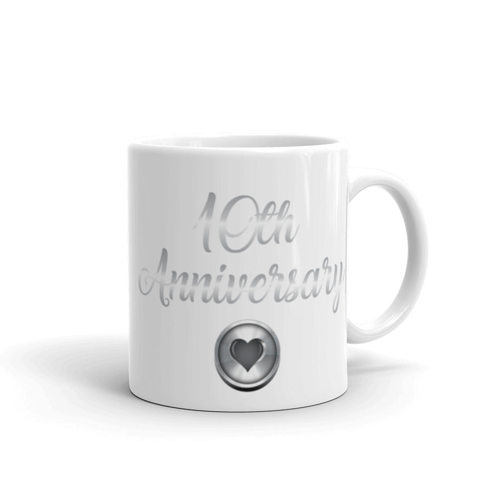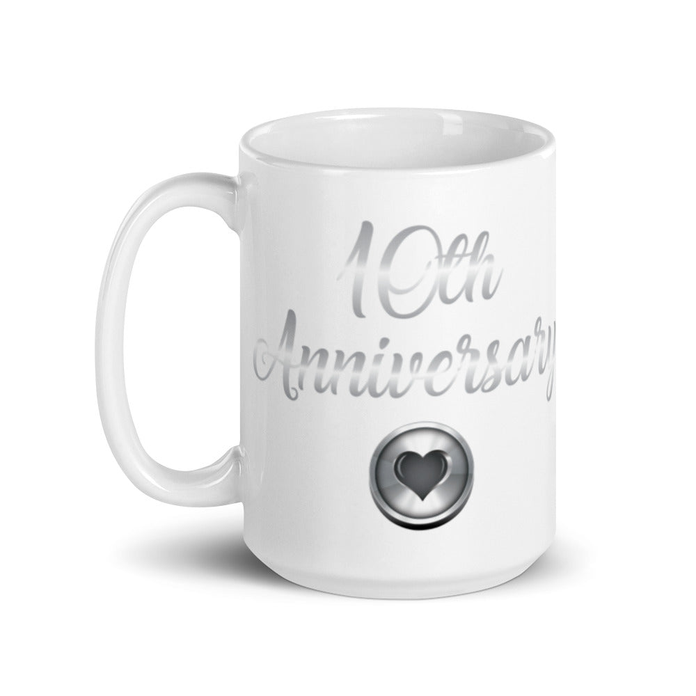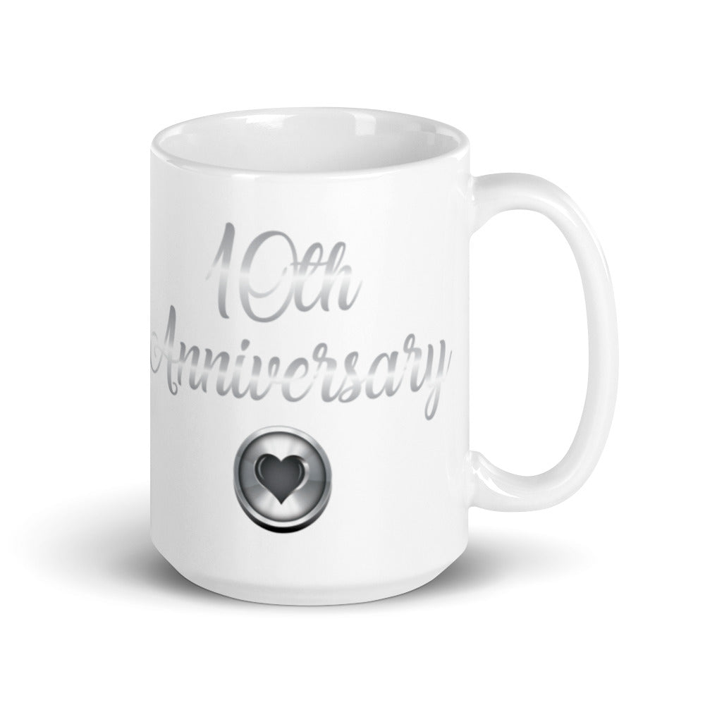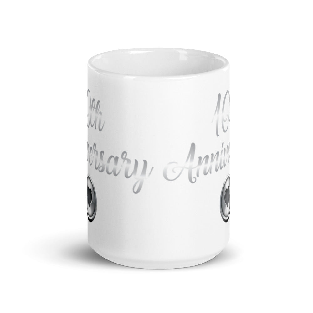 10th Anniversary in White & Silver - White glossy mug