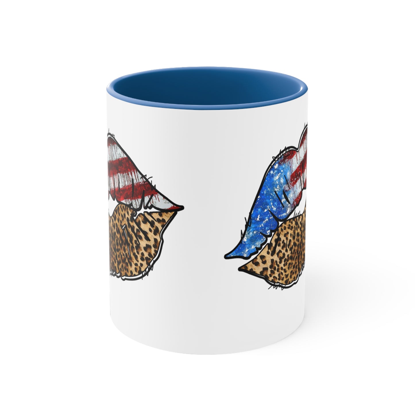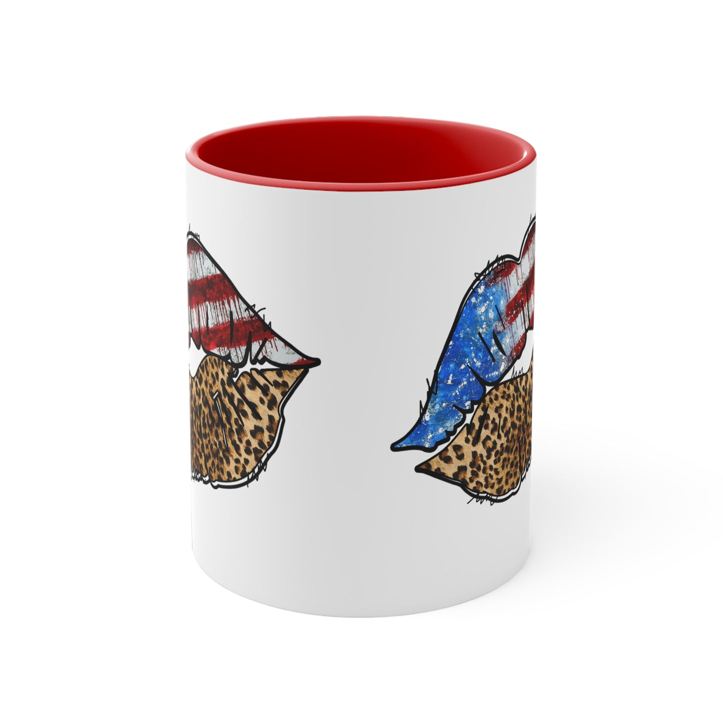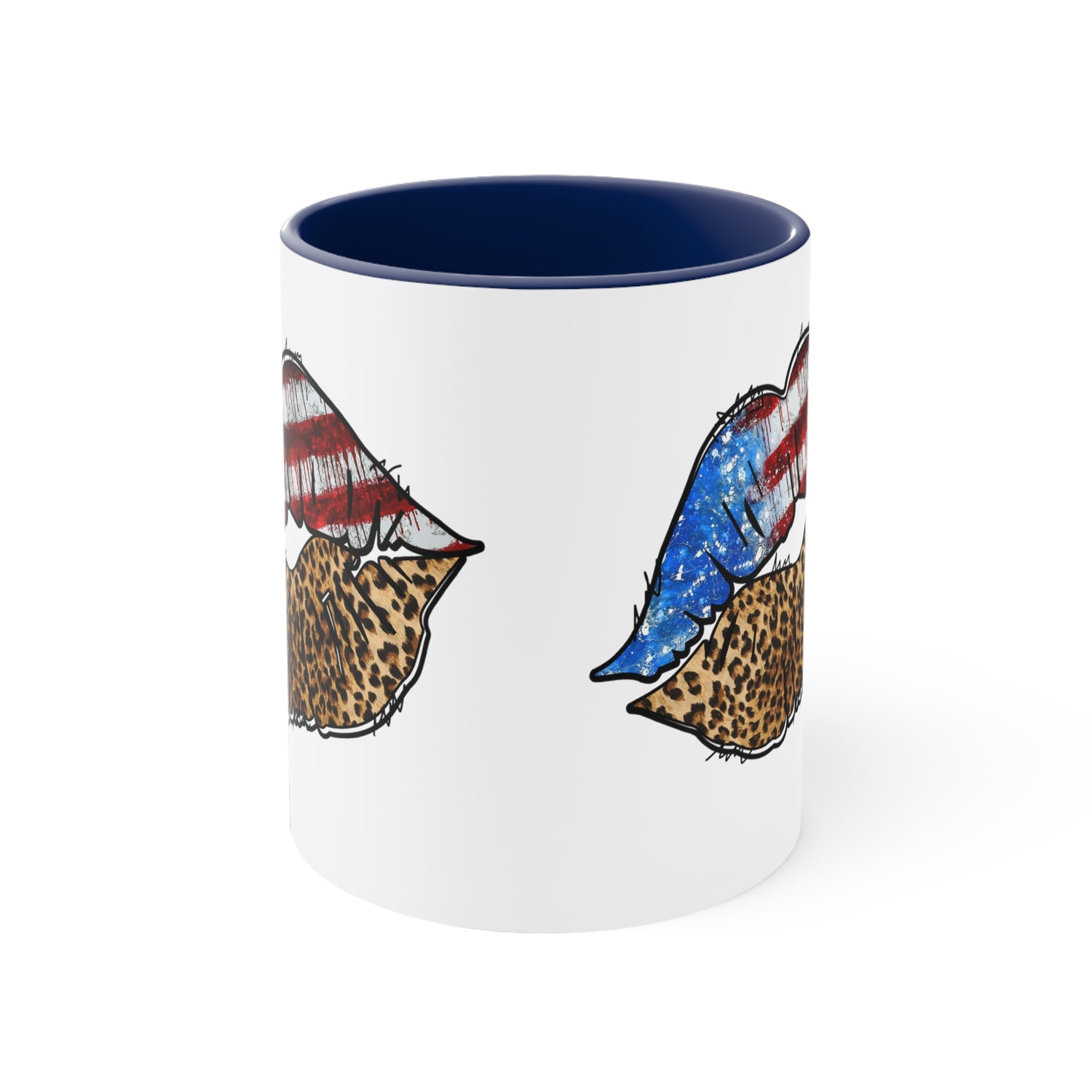 American Flag Leopard Print Lips Mug Accent Coffee Mug, 11oz