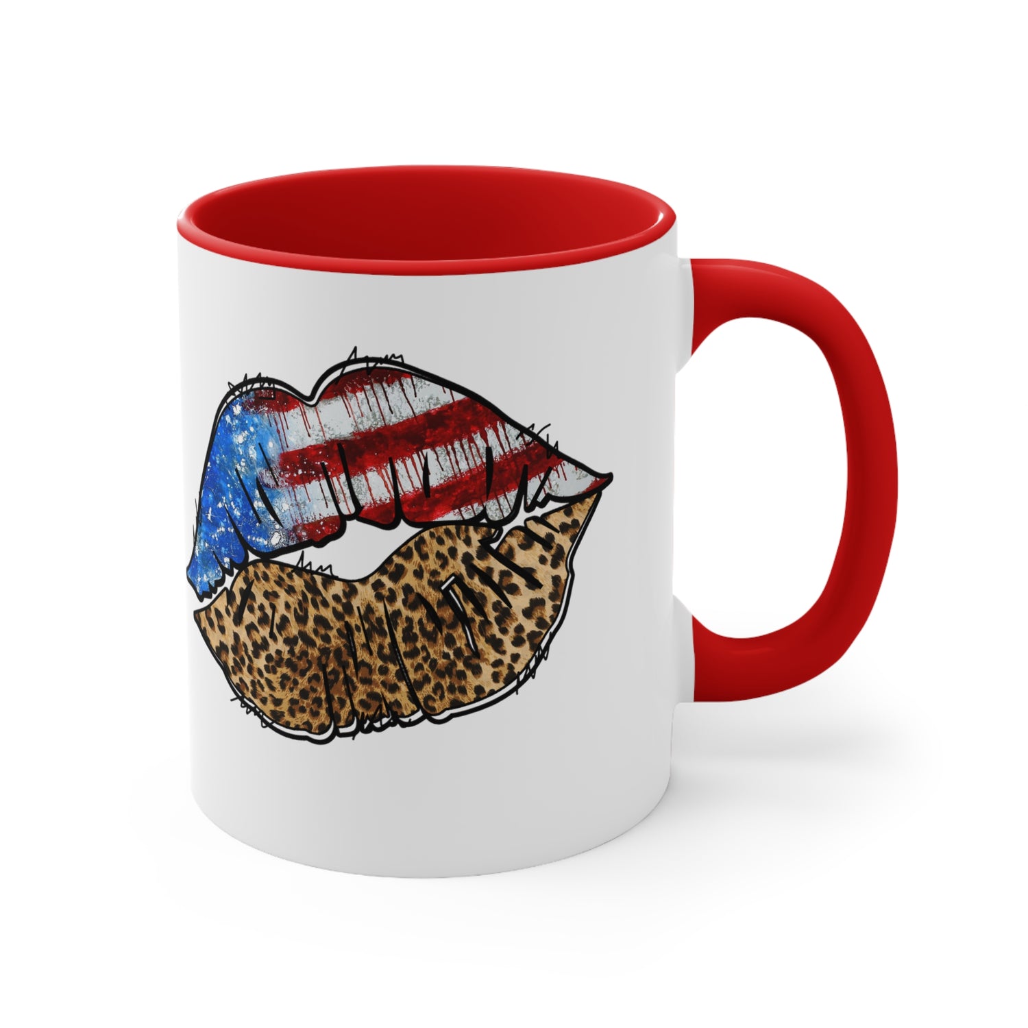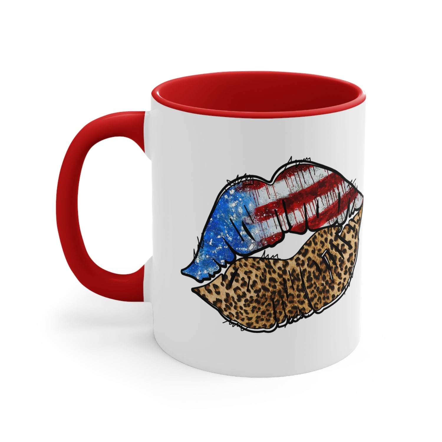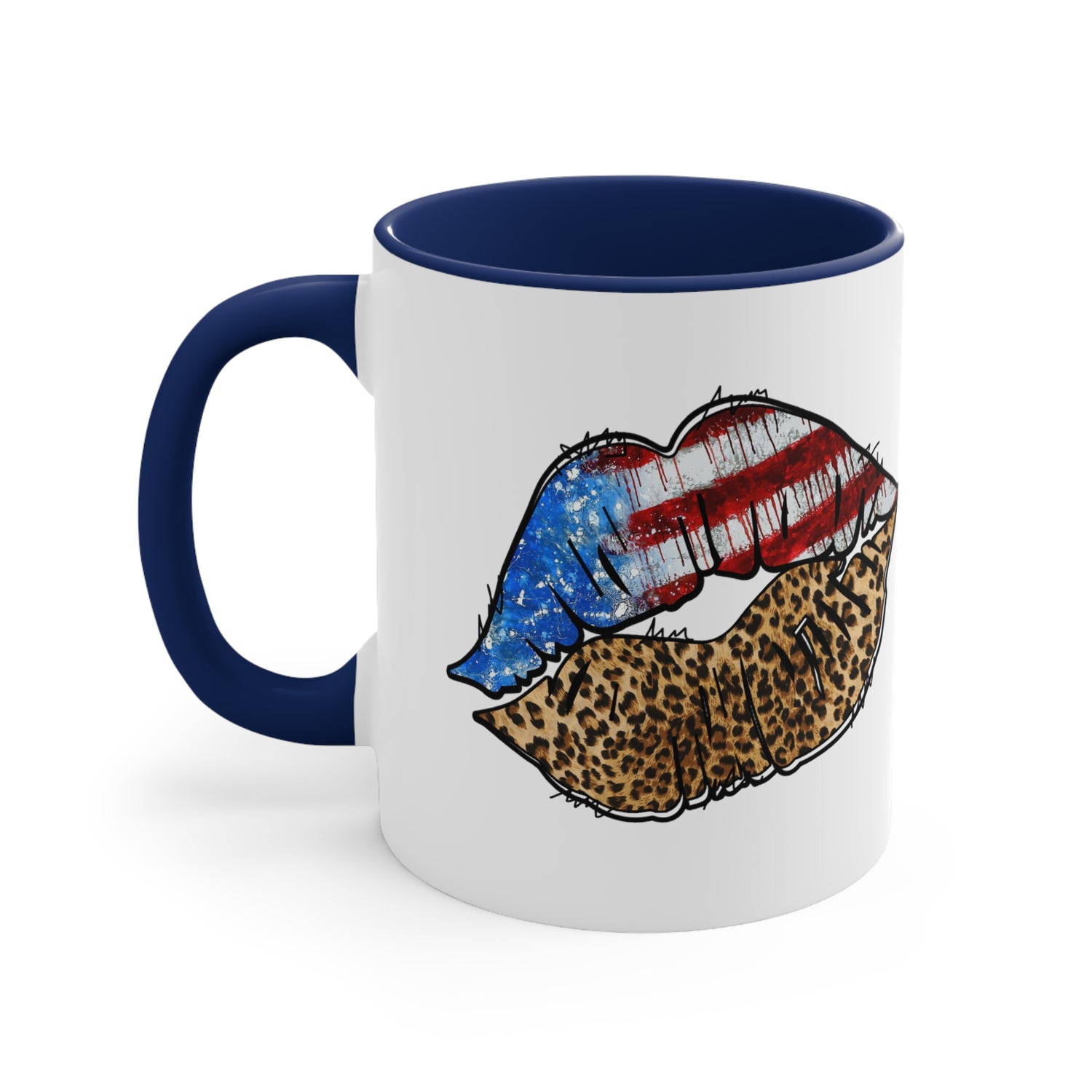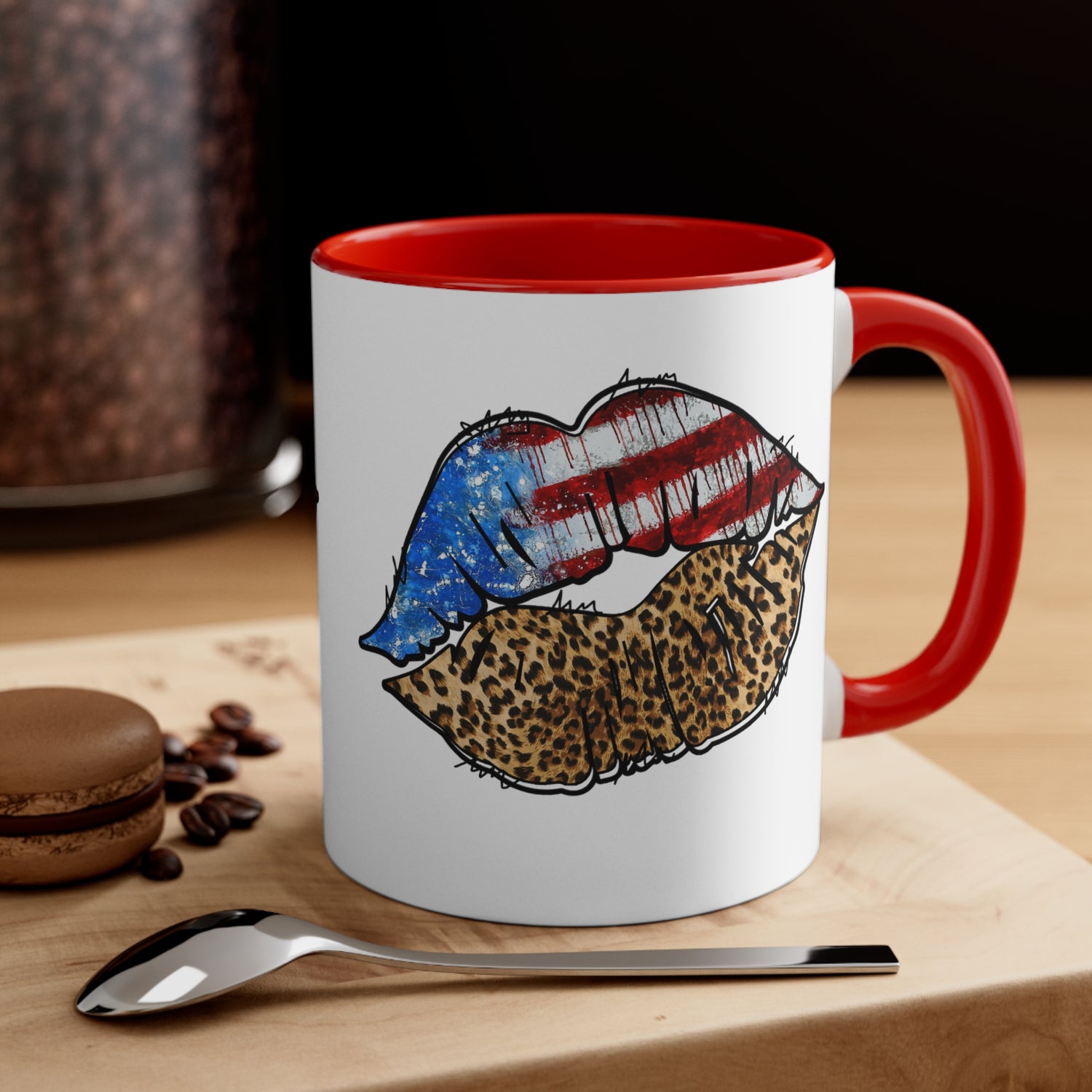 American Flag Leopard Print Lips Mug Accent Coffee Mug, 11oz