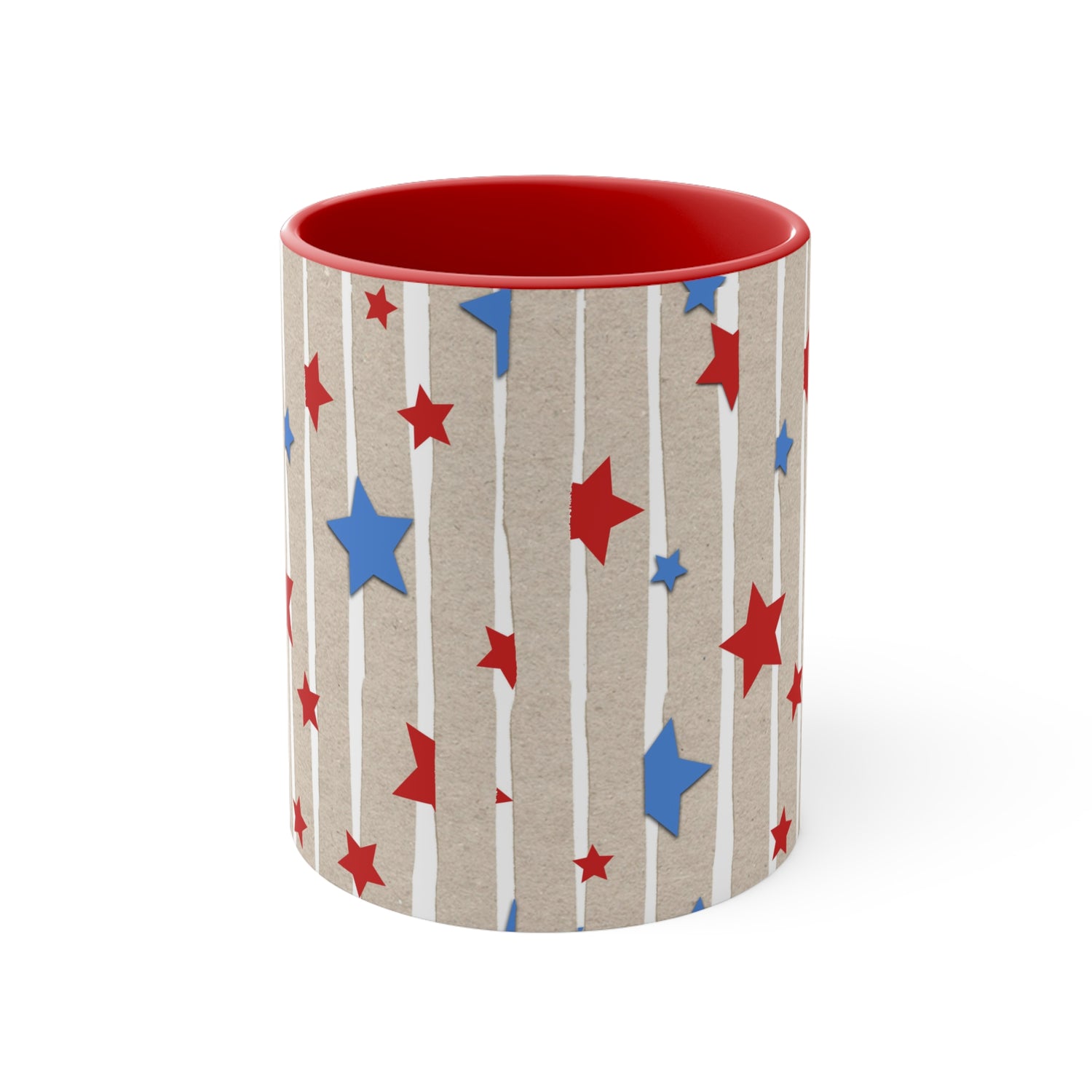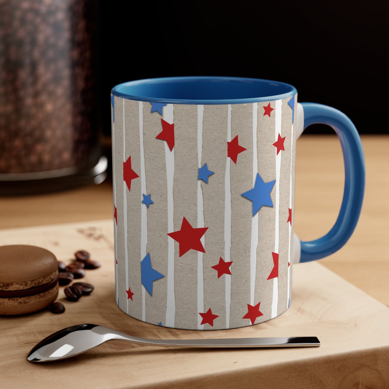 American Flag Stars & Stripes Themed Accent Coffee Mug, 11oz