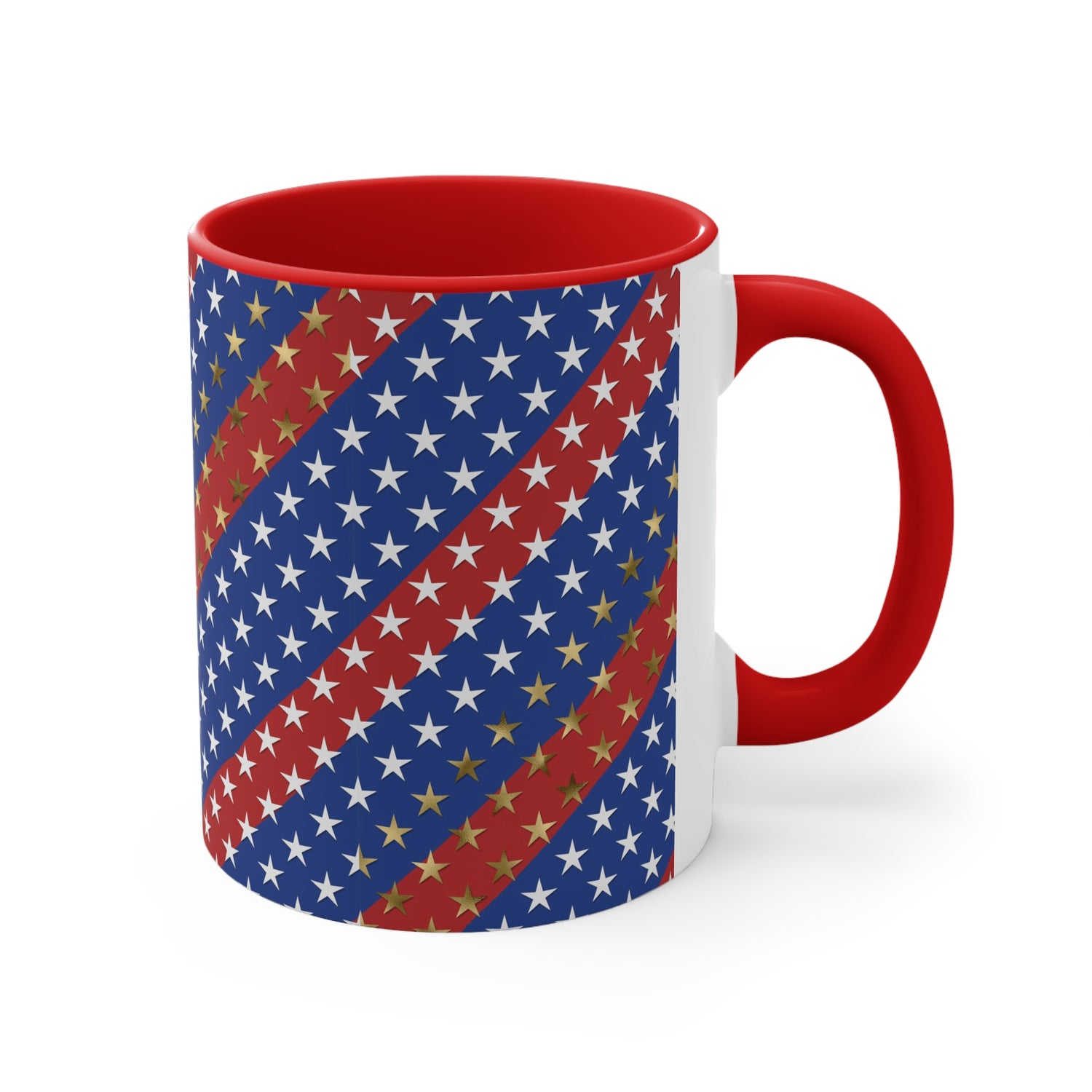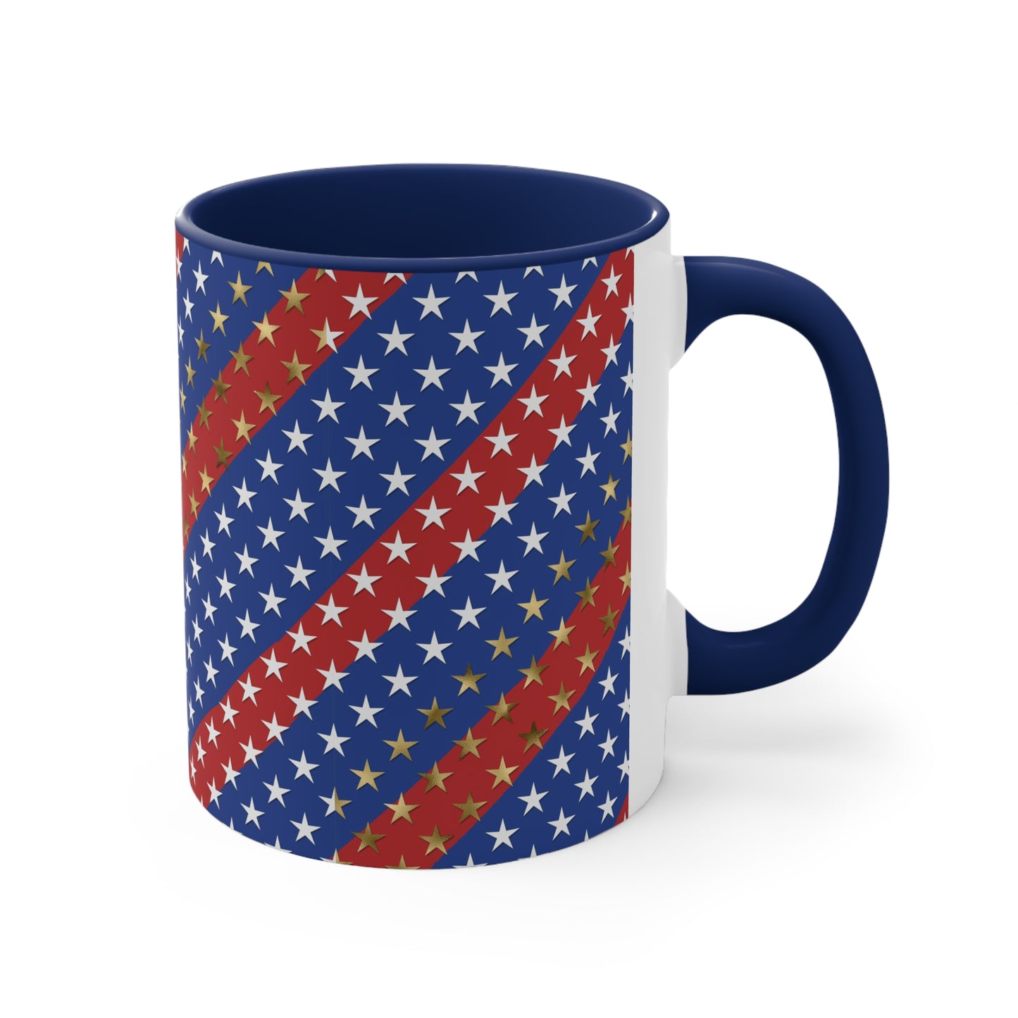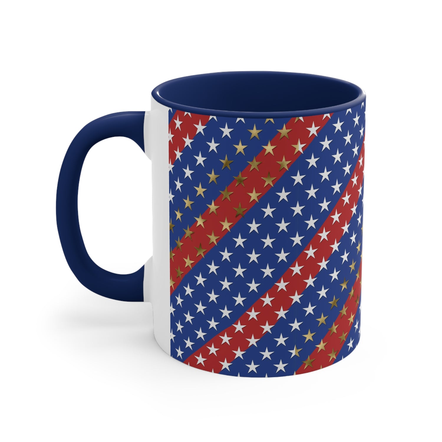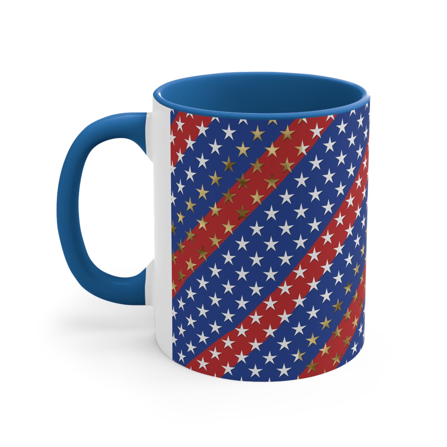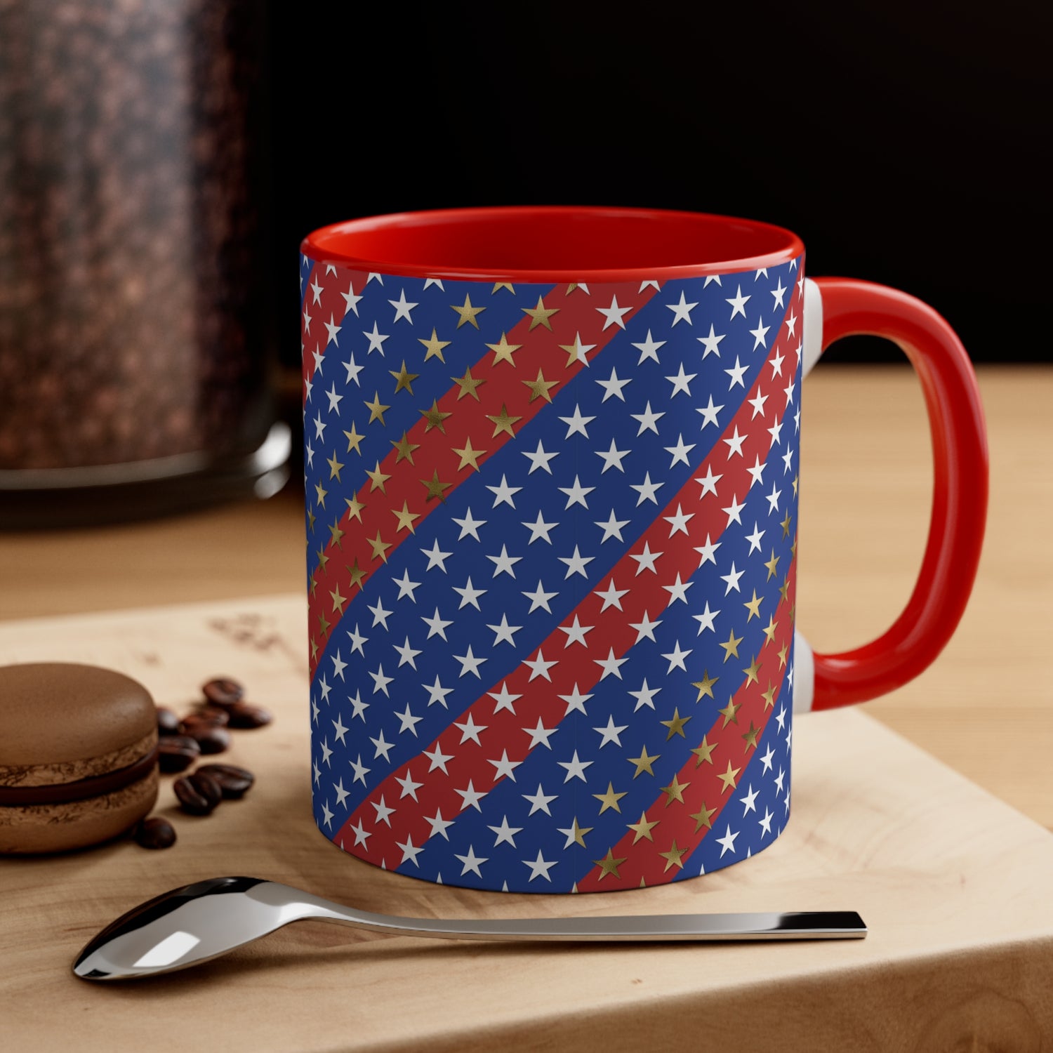 American Flag Themed Stars & Stripes Accent Coffee Mug, 11oz