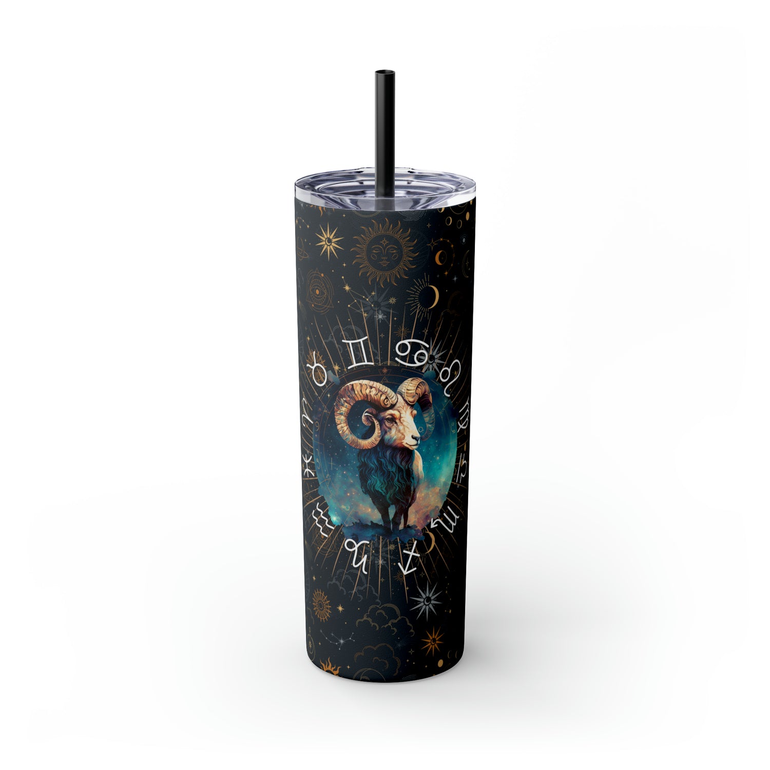 Aries Zodiac Skinny Tumbler with Straw Astrology Insulated Mug Bridesmaids Gift Bachelorette Party Favor Birthday Gift