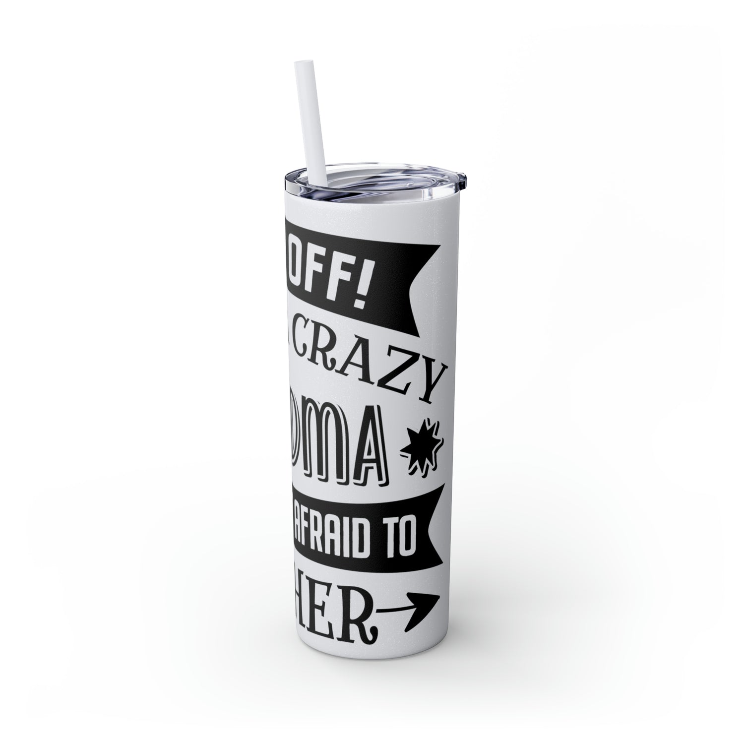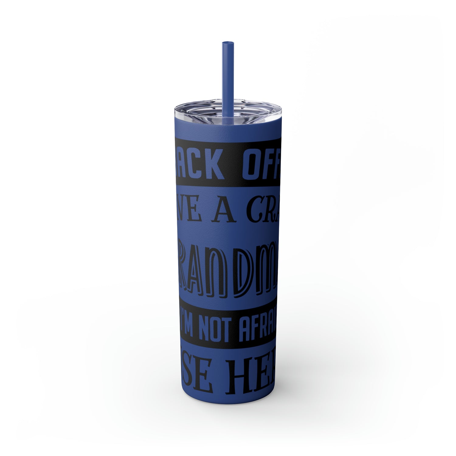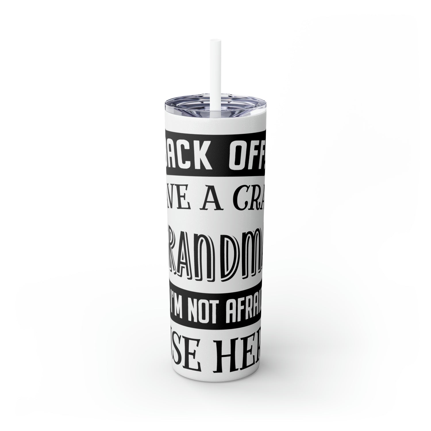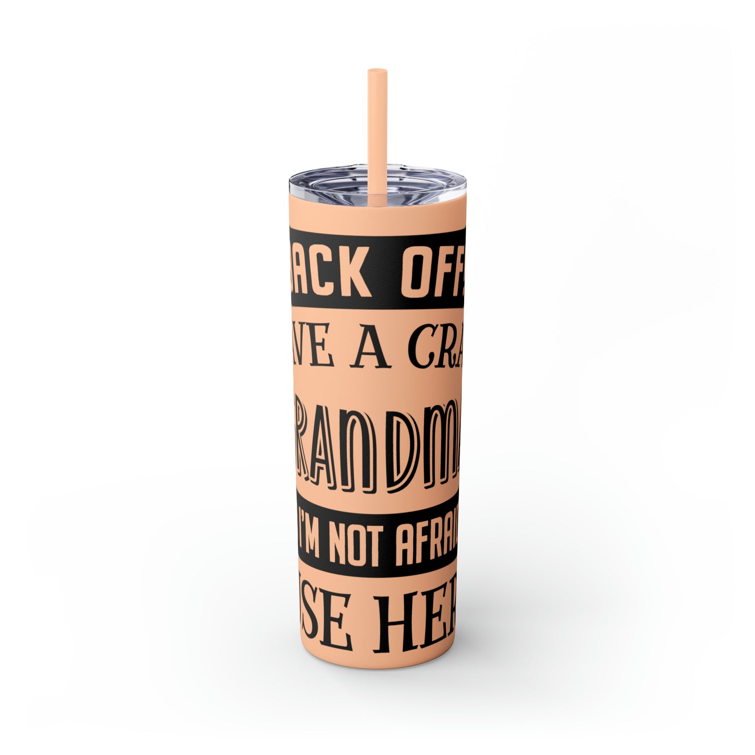 Back off I Have a Crazy Grandma And I'm Not Afraid To Use Her Skinny Tumbler with Straw, 20oz