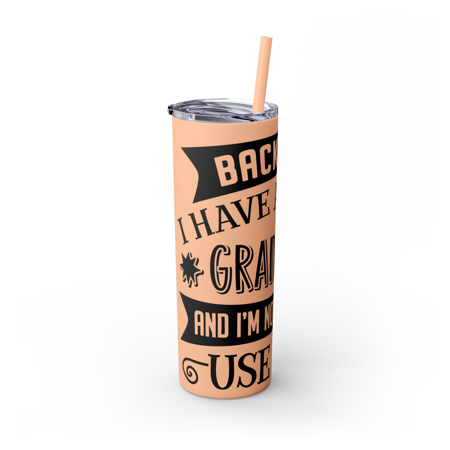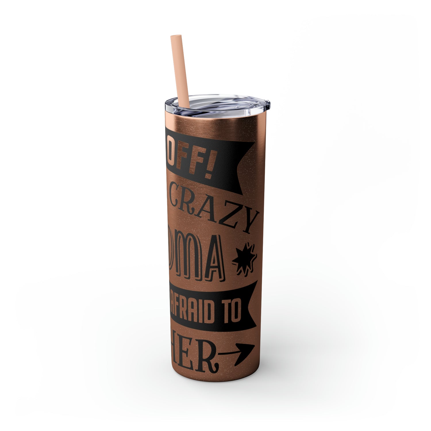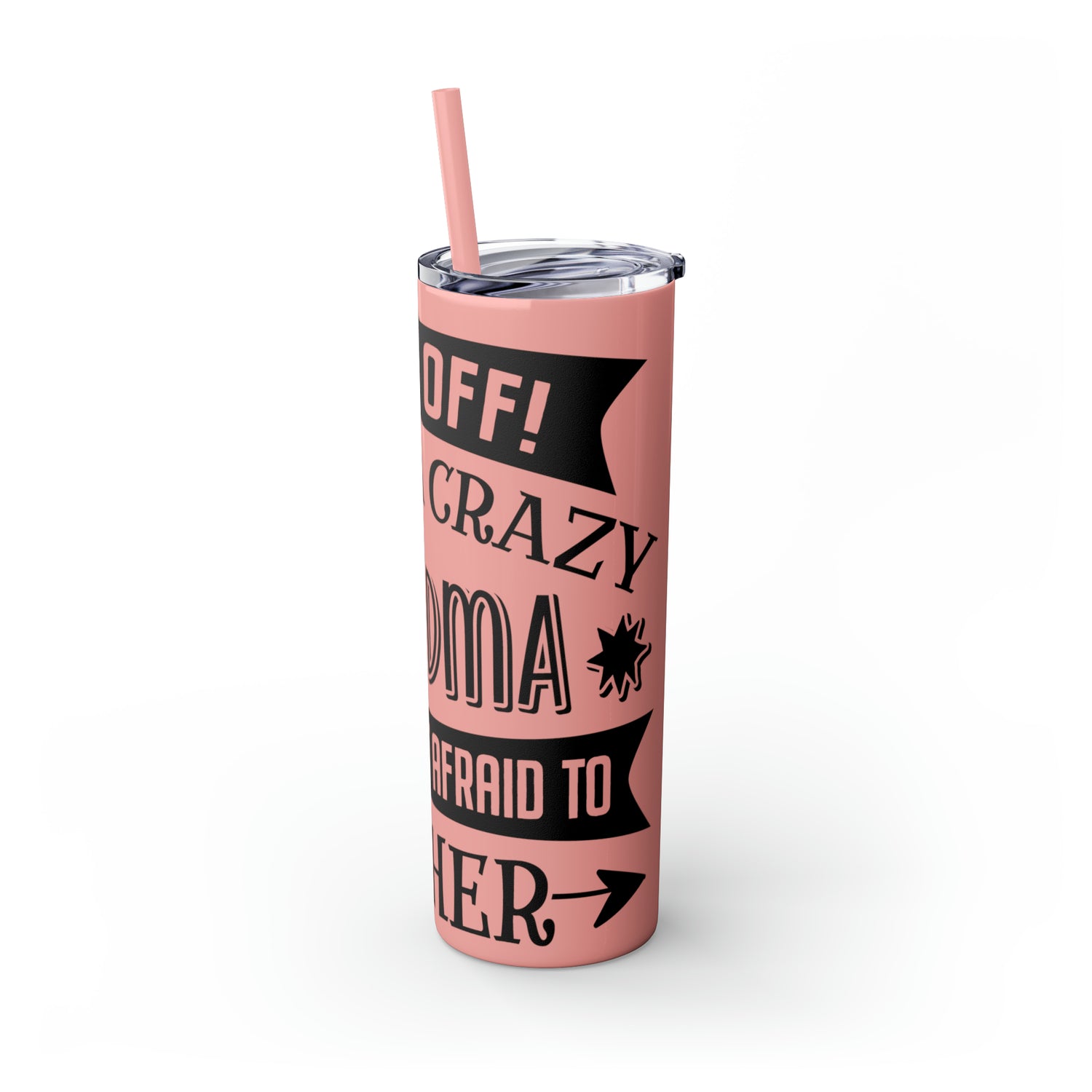 Back off I Have a Crazy Grandma And I'm Not Afraid To Use Her Skinny Tumbler with Straw, 20oz