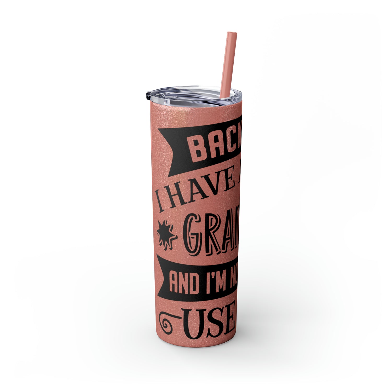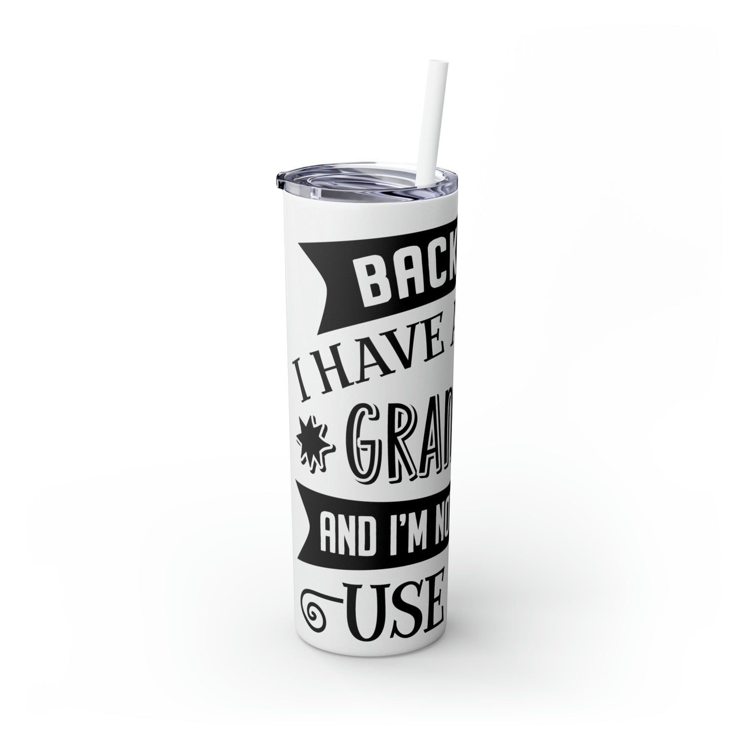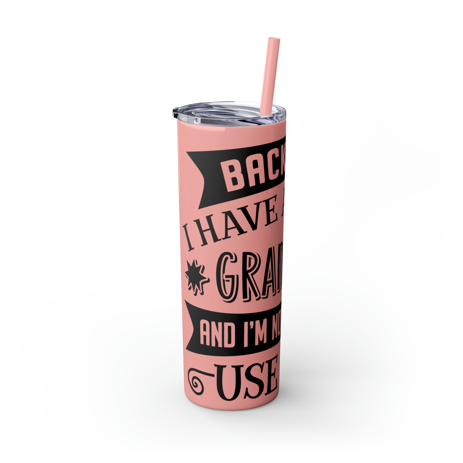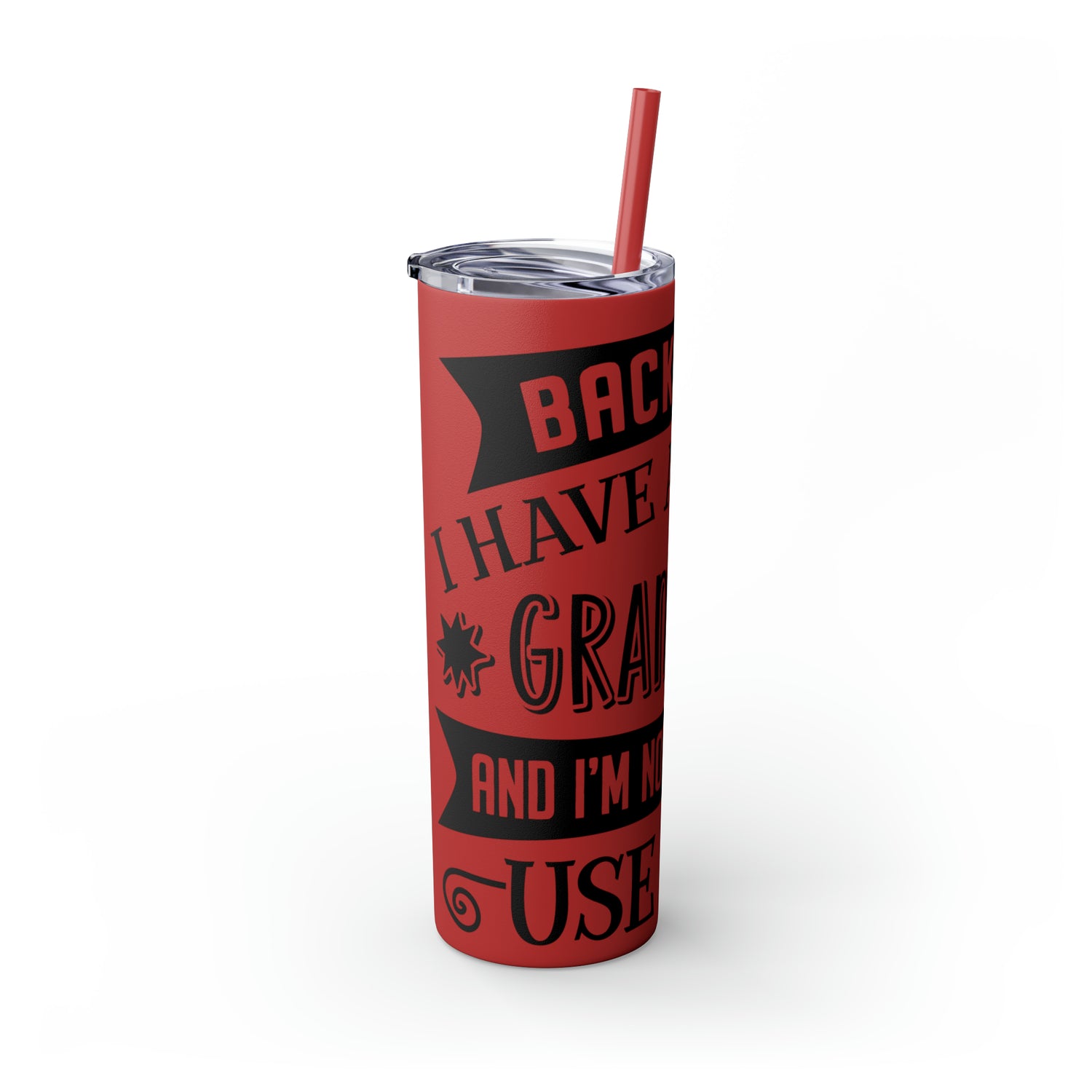 Back off I Have a Crazy Grandma And I'm Not Afraid To Use Her Skinny Tumbler with Straw, 20oz