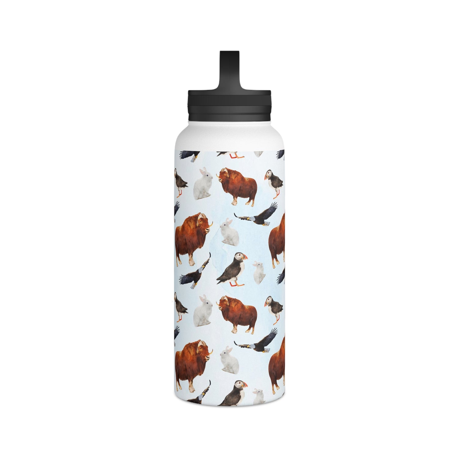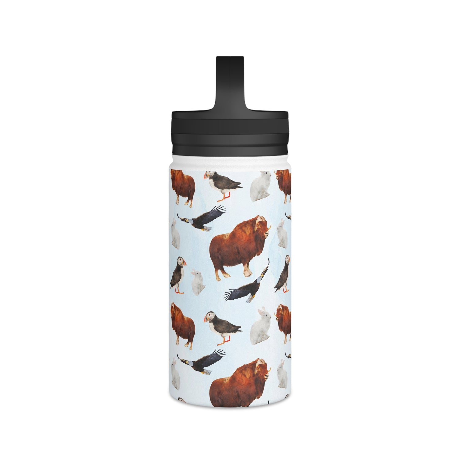 Back To School Animals Stainless Steel Water Bottle, Handle Lid