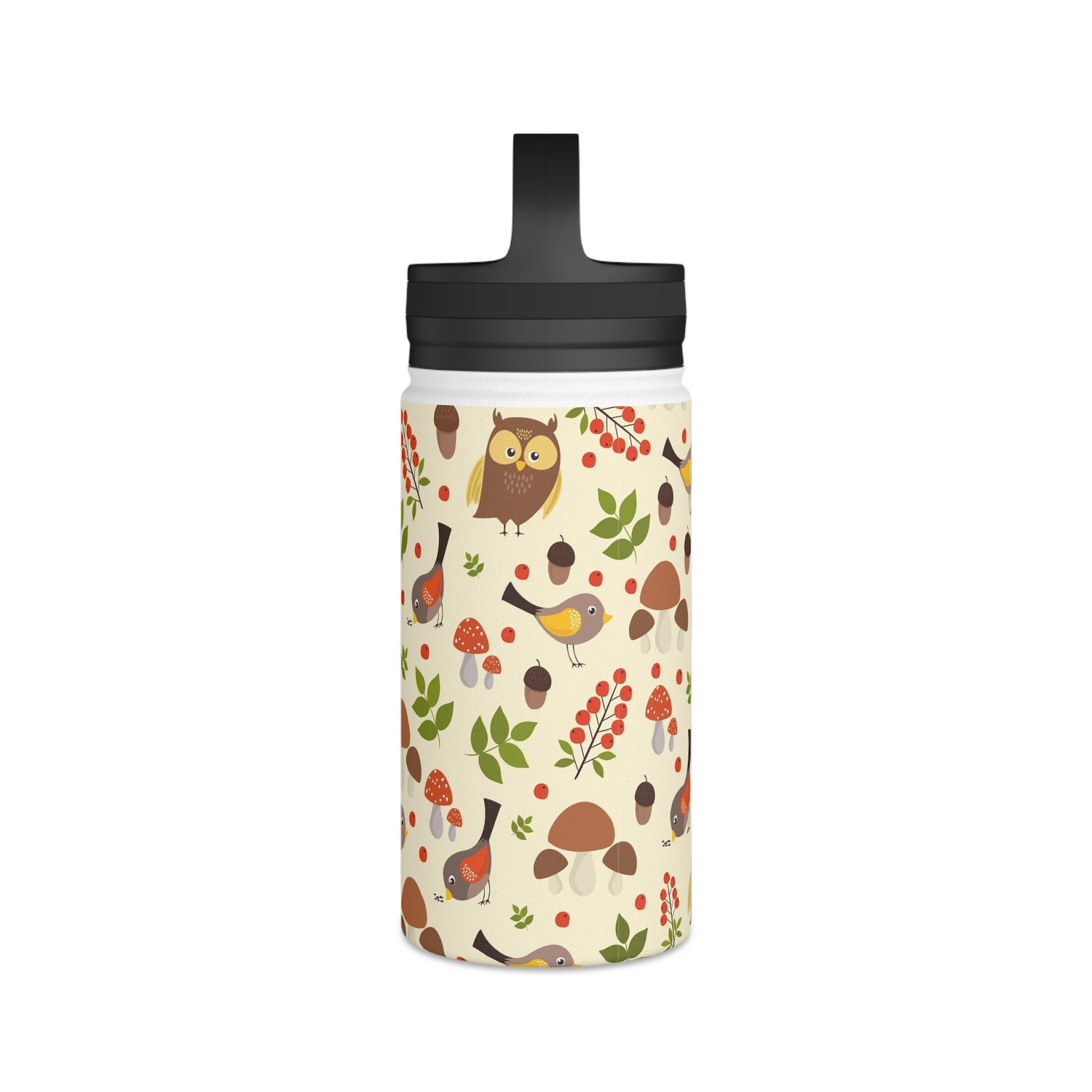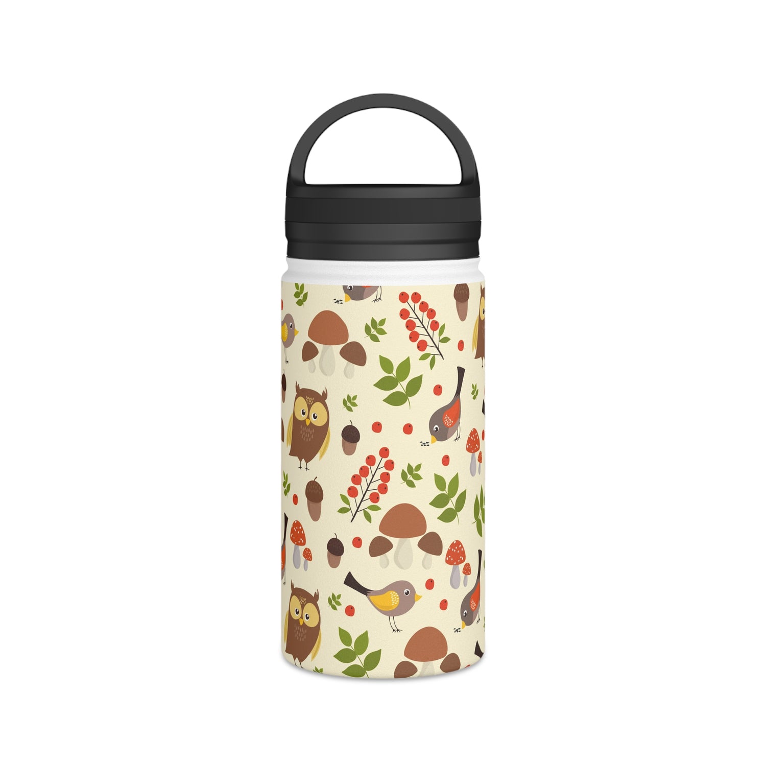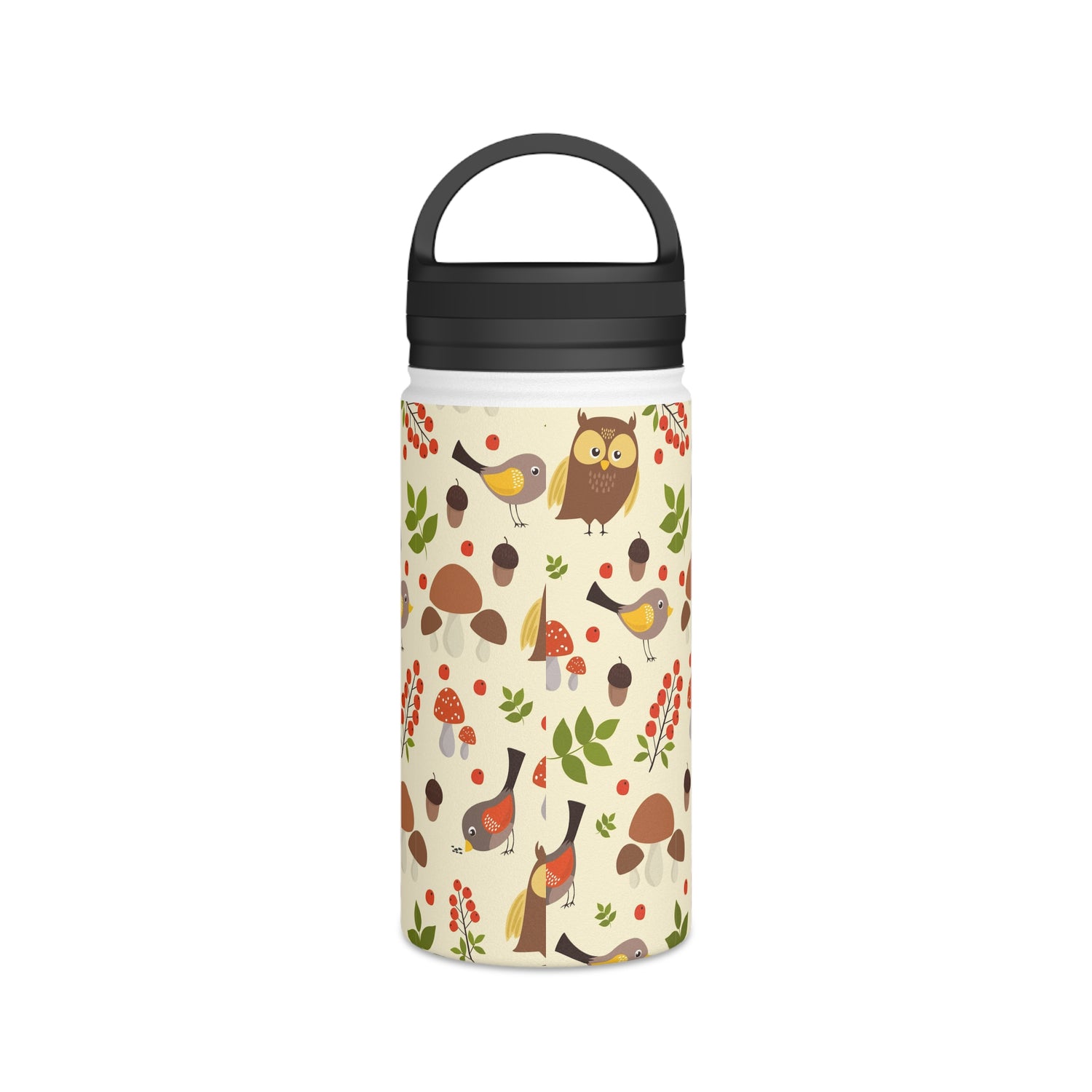 Back To School Birds & Owls Stainless Steel Water Bottle, Handle Lid