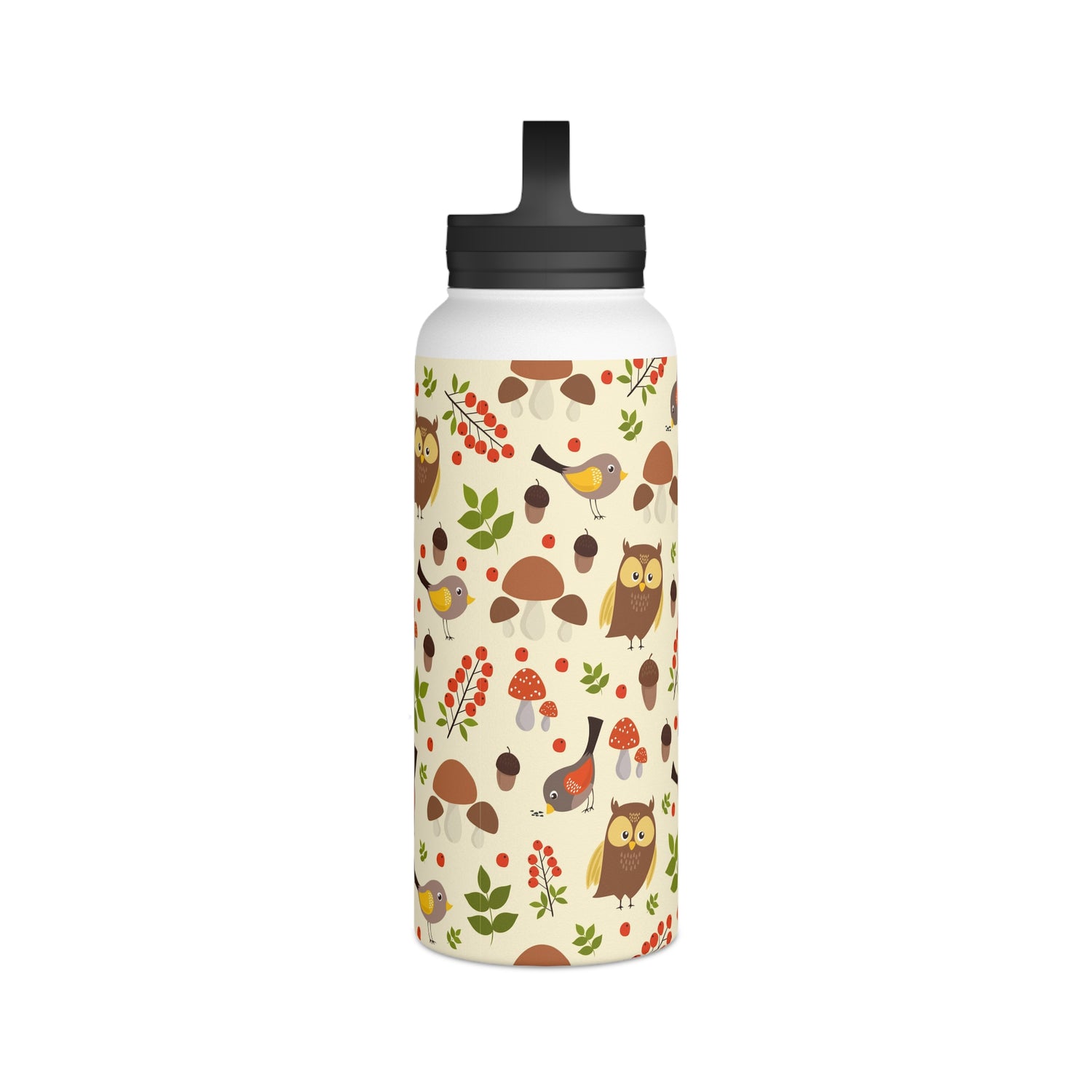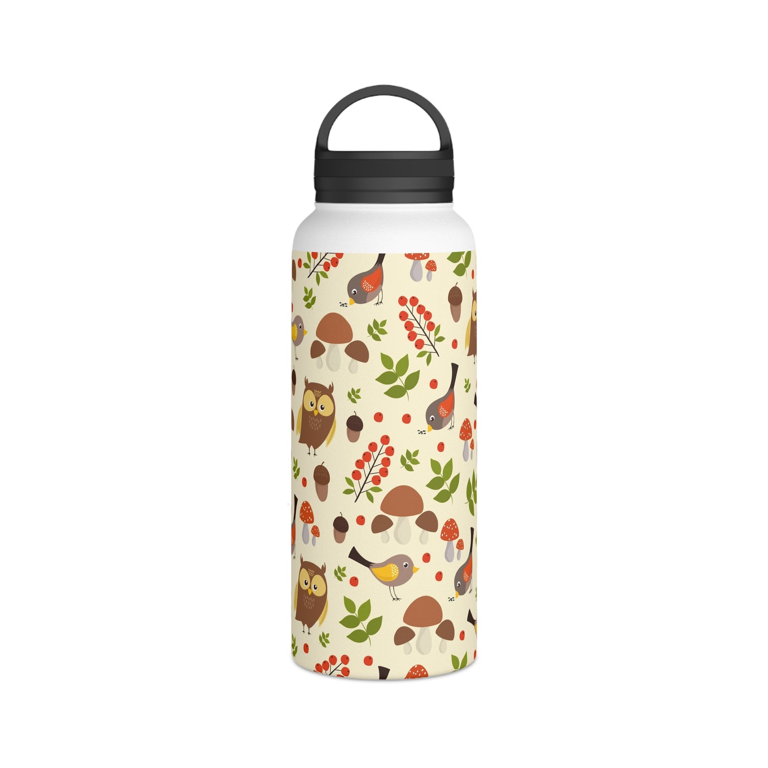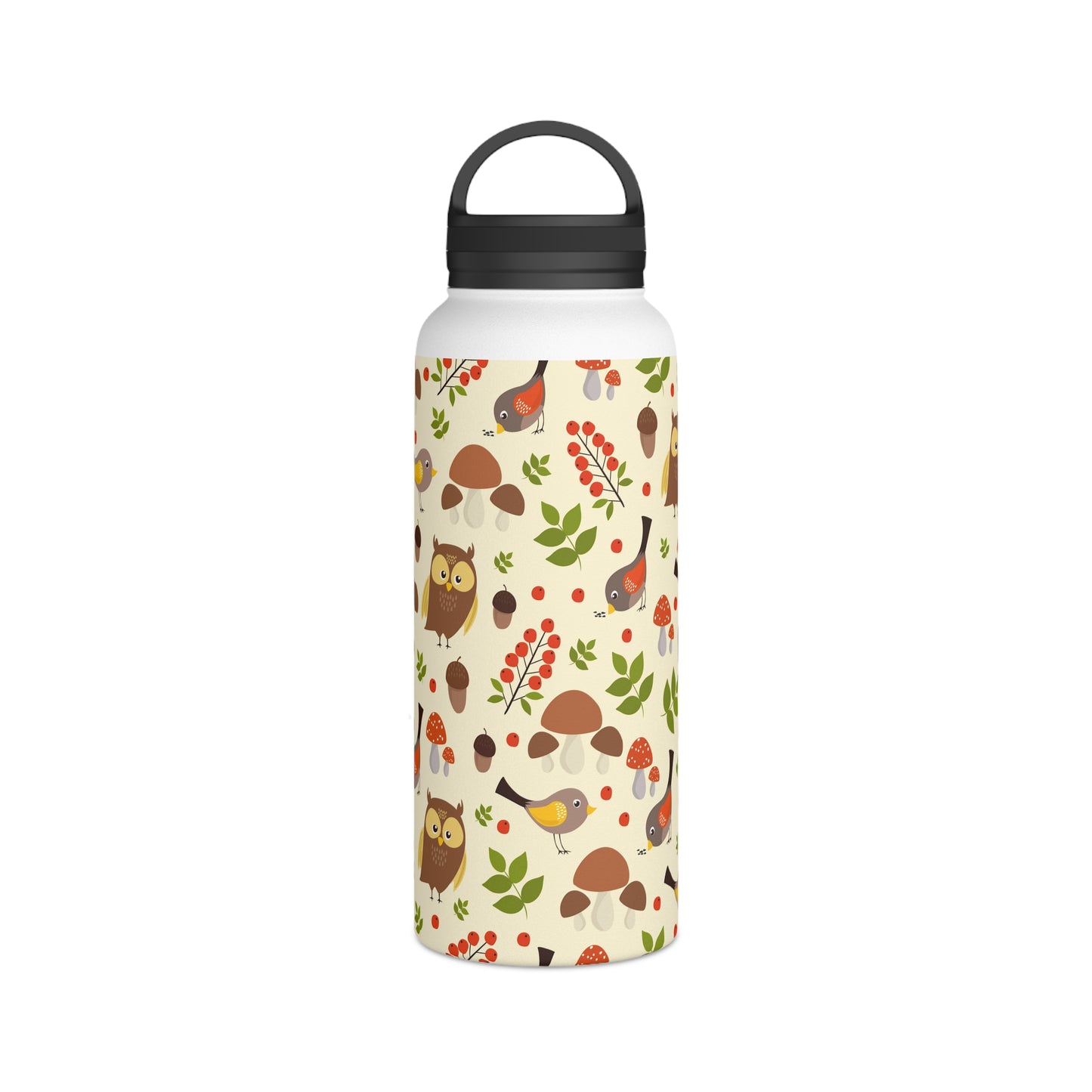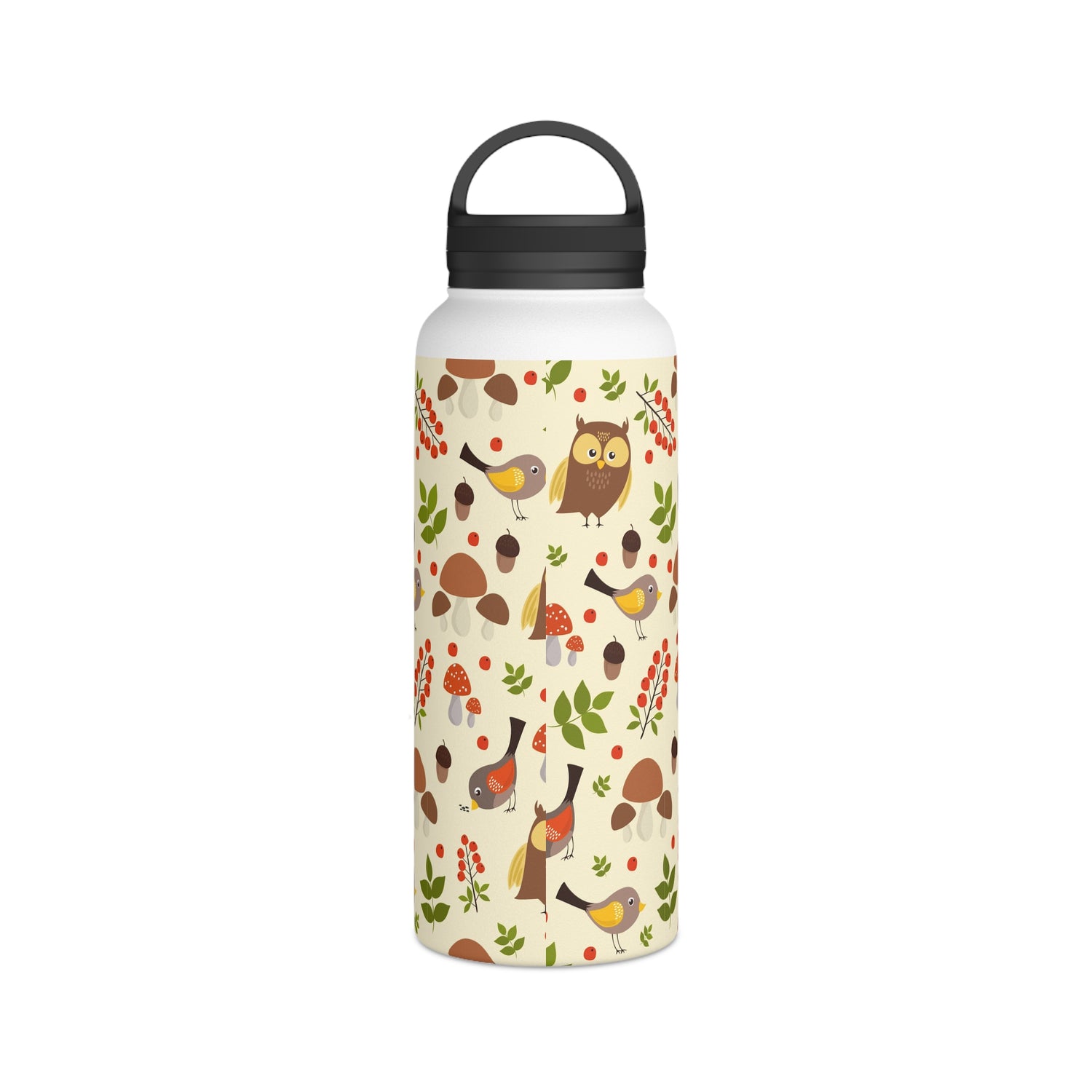 Back To School Birds & Owls Stainless Steel Water Bottle, Handle Lid