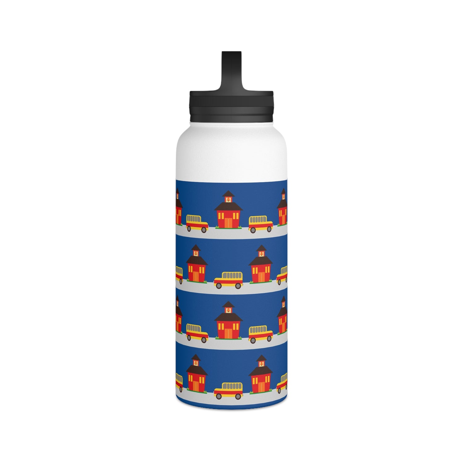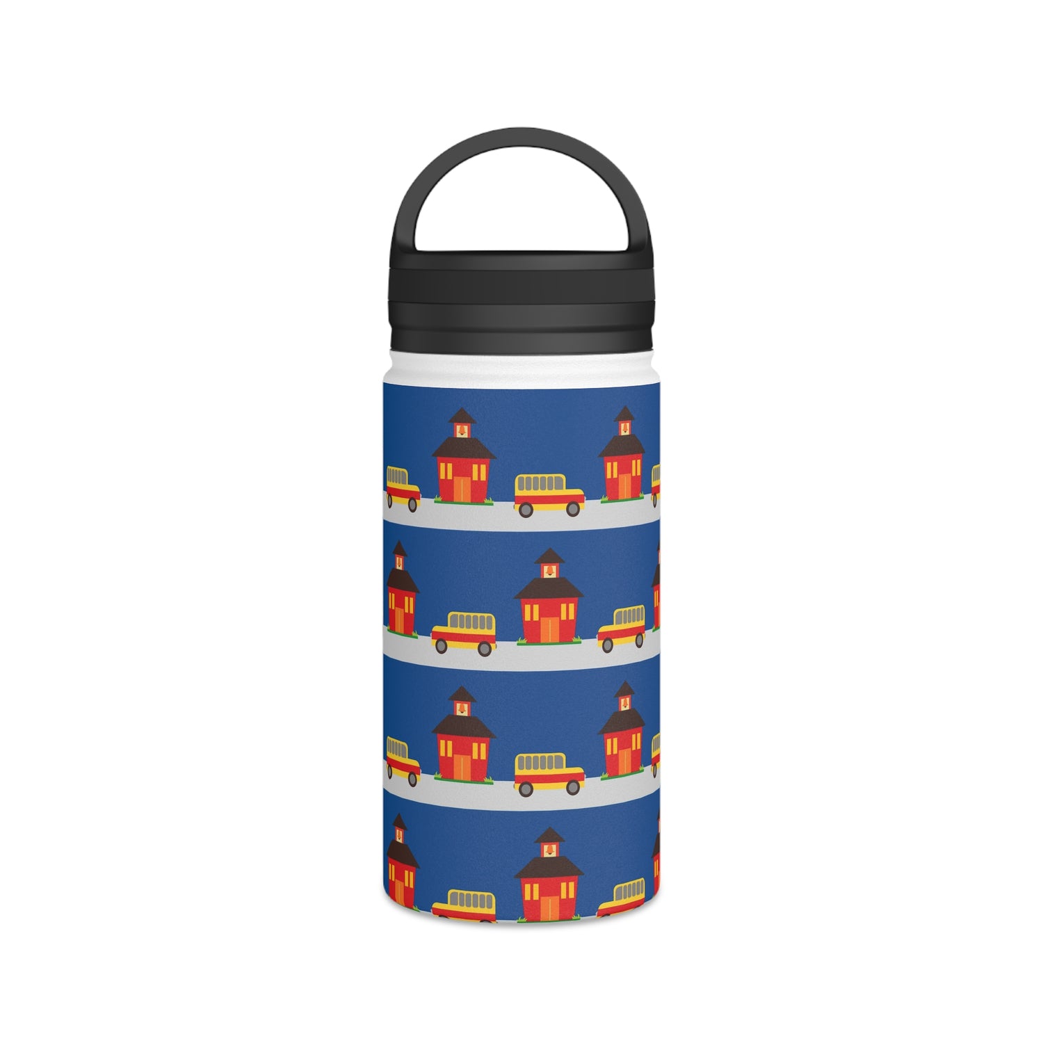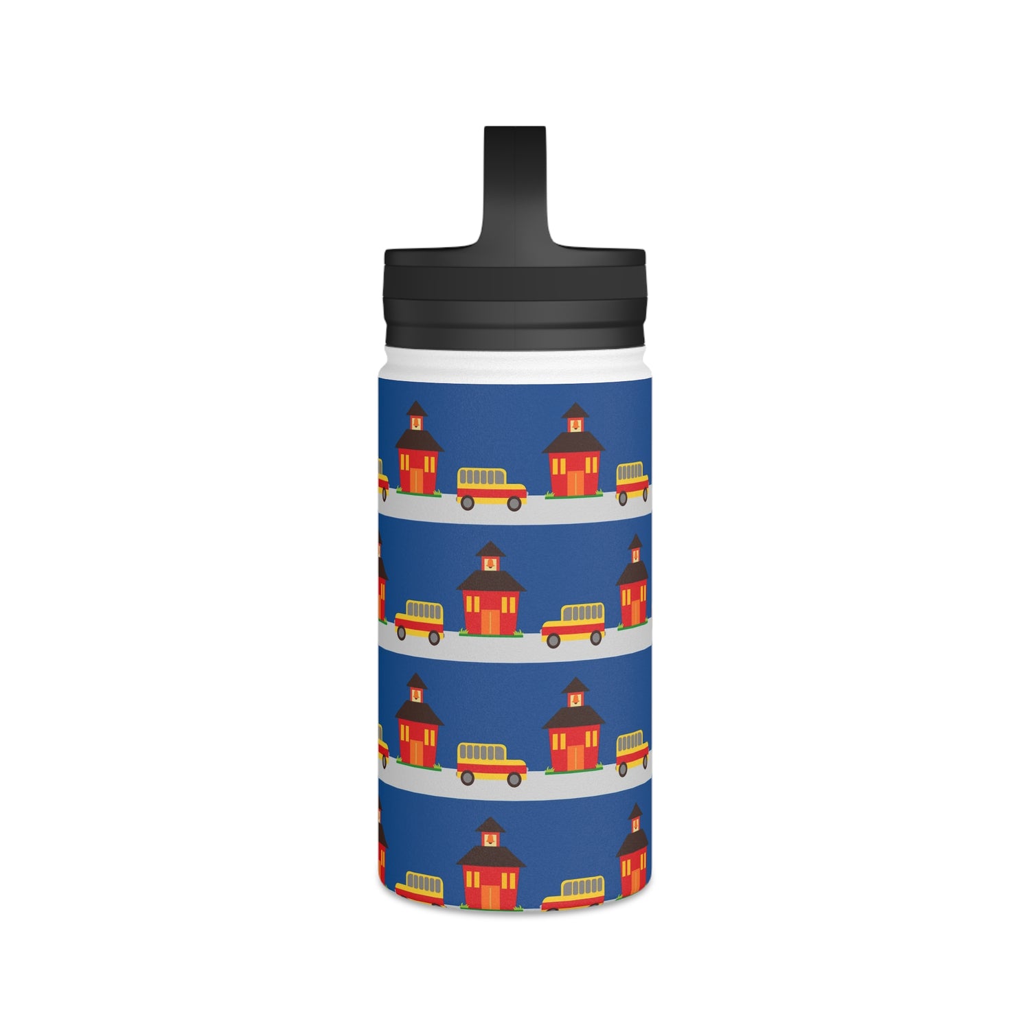 Back To School School House & Bus Stainless Steel Water Bottle, Handle Lid