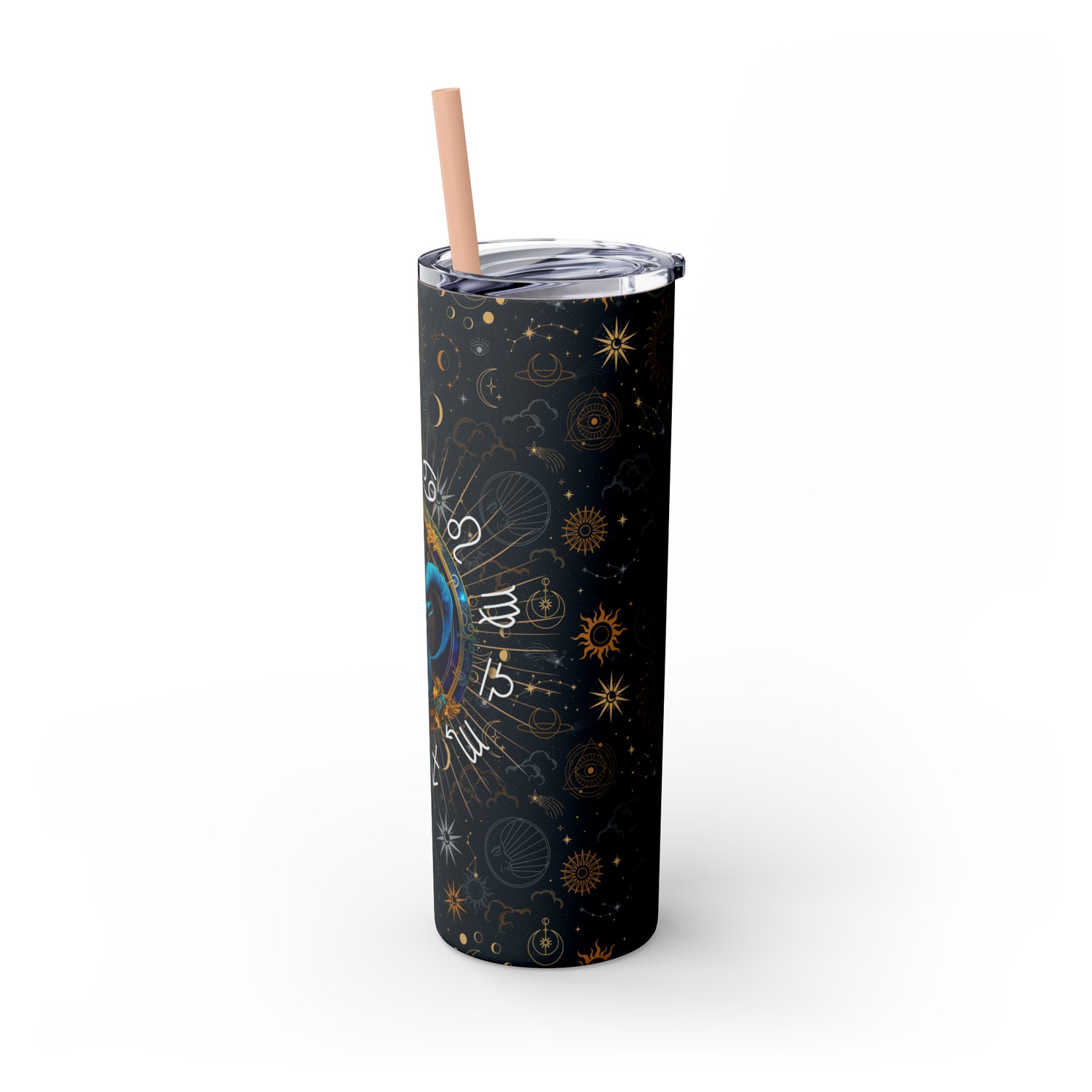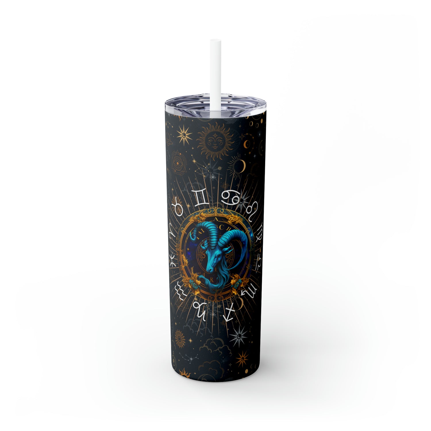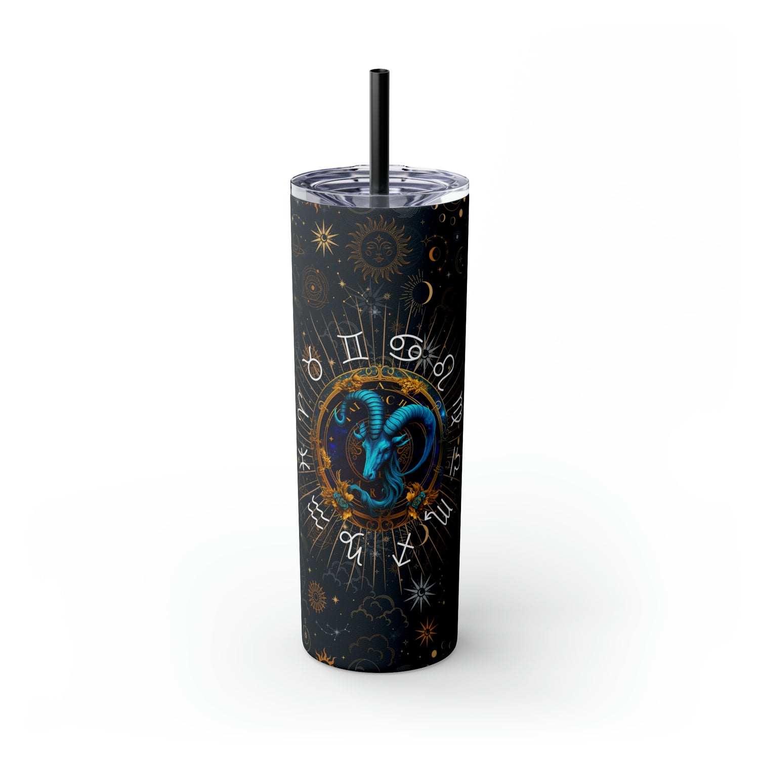 Capricorn Zodiac Skinny Tumbler with Straw Astrology Insulated Mug Bridesmaids Gift Bachelorette Party Favor Birthday Gift