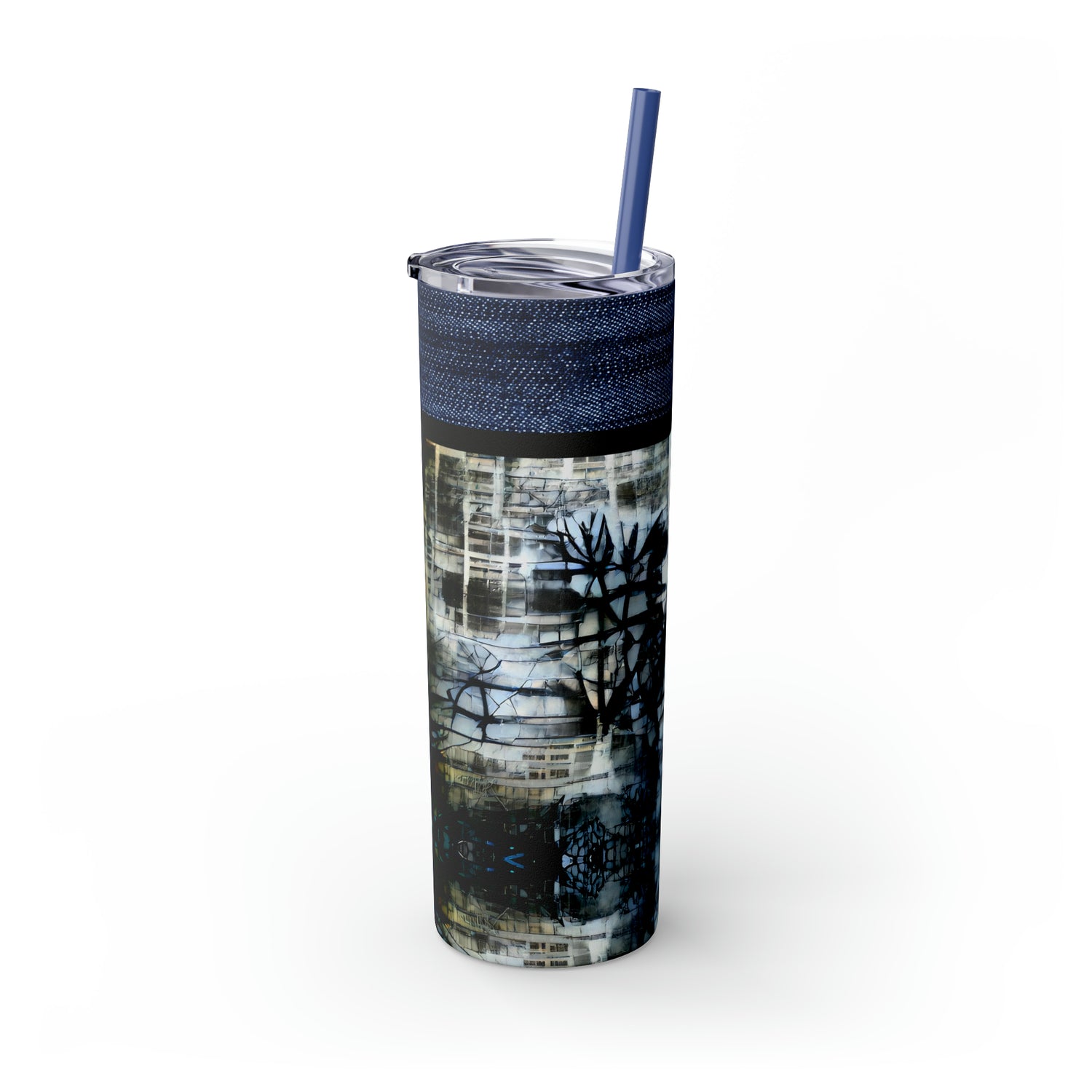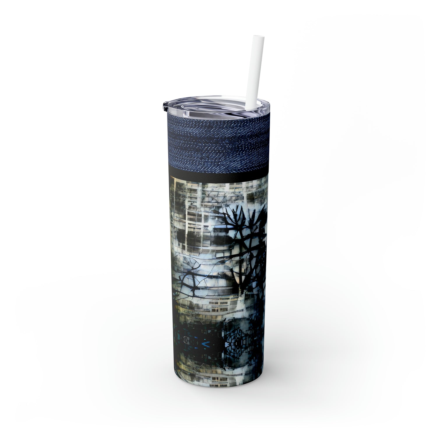 Denim Grunge Skinny Tumbler with Straw, 20oz