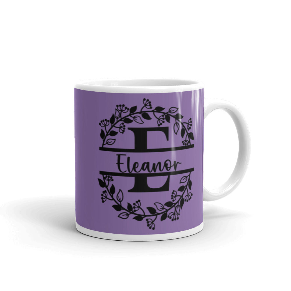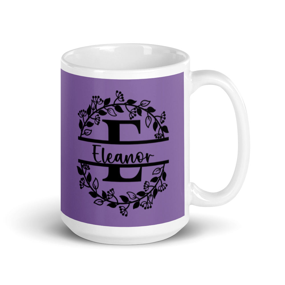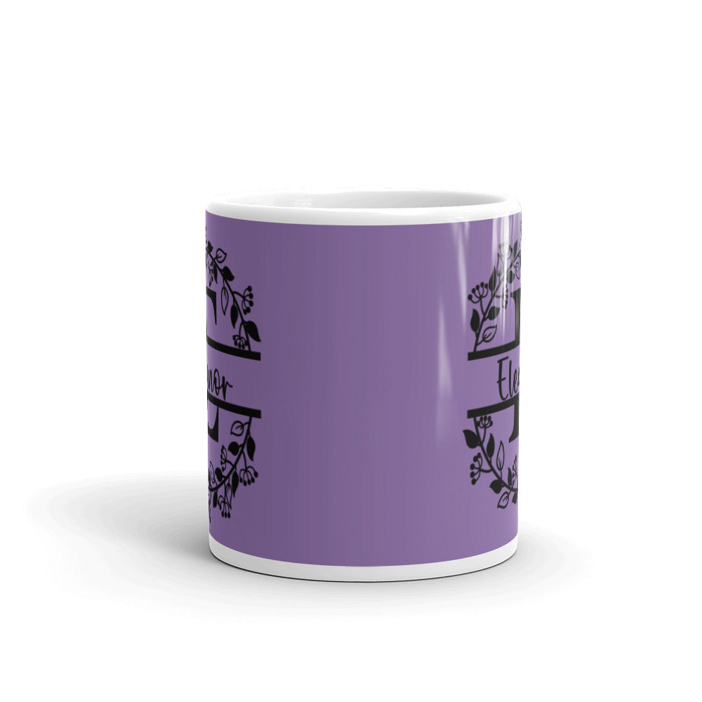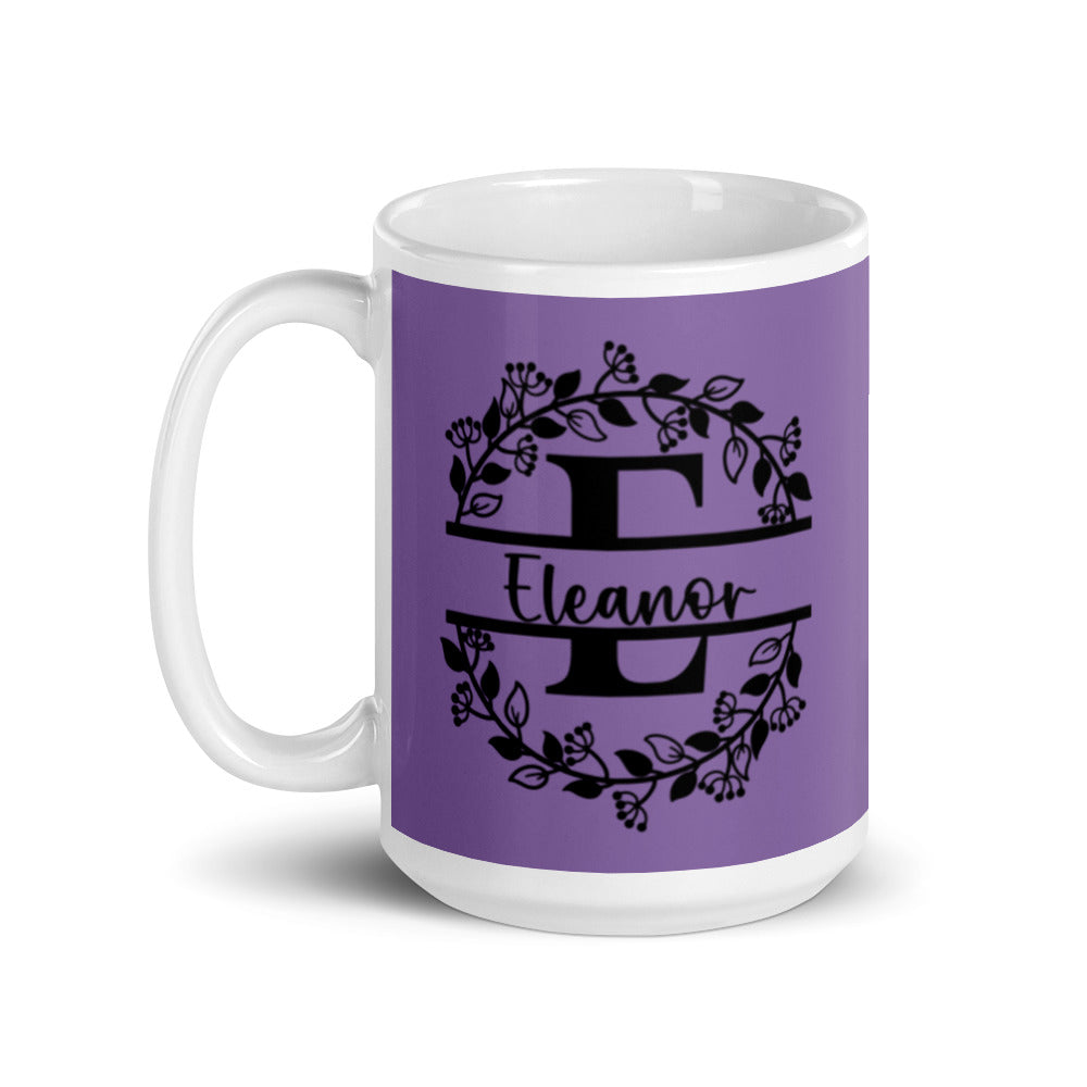 Eleanor - Purple & Black Personalized on White glossy mug