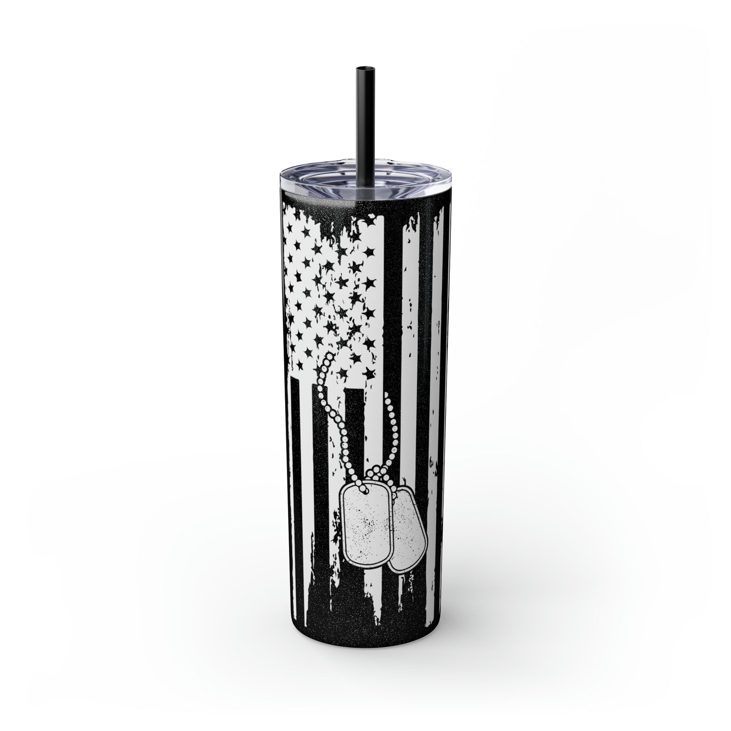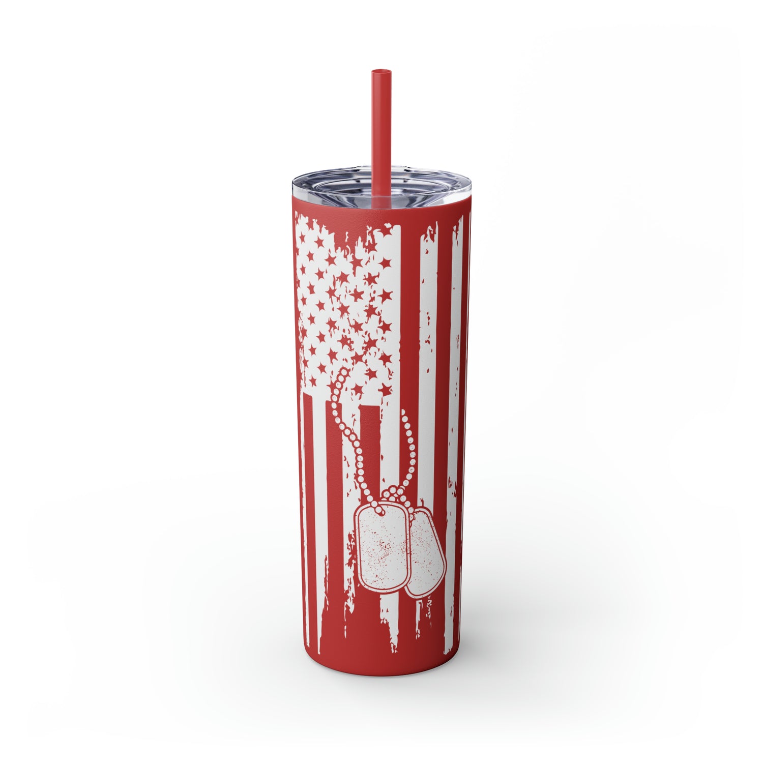 Flag with Tags Veterans Day Skinny Tumbler with Straw, 20oz