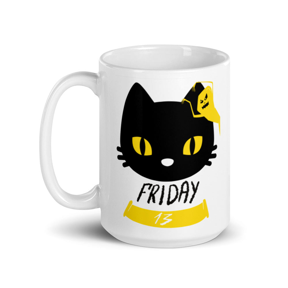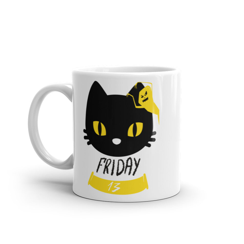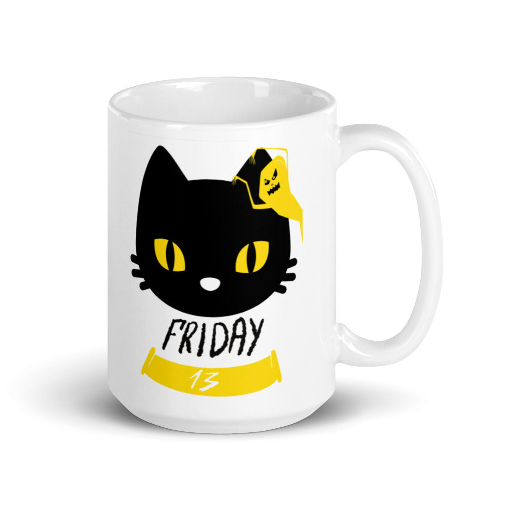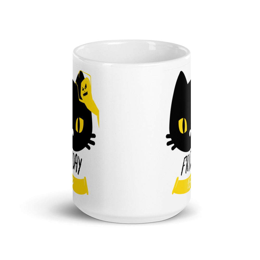 Friday the 13th Black Cat with Ghost - White glossy mug