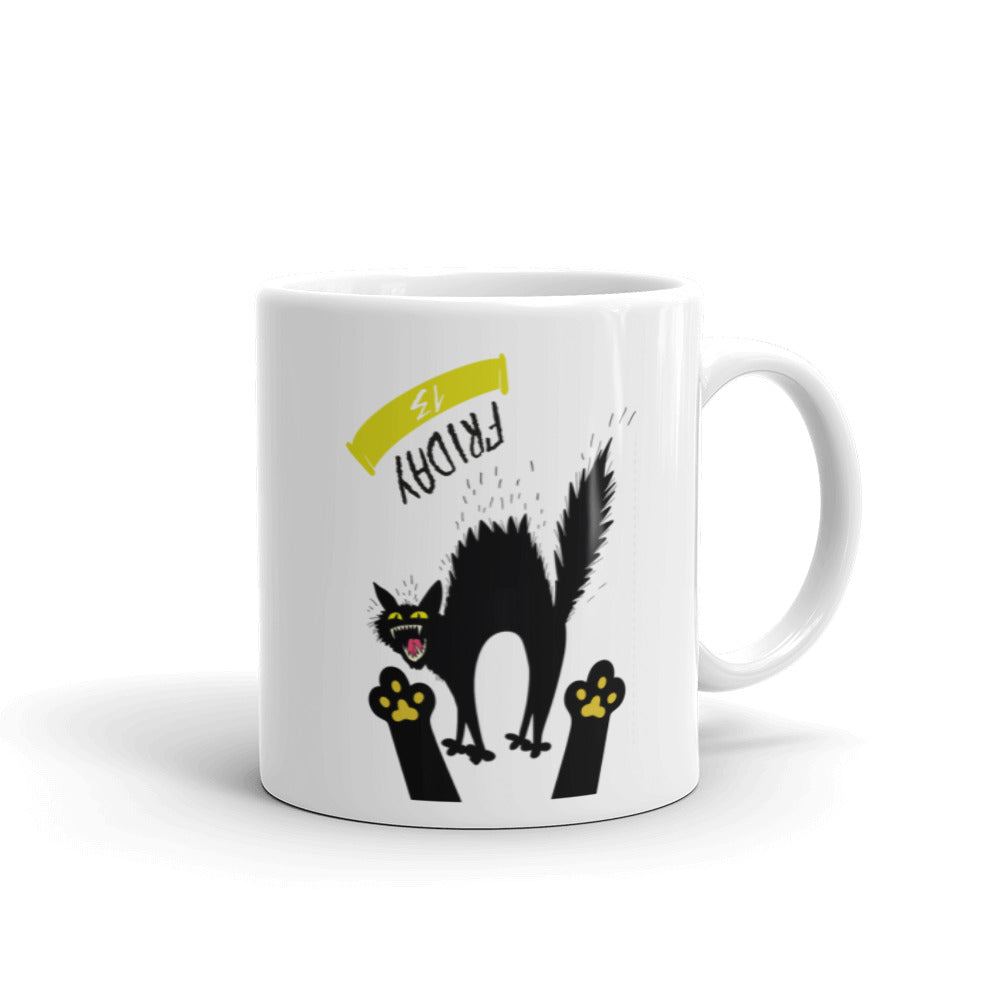 Friday the 13th - Scared Cat - White glossy mug
