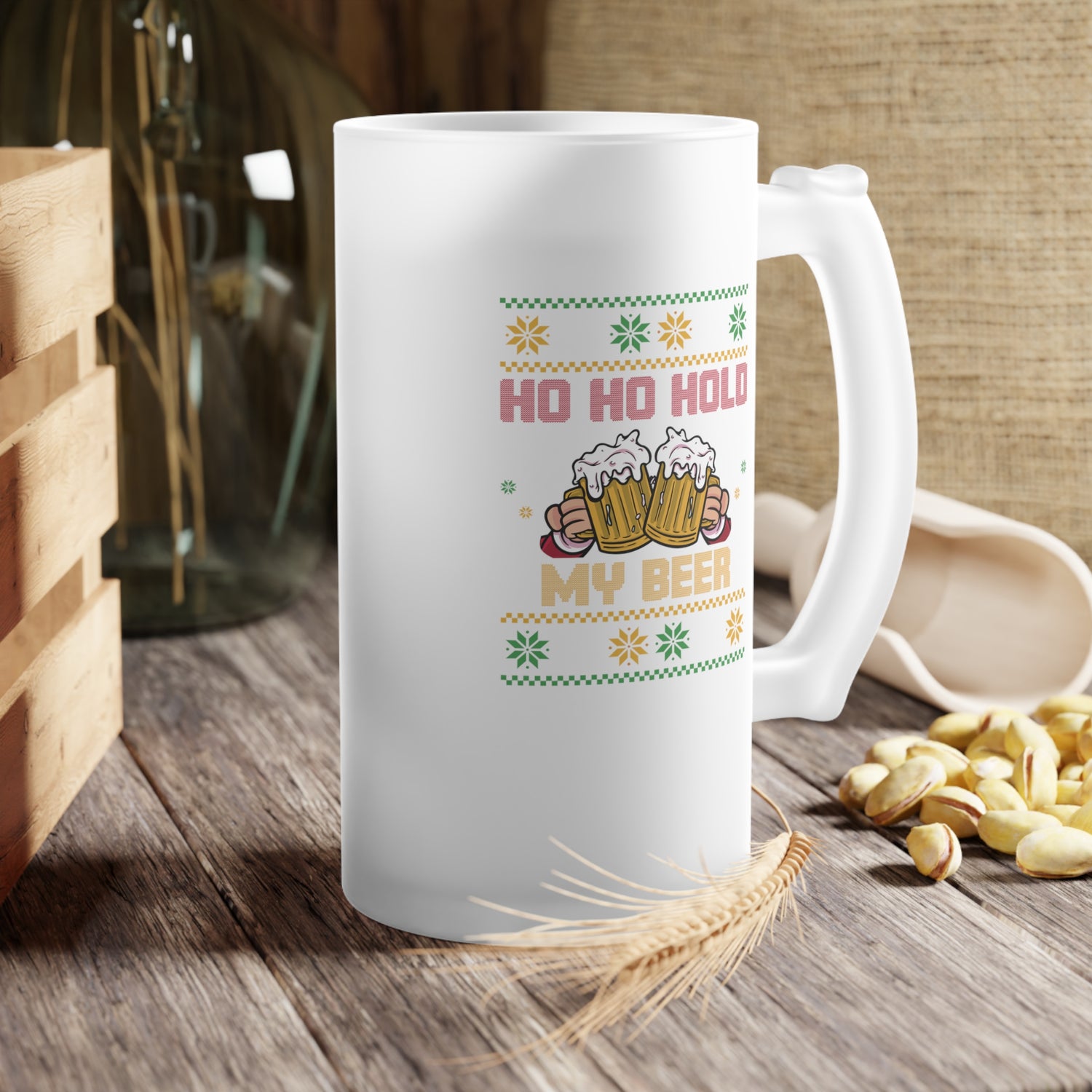 Ho Ho Hold My Beer Frosted Glass Beer Mug