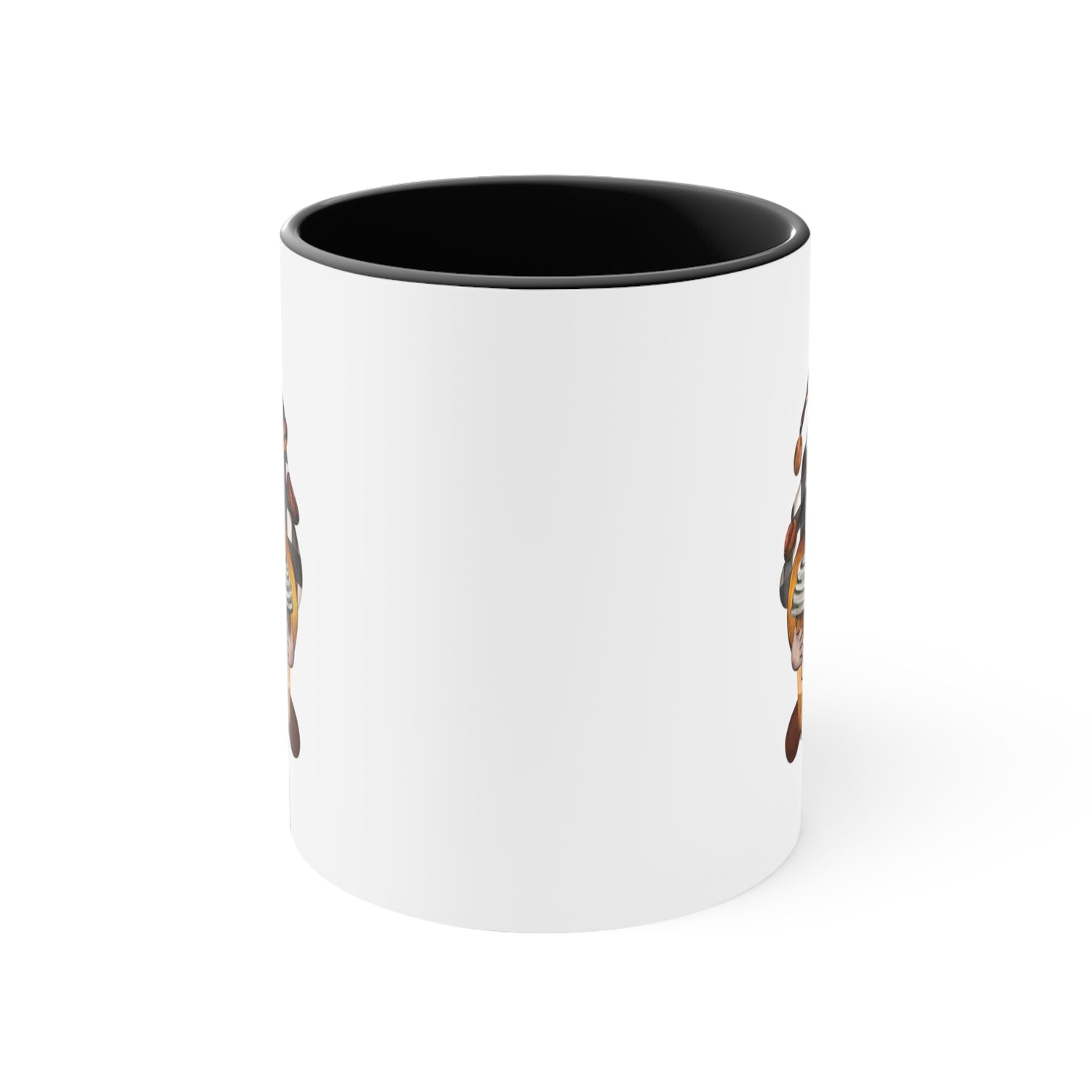 Add some color to your routine with this two-tone, custom accent coffee mug. This 11oz mug features an accented C-Handle that is comfortable to use, as well as an accented interior to add more contrast and character. With your design on this mug, you get an instant winner of a product.