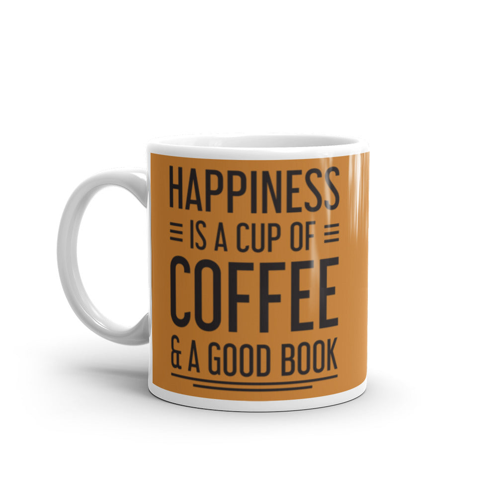 Happiness is a Cup of Coffee & A Good Book (Brown) - White glossy mug
