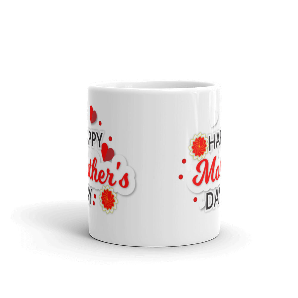 Happy Mothers Day with Red & White Hearts - White glossy mug