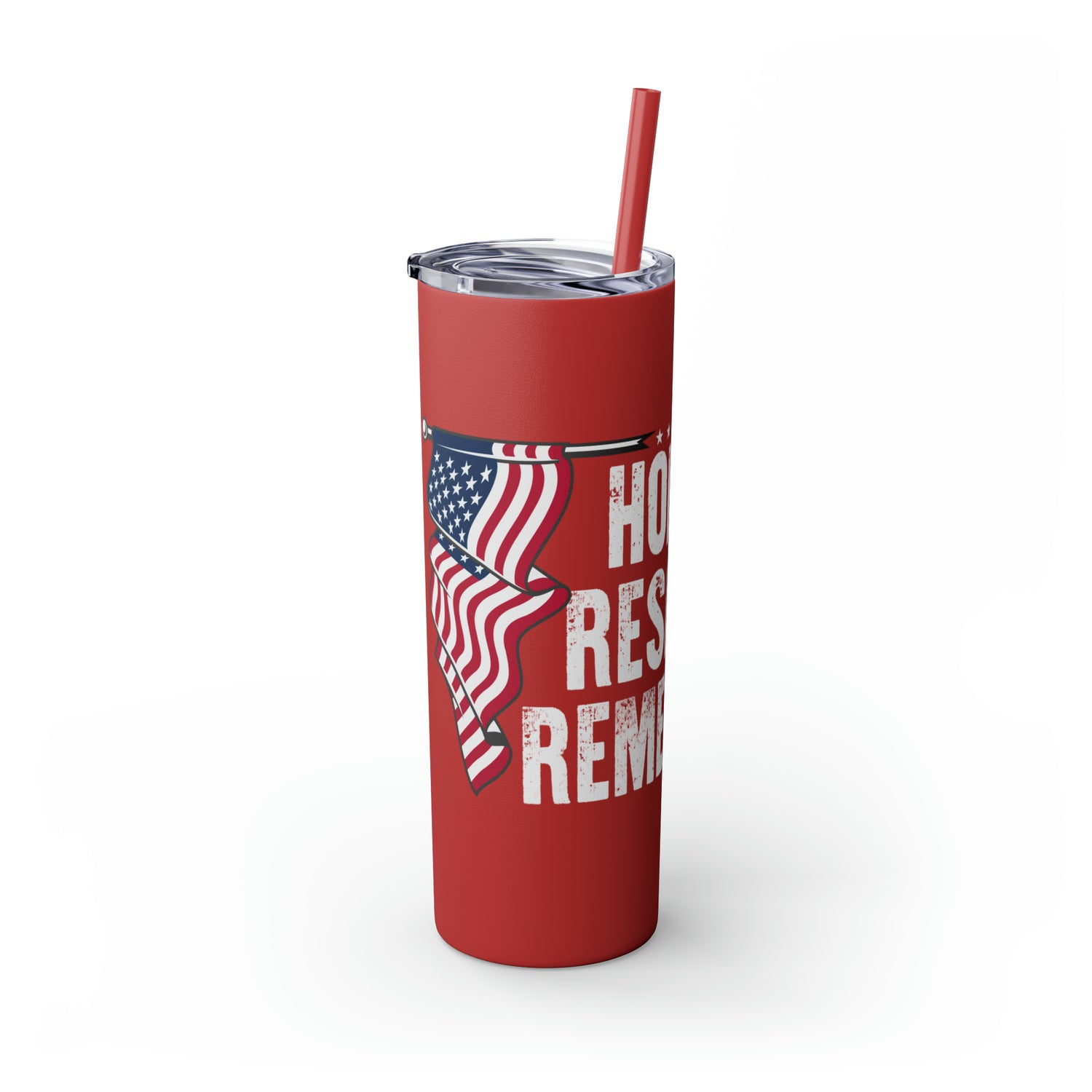 Honour Respect Remember Veterans Day Skinny Tumbler with Straw, 20oz