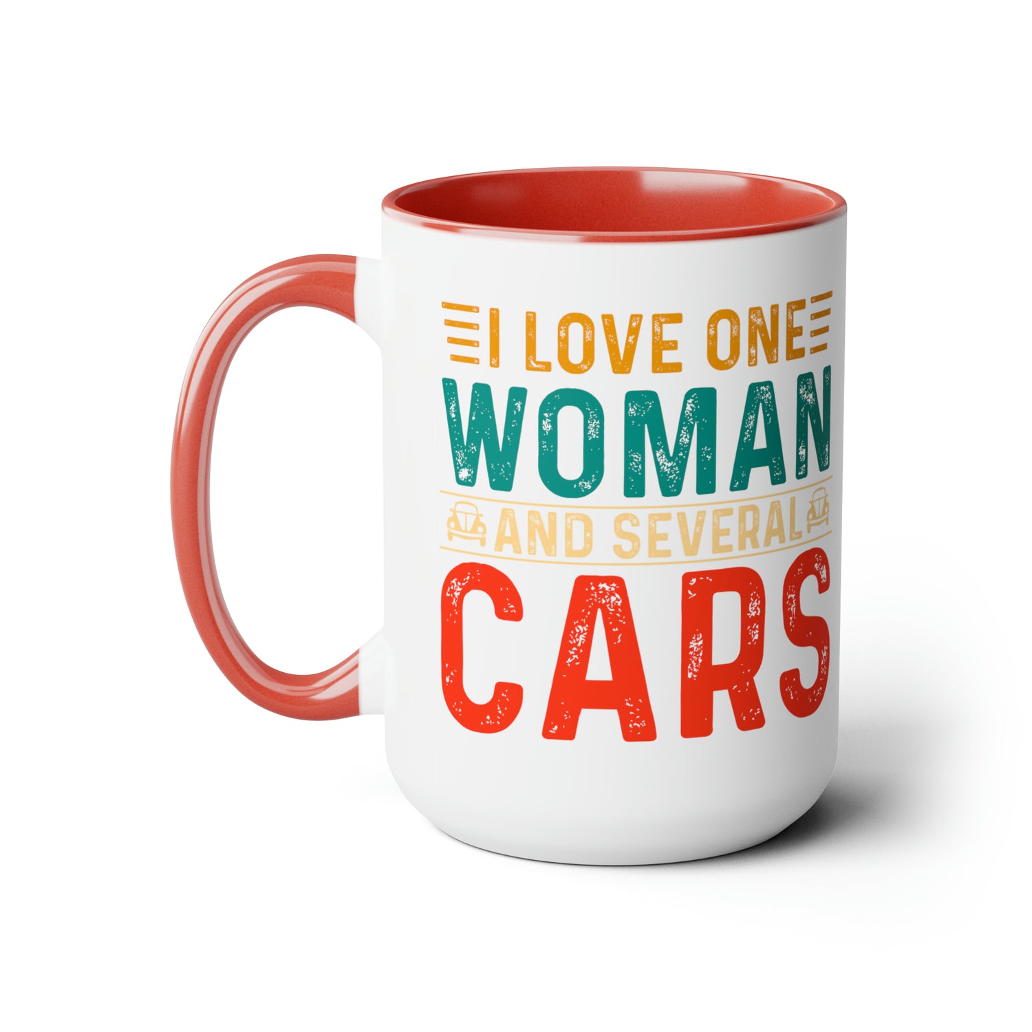 I Love One Woman and Several Cars Two-Tone Coffee Mugs, 15oz