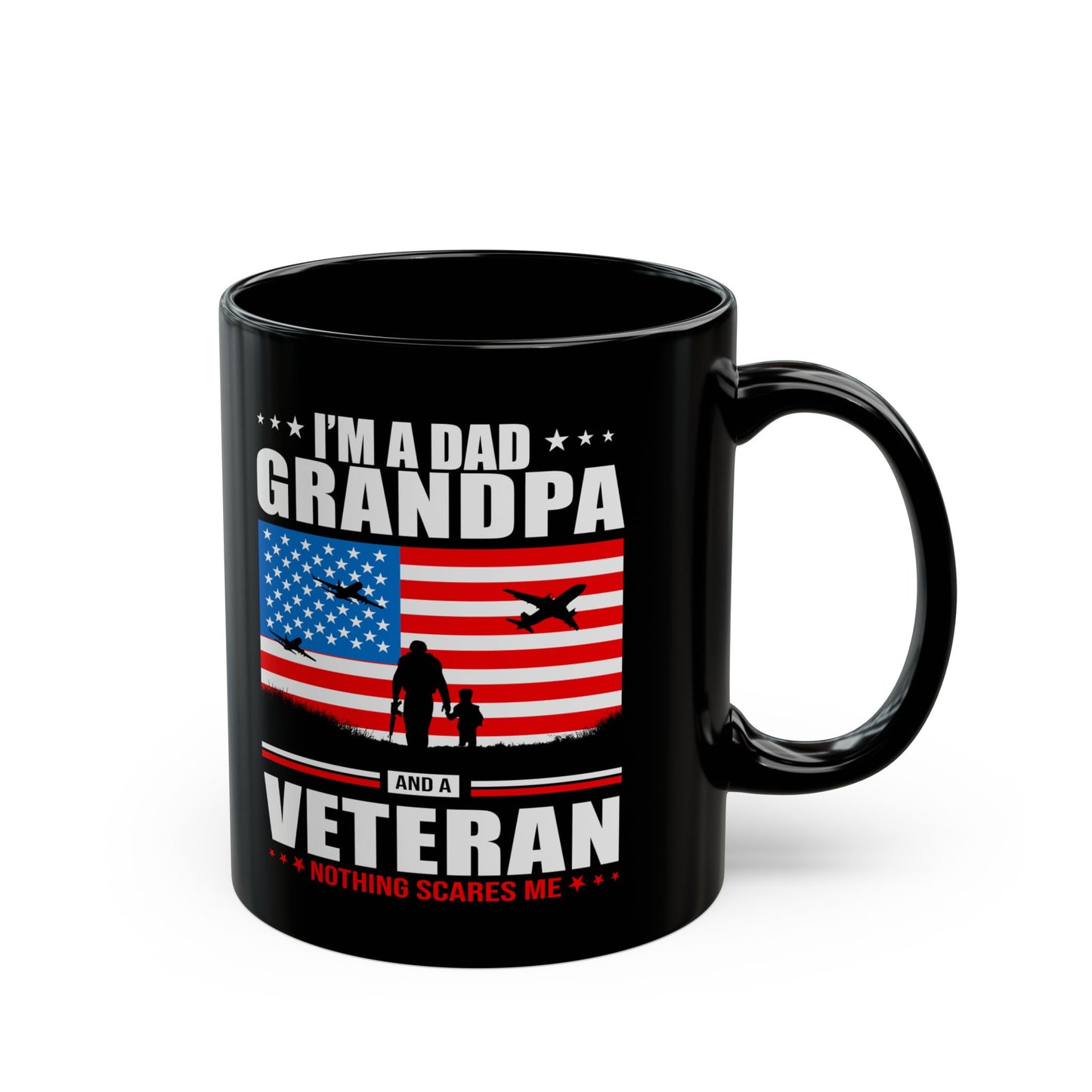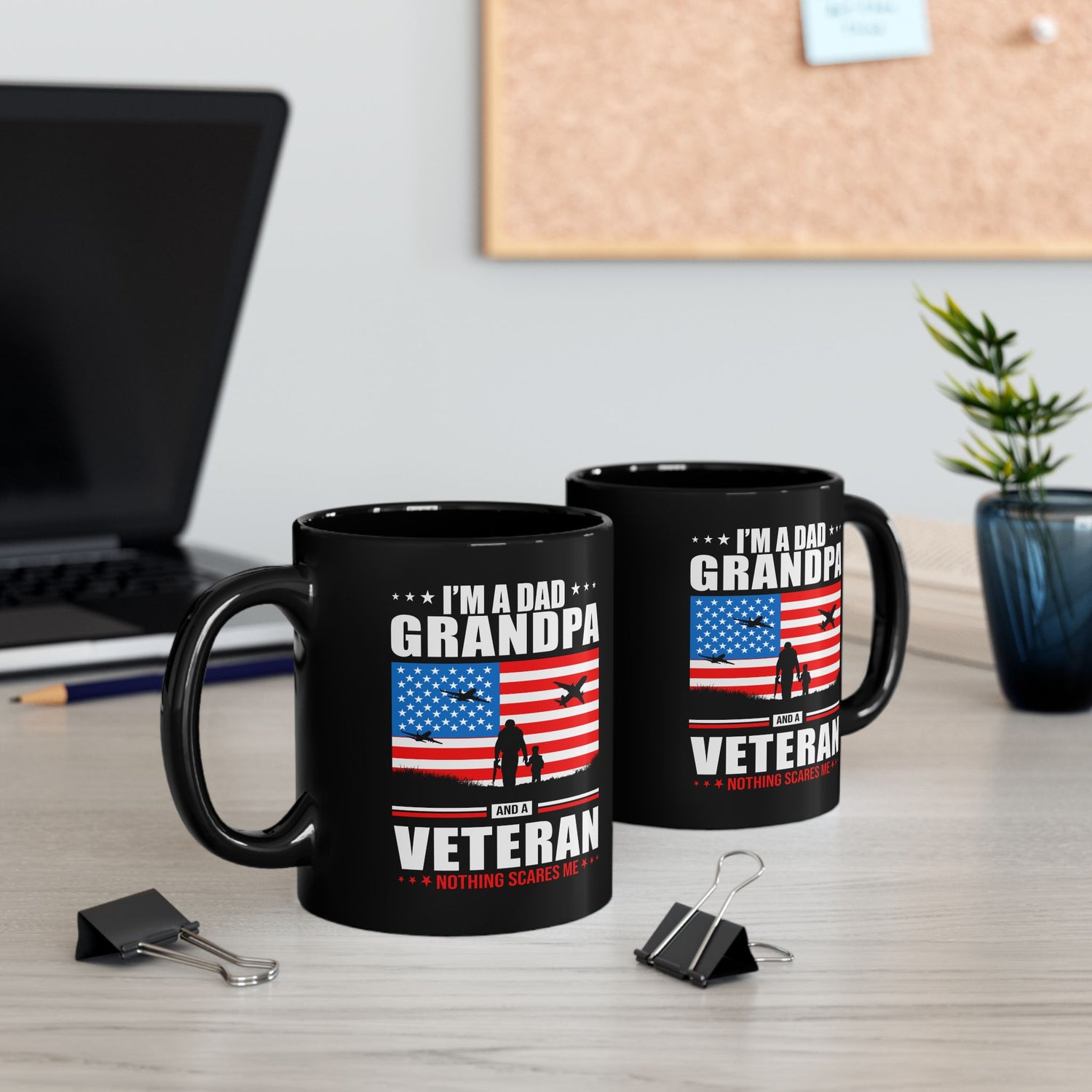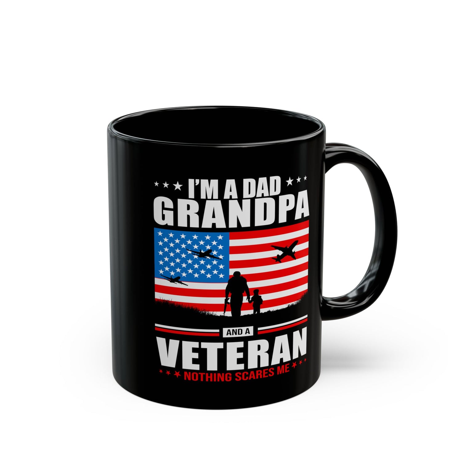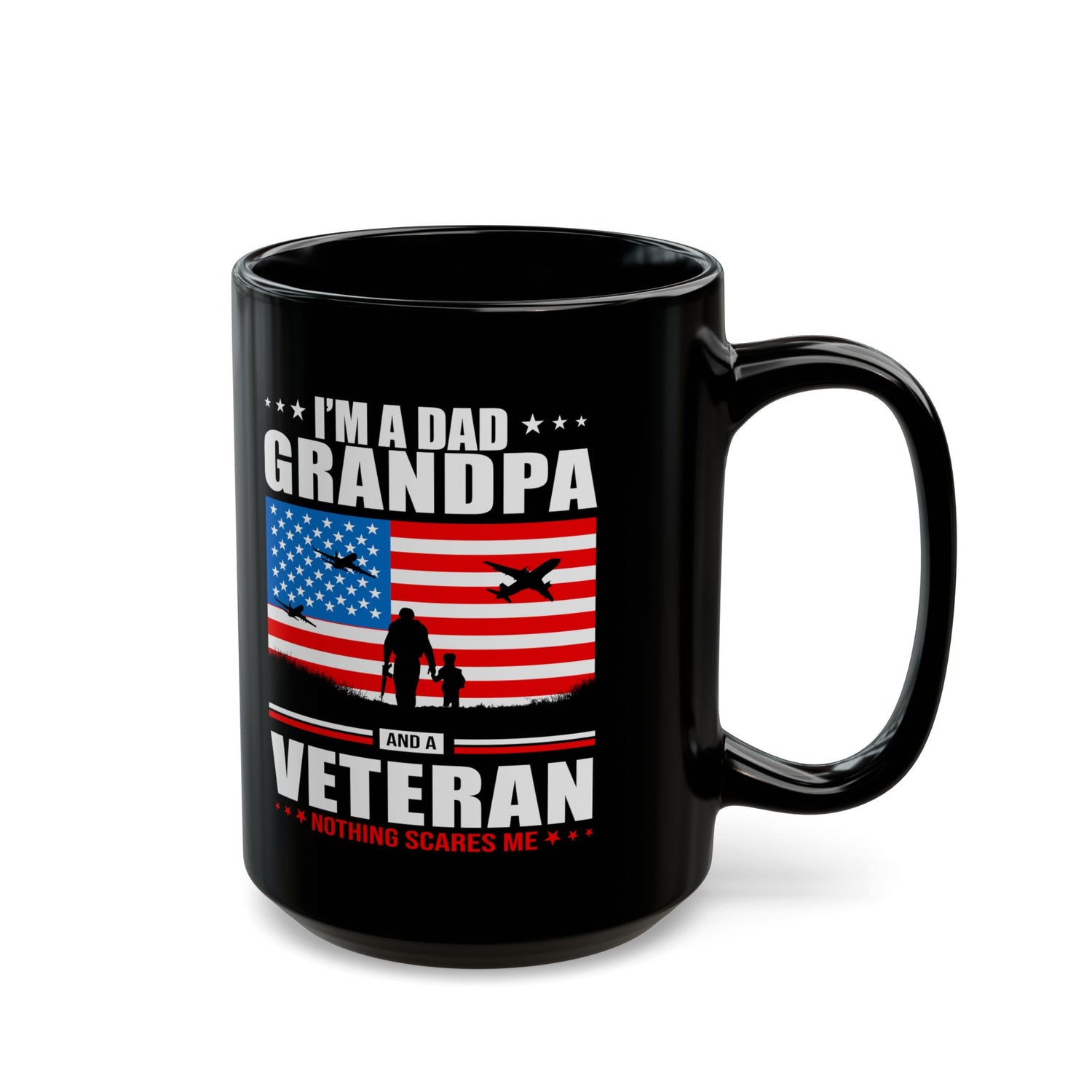 I'm A Dad, Grandpa and A Veteran, Nothing Scares Me, Dad Mug, Veteran Mug, Grandpa Mug, Black Mug (11oz, 15oz)