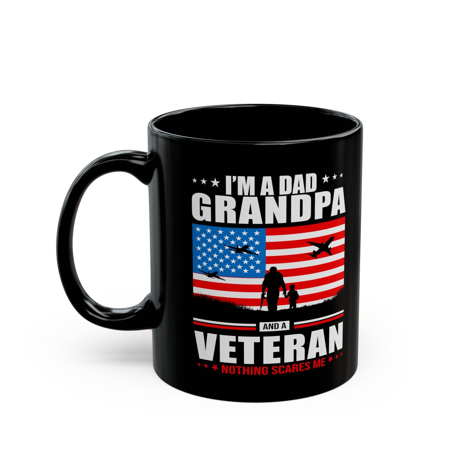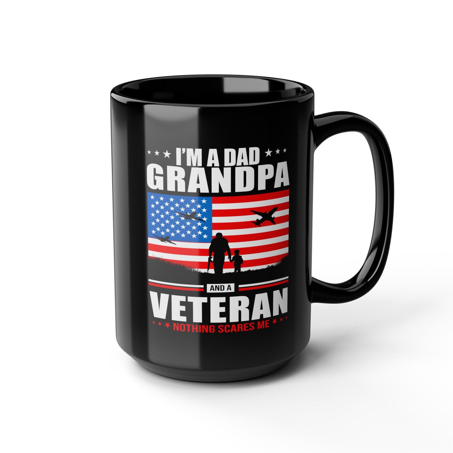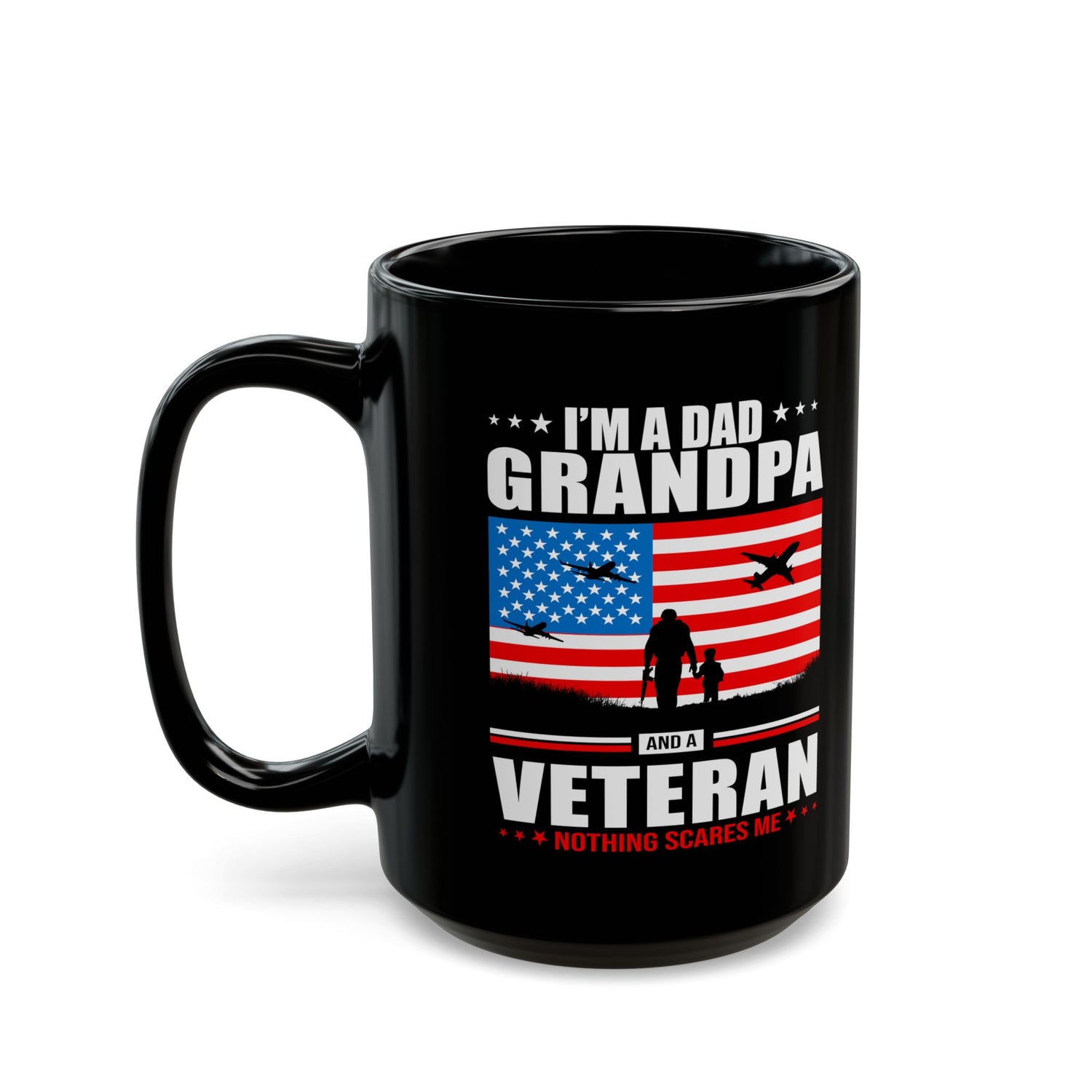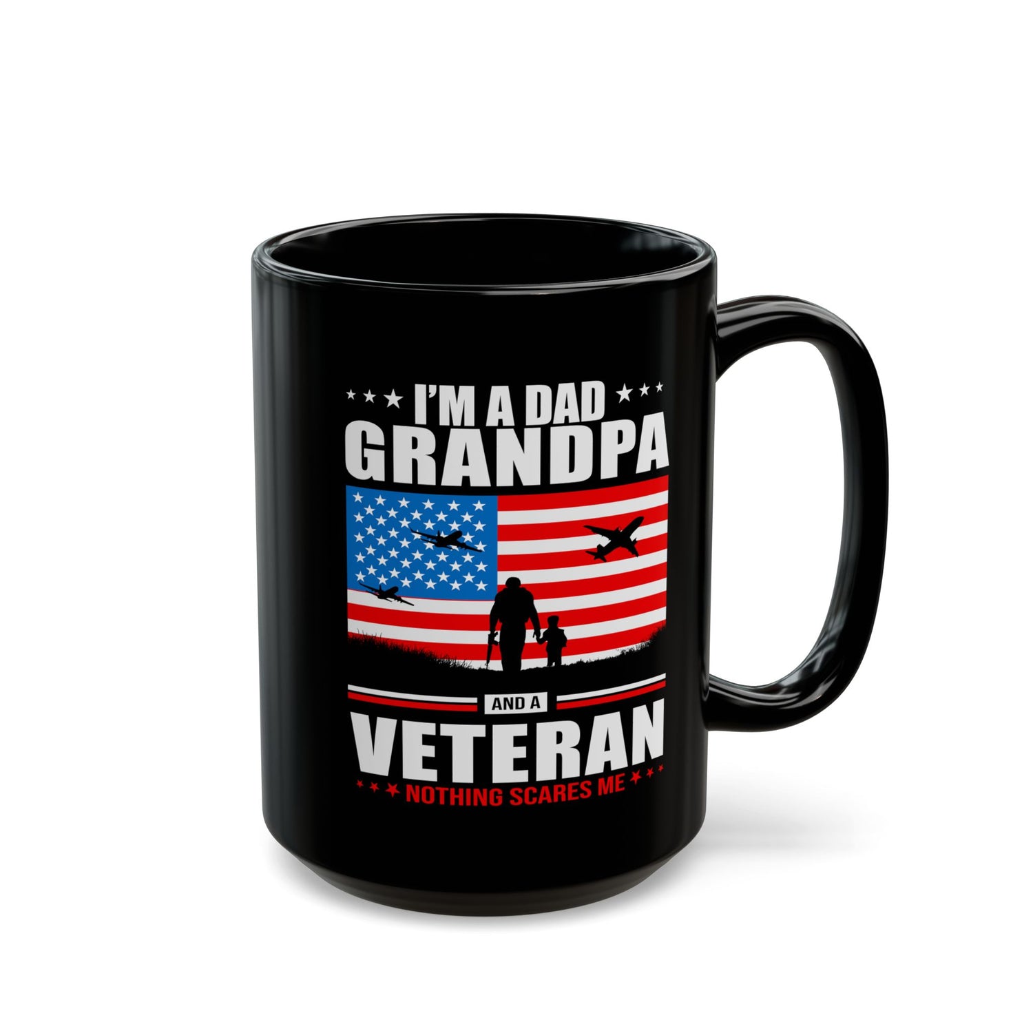 I'm A Dad, Grandpa and A Veteran, Nothing Scares Me, Dad Mug, Veteran Mug, Grandpa Mug, Black Mug (11oz, 15oz)