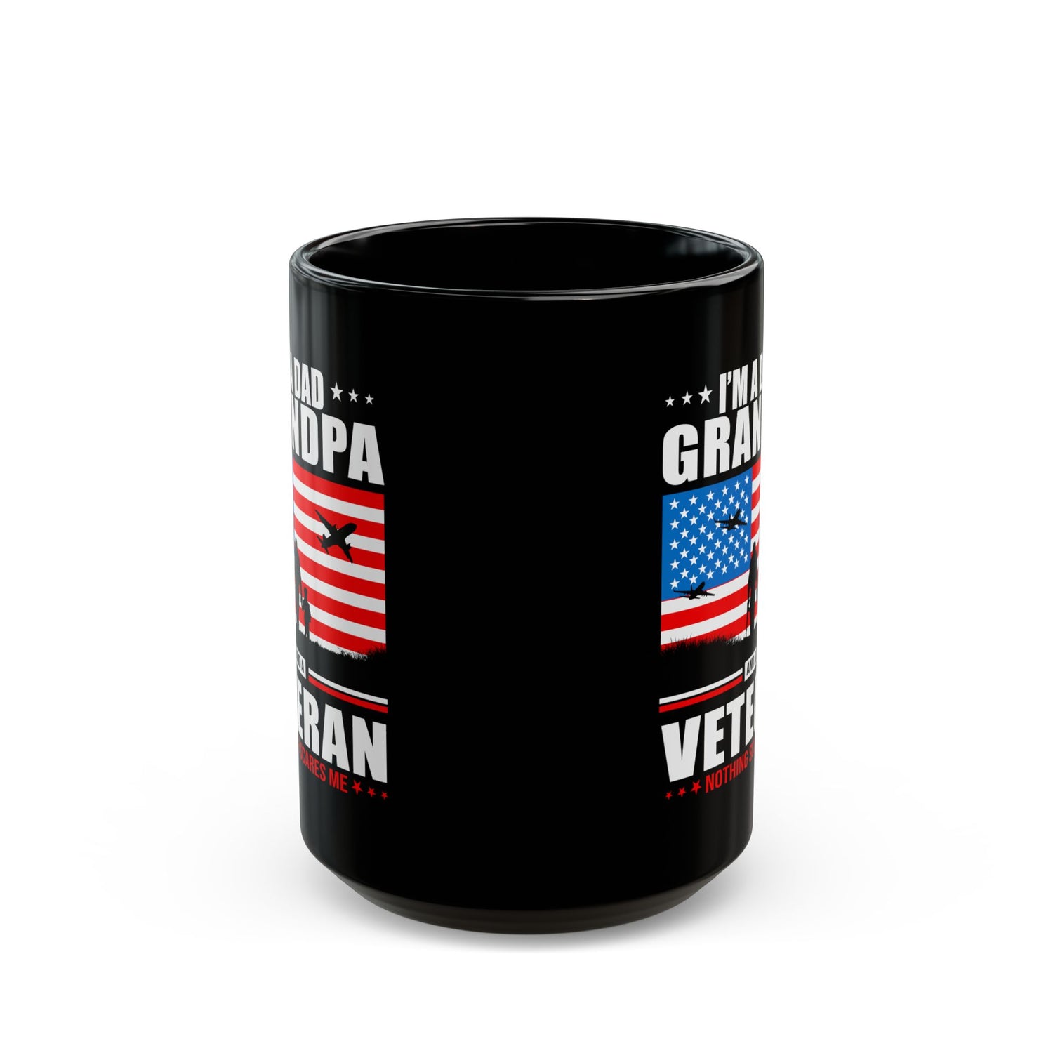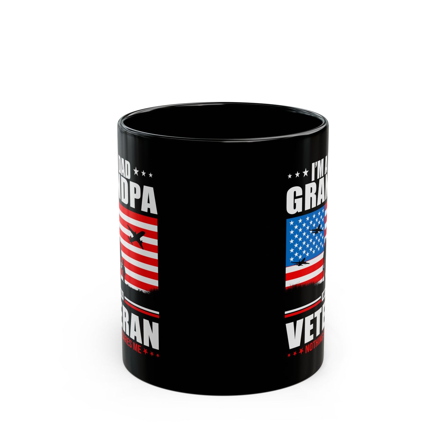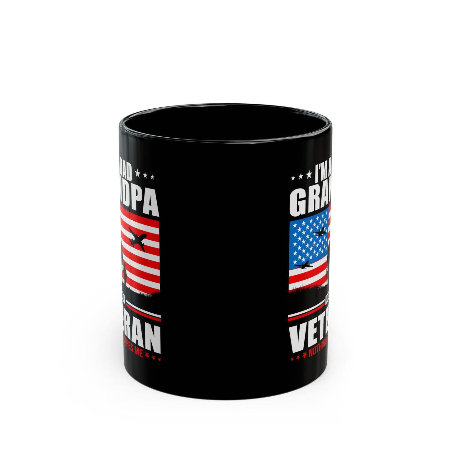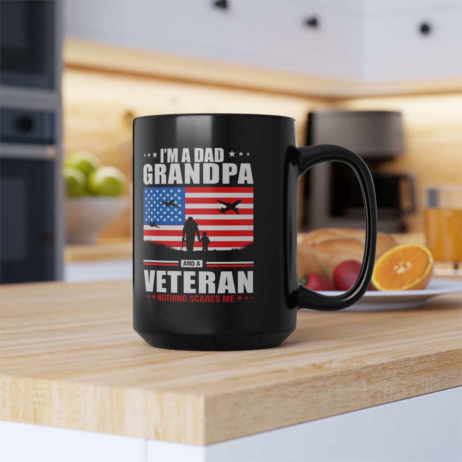 I'm A Dad, Grandpa and A Veteran, Nothing Scares Me, Dad Mug, Veteran Mug, Grandpa Mug, Black Mug (11oz, 15oz)