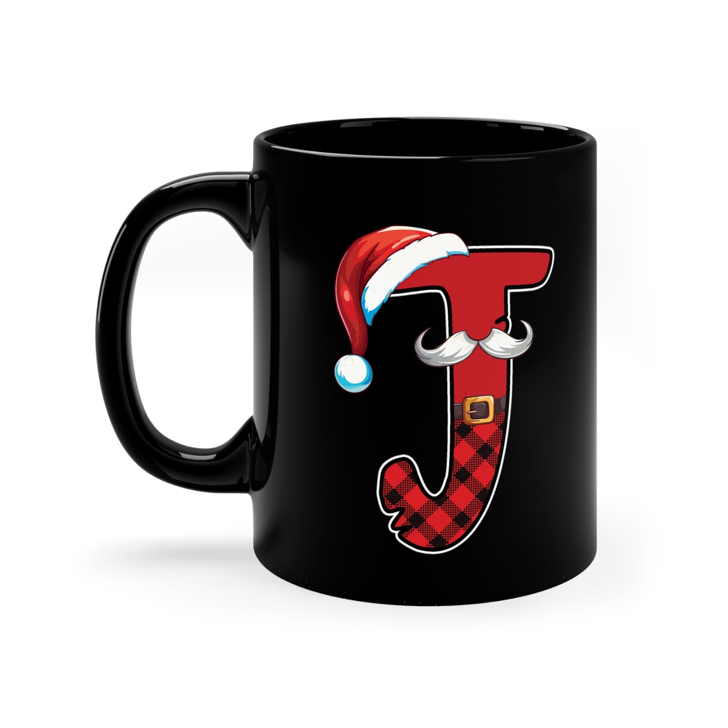 J Santa Initial 11oz Black Mug