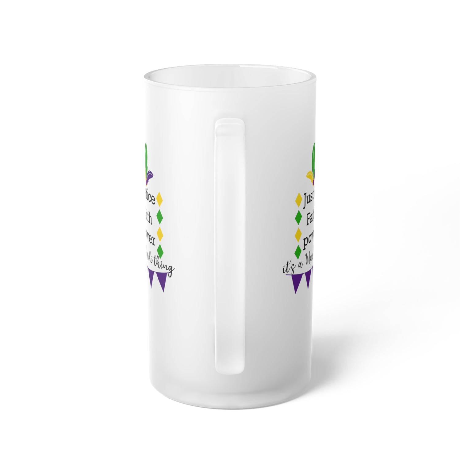 Justice Faith Power It's A Mardi Gras Thing Frosted Glass Beer Mug