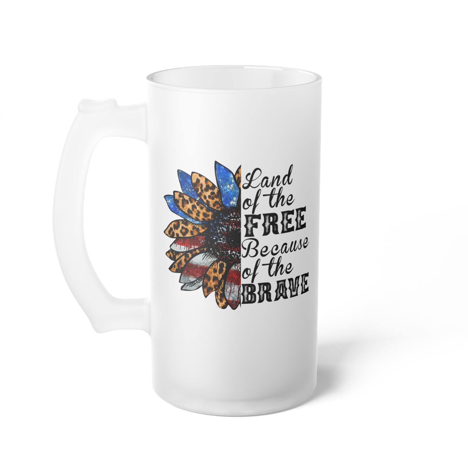Land of The Free Because of the Brave Frosted Glass Beer Mug