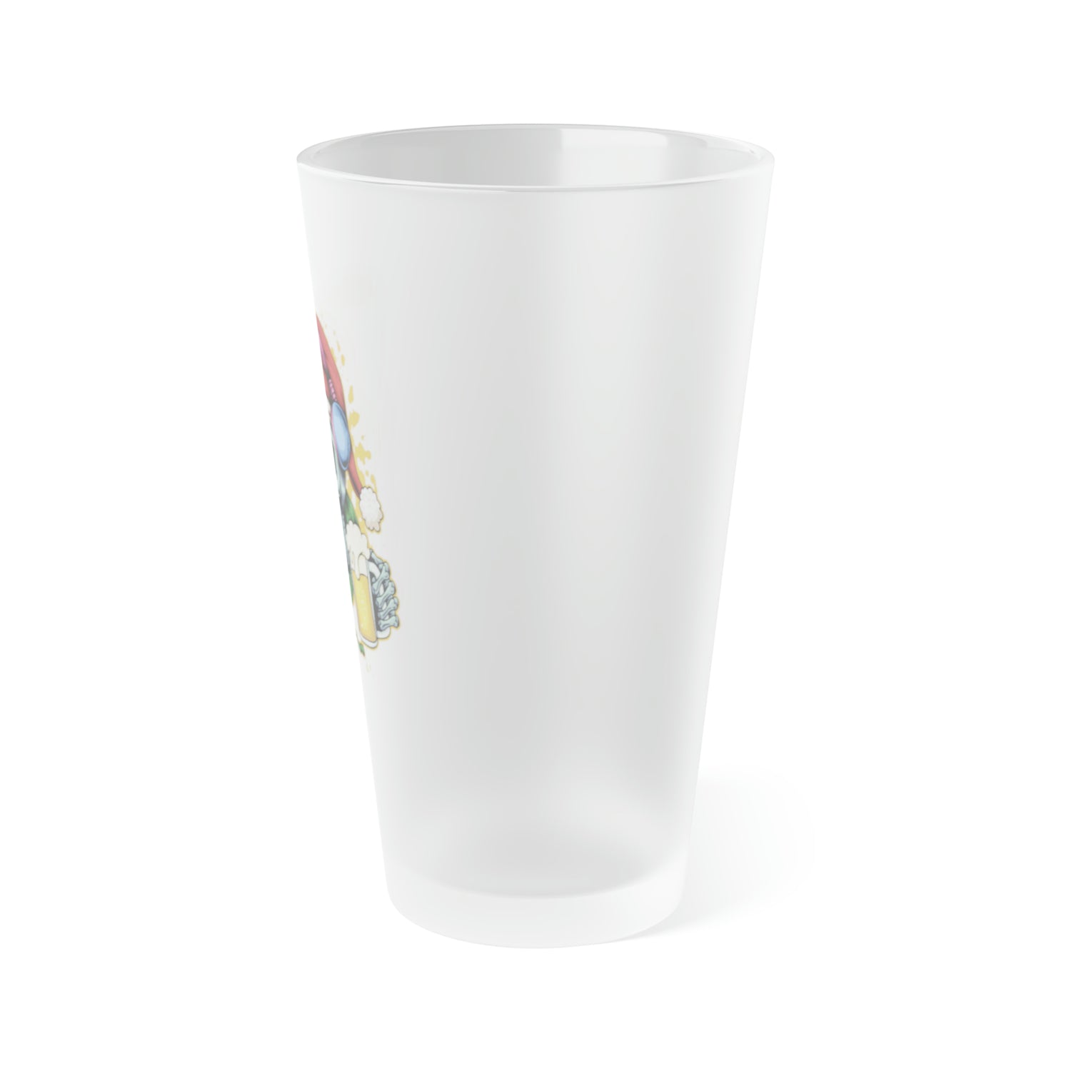 Frosted pints are very versatile – you can sell them individually as personalized items or in bulk as custom drinkware for hospitality businesses. These glasses come in one size: 16oz (0.47l), which is the standard pint size in the USA. The frosted matte finish, complemented by your original designs, will make them stand out in any setting. Your artwork will be printed in high-resolution and have a semi-translucent look.