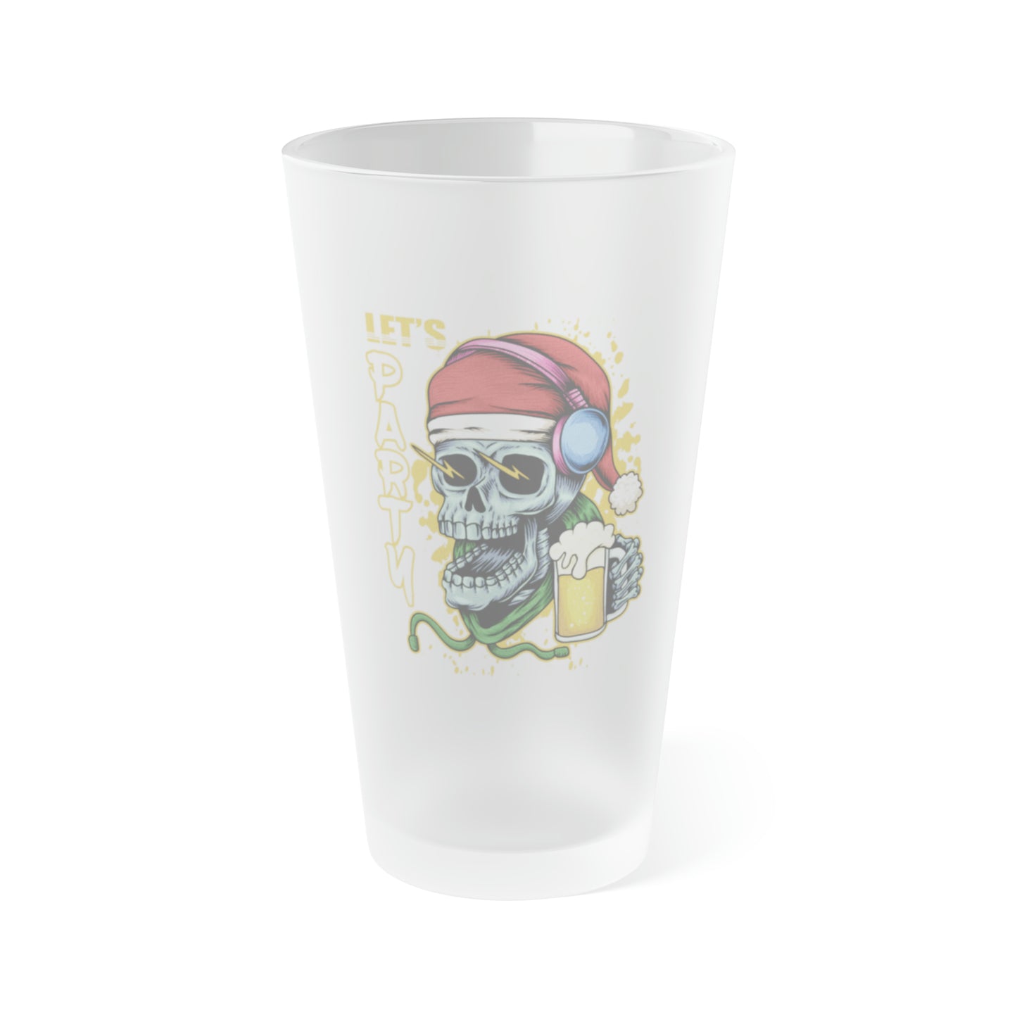 Let's Party Santa Skull Frosted Pint Glass, 16oz