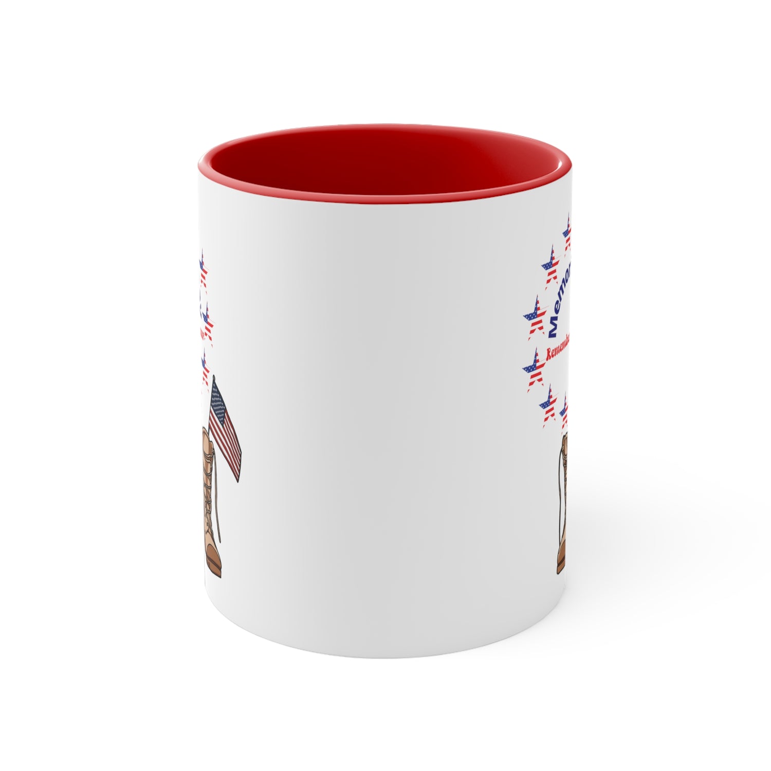 Add some color to your routine with this two-tone, custom accent coffee mug. This 11oz mug features an accented C-Handle that is comfortable to use, as well as an accented interior to add more contrast and character. With your design on this mug, you get an instant winner of a product.